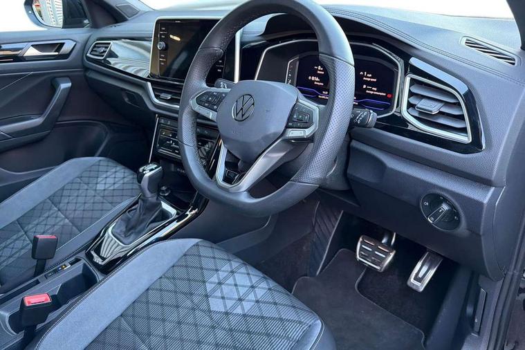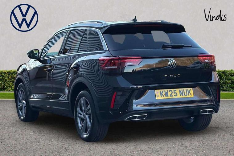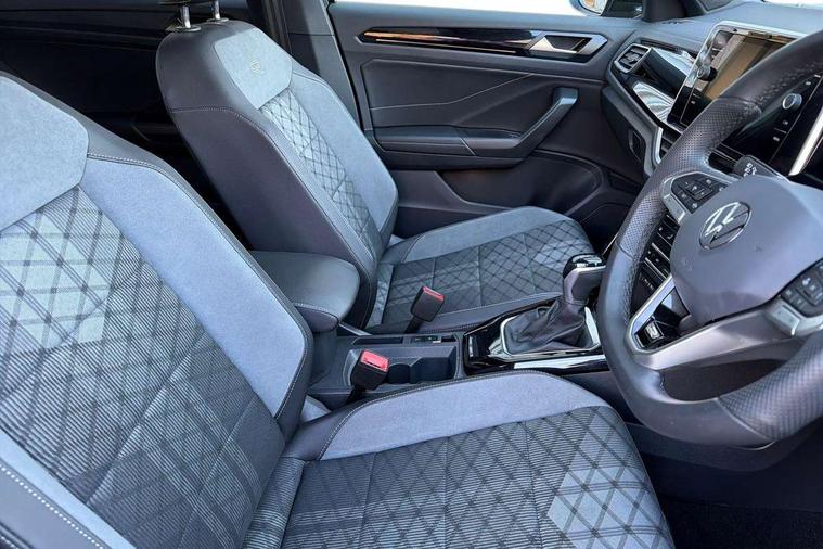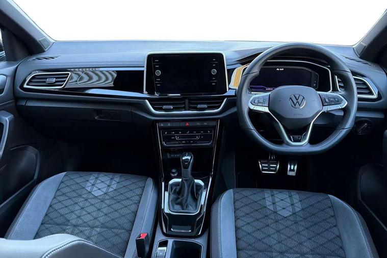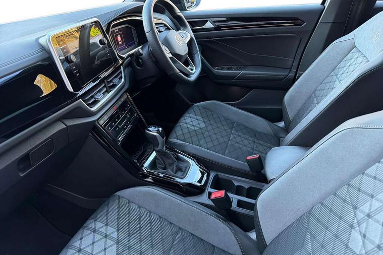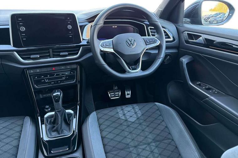 10.25" Digital cockpit pro, Advanced driver attention and drowsiness monitor, Emergency call service, Lane keeping system Lane Assist, Mobile phone interface, Modified key software - reduce switch off time for key status change to Long no motion, Online services, Park assist including front and rear parking sensors, Service interval indicator, Tailgate/trunk lid release from outside, Think blue trainer driver tips and journey analysis, Warning sound and light for front seatbelts unfastened, Wireless app connect, Battery regeneration during braking, Start/stop function with battery regeneration, DAB Digital radio, Diversity antenna for FM reception, Front and rear 6 speakers, Music playback - MP3, WMA and AAC files, Premium USB cable in choice of either Apple or Android smartphone compatibility, SD card slot, Simultaneous pairing of 2 compatible mobile devices, Title and cover art display, We Connect and We Connect Plus functionality, Auto dimming interior rear view mirror, Automatic hazard lights activation under emergency braking, Automatic headlight control with LED separate daytime running lights with coming/leaving home function, Body coloured exterior mirror housings and door handles, Electrically adjustable and heated door mirrors, Extended roof spoiler, Exterior mirrors aspherical on driver side, convex on front passenger side, External USB type C socket and charging sockets, Front windscreen wiper with intermittent wipe and 4 position delay, Heated rear window, LED 3rd brake light, LED rear combination lamps, LED rear number plate lights, Power windows with comfort operation and circuit breaker, Privacy glass for rear side windows and rear window, R-Line design body coloured bumpers, Rain sensor, Rear exhaust tailpipe, Rear fog light on one side and reversing lights on both sides, Rear side wing doors, Rear wash/wipe with intermittent wipe setting, Remote electrically foldable door mirrors, puddle lights and reverse activated passenger's door mirror, 12V power socket in centre console, 3 rear head restraints, 3 seat bench in 2nd row, 4 load lashing points in luggage compartment, Air care climatronic air conditoning system with active combination filter and 2-zone temperature control, Black roof lining, Chrome plated decorative trims, Chrome plated radiator grille inserts, air vent surrounds and light switch surrounds, Door and side trim panel with leatherette insert, Front + rear carpet mats, Front centre armrest, Front cupholders x 2, Front footwell illumination, Front reading light, Front scuff plates with R Line logo, Front seat back storage pockets, Glove compartment door with light, Instrument lighting, white adjustable panel illumination, Interior ambient lighting and surround lighting, Interior light delay, Isofix child seat preparation, Leather gearshift handle, Load-through provision with cup holder when folded down ('Unsplit rear seat bench, split folding backrest, with centre armrest), Luggage compartment lighting, Single front passenger seat, Stainless steel pedals, Storage compartment in left and right luggage area, Storage compartment in rear doors, Storage compartments in driver and front passenger doors, Sunvisors with illuminated vanity mirrors, Variable boot floor, height adjustable and removable, Driver assistance pack without proactive passenger protection - T-Roc, 3 point height adj front seatbelts + pretensioners, 3 point seatbelts in outer rear with ECE label, ABS, Child locks on rear doors, City emergency braking and pedestrian monitoring, Driver and front passenger airbag with front passenger airbag deactivation, Driver and front passenger safety-optimised head restraints, Drivers seatbelt reminder, Electronic parking brake, Electronic Stability Control (ESC) inc EDL (Electronic Differential Lock) and ASR (Traction Control), Front and rear passengers curtain airbag system including front side airbags, Hill start assist, Predictive pedestrian protection, Rear disc brakes, Two tone horn, Tyre pressure loss indicator, Volkswagen roadside assistance, Piano black decorative inserts in dashboard and front door trim panels, Trims for alloy wheels,