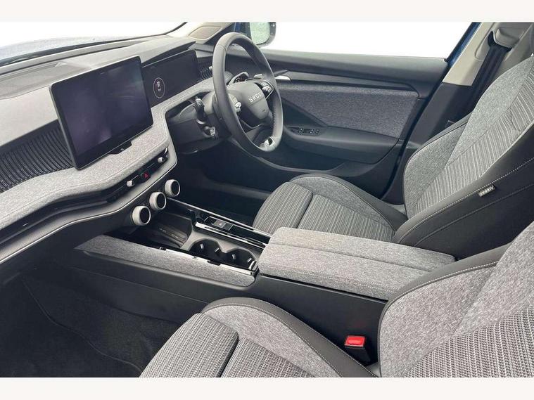 13" touchscreen display with satellite navigation, 4x USB-C ports (2x in front centre console and 2x in rear) (45W), Adaptive cruise control with speed assist, lane assist plus and traffic tram assist, Blind spot detection with door exit warning, Bluetooth system, CareConnect and Emergency Call, ChatGPT functionality, Driver fatigue sensor, Front assist with extended predictive pedestrian protection, Front cross traffic assist, PAS, Quick start all heating software functionality, Stop/start engine system, Traffic sign recognition, Turn assist with evasive assistance, Virtual Cockpit - 10.25" digital display, Voice control system, Washer for rear camera, Wireless charging for one smartphone (15W) with cooling function, Wireless smartlink apple carplay, SmartLink+ android auto, 8 Speakers, DAB Digital radio, Display cleaner, FM radio connection, Web radio connection, Acoustic side windows and interior noise suppression, Backdrop lighting, Body colour door handles, Body coloured door mirrors, Chrome window surround, Dark chrome grille surround, Electrically adjustable, heated, folding and driver side auto-dimming door mirrors with integrated indicators and logo projection, Frameless auto-dimming rear view mirror with USB-C, Ice scraper in fuel tank cap, LED 3rd brake light, Light assist with High beam control, Light assistant (coming/leaving home/tunnel light), Privacy glass, Rear fog light (x1), Rear side wing doors, Unique dark chrome design logo on alloy wheels, Windscreen wipers with rain sensor, 12V socket 1x centre console 1x boot, 2x cargo elements in boot, 2x light in boot, 3 seat bench in 2nd row, 60:40 Split folding rear seats, Bottle holders in the front doors 1.5 litre bottle and rear 1.5 litre bottle, Cup holder in front with easy open mat, Front armrest with storage box, Front comfort seats, Heated front seats, Height adjustable driver and front passenger seats with 2-way electric tilt, 4-way pneumatic lumbar support, and extendable thigh support, Height adjustable front and rear head restraints, Height adjustable front passenger seat, Illuminated glovebox, Interior lights with control switches, Isofix child seat fittings in outer rear and front passenger seats, LED front and rear reading lights, Massage function for front seats, Single front passenger seat, Skoda lettering on steering wheel, Storage compartment with cover, Storage pockets on back of front seats, Sun visors with illuminated vanity mirrors, Ticket holder on A Pillar, Tri zone climate control, Umbrella in driver's door, 3 rear seatbelts, 8 Airbags - Front driver and passenger, front side driver and passenger, centre, curtain front and rear, drivers knee, Crew protect assist, Driver and passenger seatbelts with warning light, Electronic parking brake, ESC including ABS, EBV, MSR, ASR, EDS, HBA, DSR, RBS, CBC, multi-collision brake (MKB) and Auto hold, Hill hold assist, Power operated child lock in rear doors, Alarm with interior monitoring tilt sensor and back up horn, Backrest remote release from trunk, Electronic engine immobiliser, Keyless start/stop, Remote central locking with SAFE system, Third key, Decorative front door sills,