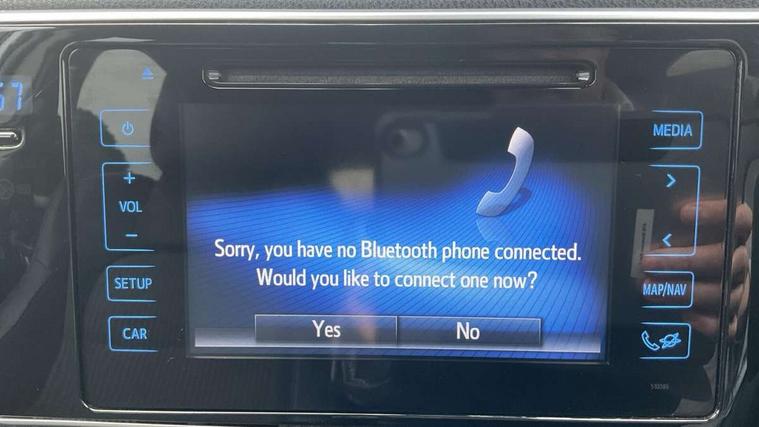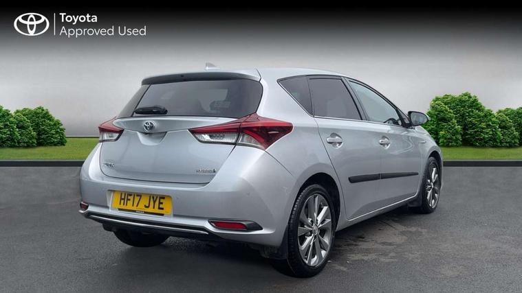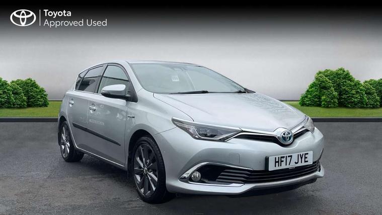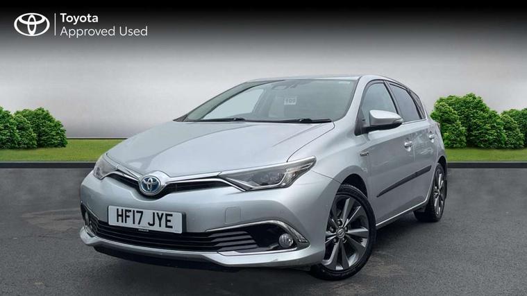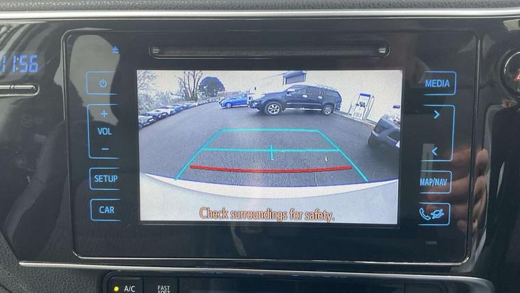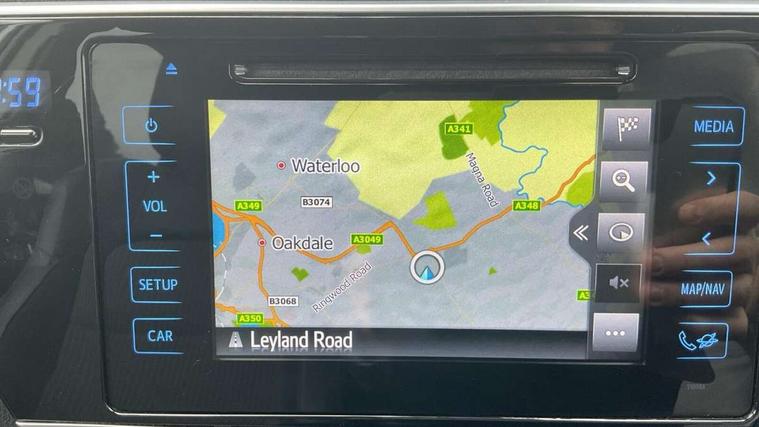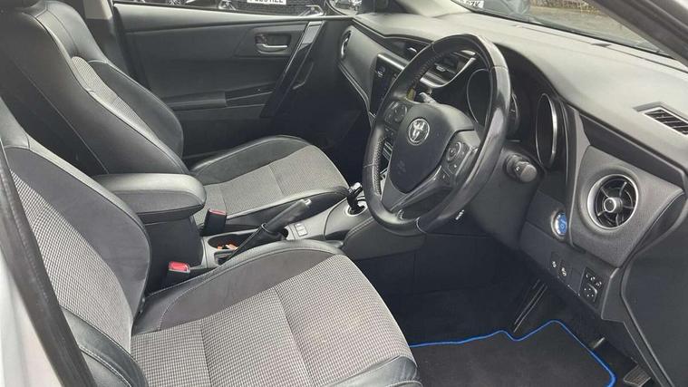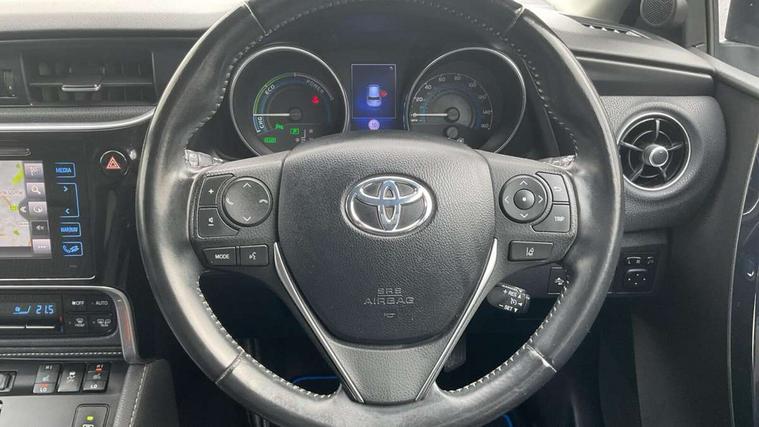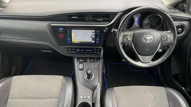 Cruise control, Dusk sensor, Forward collision warning, Intelligent parking assist, Lane departure warning system, PAS, Rear view camera, Touch 2 Go navigation system, 6 speakers, Bluetooth connectivity including audio streaming, DAB Digital radio, Radio/CD + MP3, USB/aux input socket, Auto dimming rear view mirror, Auto high beam, Body colour bumpers, Body colour door mirrors, Chrome bars on lower front grille, Chrome fog lamp bezel, Electric front windows, Electric rear windows, Electrically retractable door mirrors, Front fog lights, LED daytime running lights, LED Headlights, LED rear lights, Lower grille finisher - Piano black, Privacy glass, Rain sensor, Rear wiper, Drivers/passenger heated seats, Dual zone automatic air conditioning, Electric lumbar support, Front and rear headrests, Isofix child seat preparation, Leather gear knob, Leather steering wheel, Newport cloth/leather upholstery, Parking pack - Auris, 3x3 point rear seatbelts, ABS/EBD, Collision mitigation braking system, Driver/Front Passenger airbags, Drivers knee airbag, Emergency brake assist, Front and rear curtain airbags, Front lateral airbags, Hill start assist, Passenger airbag deactivate switch, Road sign information display, Seatbelt pretensioners and force limiters, Seatbelt warning, Vehicle stability control + traction control + brake assist, Smart entry + Smart start, Black instrument panel, 17" alloy wheels, Space saver spare wheel,