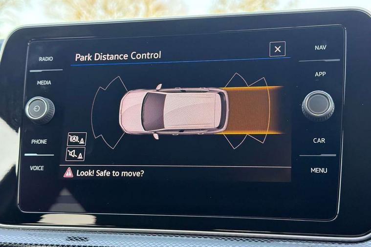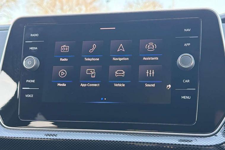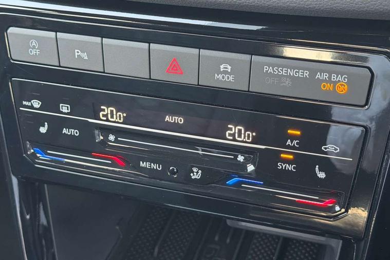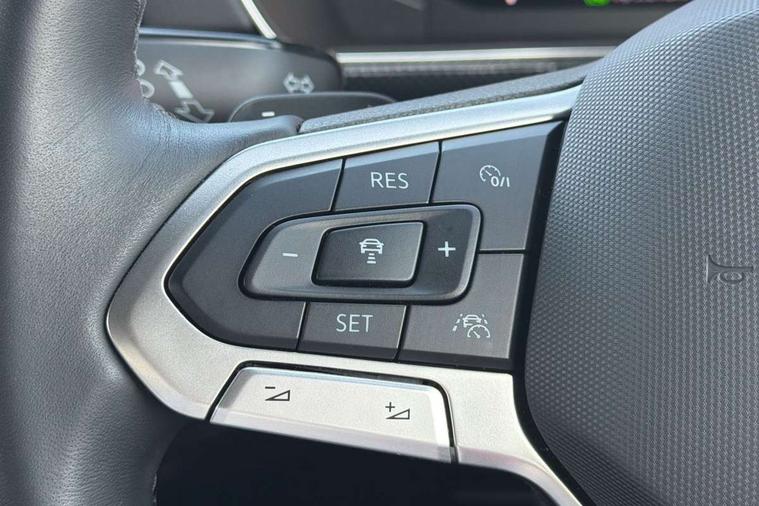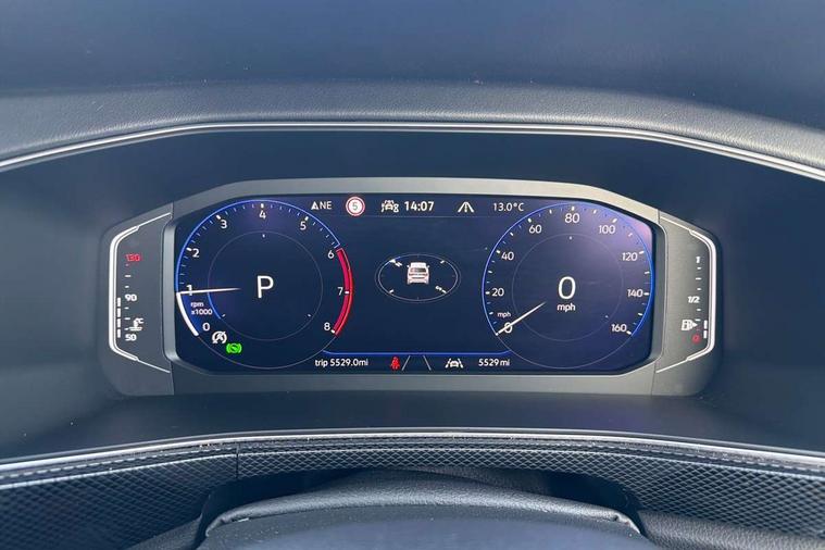 'Lights On' Reminder warning buzzer, 10.25" Digital cockpit pro, Advanced driver attention and drowsiness monitor, Car information display, Driver profile selection including ECO function, Dynamic road sign display, E-Sim card for online connectivity, eCall emergency call system, Front and rear parking sensors, Front assist, forward collision warning, autonomous emergency braking and speed limiter, Low washer fluid warning light, Mobile phone interface with inductive charging, Multifunction computer with visual gear change recommendation for fuel consumption, Multifunction front facing camera for distance control, Operating permit alteration, Power assisted steering, Predictive adaptive cruise control, Preparation for navigation system with media and internet package, Preparation for We connect and We connect plus, Semi-automated driving assistance, travel assist including lane keeping system Lane Assist and emergency assisst, Side assist, Speedo, rev counter, electronic odometer, trip, service interval display, exterior temperature and fuel gauge, Warning sound and light for doors and tailgate open, Warning sound and light for front seatbelts unfastened, Wireless Car net app connect with Apple CarPlay, combined functionality of Apple CarPlay/Android Auto and MirrorLink, Wireless charging, Misfuel prevention device, Start-stop system with battery regeneration (recuperation - energy recovery during braking), 2 USB C ports in front, 2 USB charging sockets on the centre console in the rear charging capacity upto 45W, Diversity antenna for FM reception, Music playback - MP3, WMA and AAC files, Radio, Advanced high beam control dynamic light assist, Automatic dimming interior rear view mirror, Automatic hazard lights activation under emergency braking, Automatic headlight control and coming home and leaving home feature, Black roof rails, Body colour door handles, Body coloured bumpers, Cornering light and poor weather light, Dynamic headlight range control, Electric folding door mirror, adjustable, heated with front passenger exterior mirror lowering function, Exterior mirror housings in black, Exterior mirrors convex on the left and aspherical on the right, Front and rear electric windows, Front door sill protectors with R-Line logo, Galvanised body, Heat insulating and laminated safety glass windshield, Heat insulating darkened glass in side and rear windows, Illuminated molding between headlamps, IQ.Light LED matrix headlamps with LED separate daytime running light, LED rear tail lights with dynamic turn signal, LED third brake light, Lower door sills and door pillars in black, Privacy glass for rear side windows and rear window, Rain sensor, Rear fog light on one side, reversing light on both sides, Rear side wing doors, Rear window aerial, Rear window wiper with intermittent control, Reflectors in all doors, Scuff plates, Tailgate with integrated roof spoiler, 12V Accessory socket in centre console, 2 Front and rear reading lights incorporating LED technology, 3 rear head restraints, 3 seat bench in 2nd row, 60/40 split folding rear seat backrest, Air care climatronic 2 zone air conditioning system, Ambient lighting and logo projection, Brushed stainless steel pedals, Chrome plated radiator grille inserts, air vent surrounds and light switch surrounds, Cloth upholstery, Comfort front sport seats, Door and side trim panel, Driver and front passenger sunvisor with vanity mirror, Dust and pollen filter, Front + rear carpet mats, Front centre armrest, Front centre armrest with storage compartment, Front footwell illumination, Front seat back storage pockets, Glove compartment door with light, Heated front seats, Heating and fresh air system with 4 stage blower, Height/reach adjust steering wheel, Instrument lighting white adjustable panel illumination, Interior light with switch off delay and dimmer, Isofix anchors for child seats on outer rear seats and front passenger seats, Leather gearshift handle, Leather wrapped multifunction steering wheel with paddle shift, Luggage compartment floor, Luggage compartment lighting, Manual front seats with height adjustment, Padded dashboard, Removable luggage compartment cover, Single front passenger seat, Storage compartment in drivers and front passengers door, Titanium black roof lining, Unsplit sliding rear seat bench, Without drawers under front seats, 3 point outer rear seat belts with ECE label, 3 Point seatbelt for centre rear seat, Anti-lock Braking System (ABS) with Hydraulic Brake Assist (HBA), Automatic post collision braking system, Disc brakes in front, Disc brakes in rear, Driver and front passenger safety-optimised head restraints, Drivers and Front Passengers airbags with front passengers airbag deactivation switch, ESC with EDL and ASR (traction control), Extended and predictive pedestrian/cyclist protection, Front and rear passenger curtain airbag system including front side airbags, Height adjustable front 3 point seatbelts + pretensioners, Hill start assist, Pre crash preventive occupant protection, Proactive passenger protection system in combination with front assist, Rear door child safety locks, Rigid safety cell with front and rear crumple zones, Single tone horn, Tyre pressure loss indicator, Volkswagen roadside assistance, Alarm with interior protection, Anti theft alarm system, Anti theft wheel bolts, Electronic engine immobiliser, Remote tailgate unlocking using key fob, Black decorative trims, Titanium Black Decorative inserts - R Line, 18" York alloy wheels in black, Low rolling resistance tyres,
