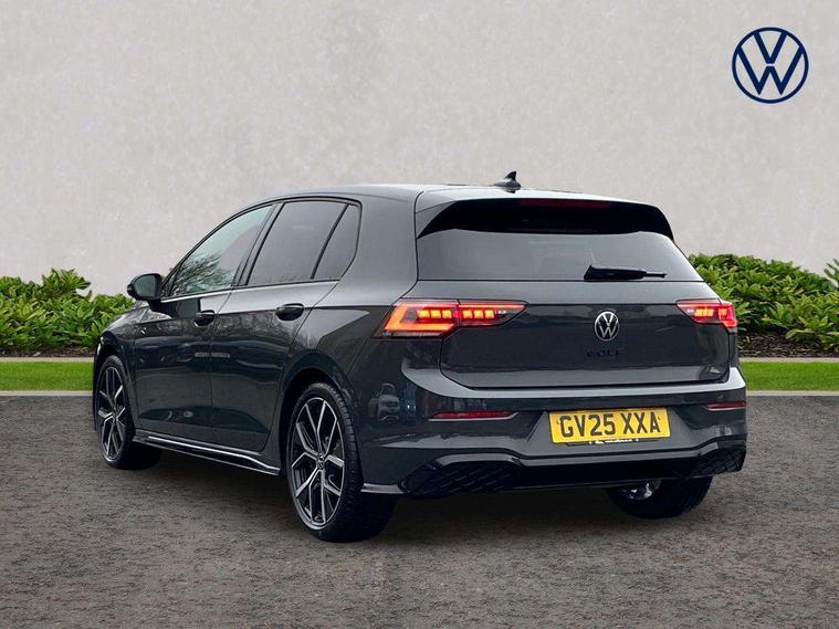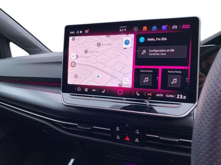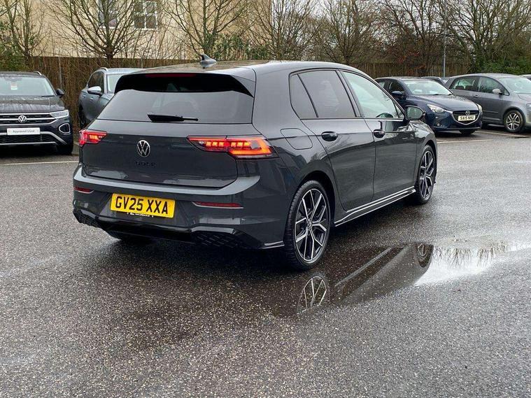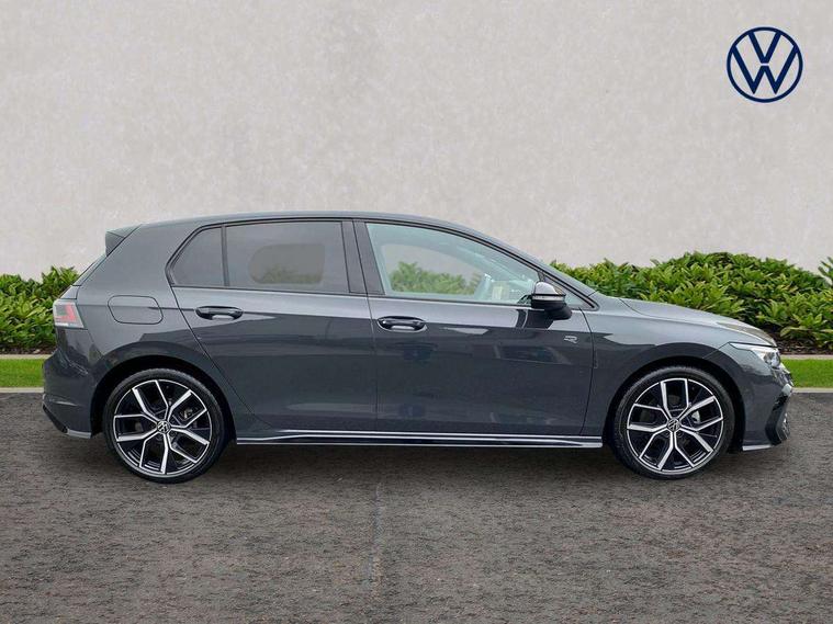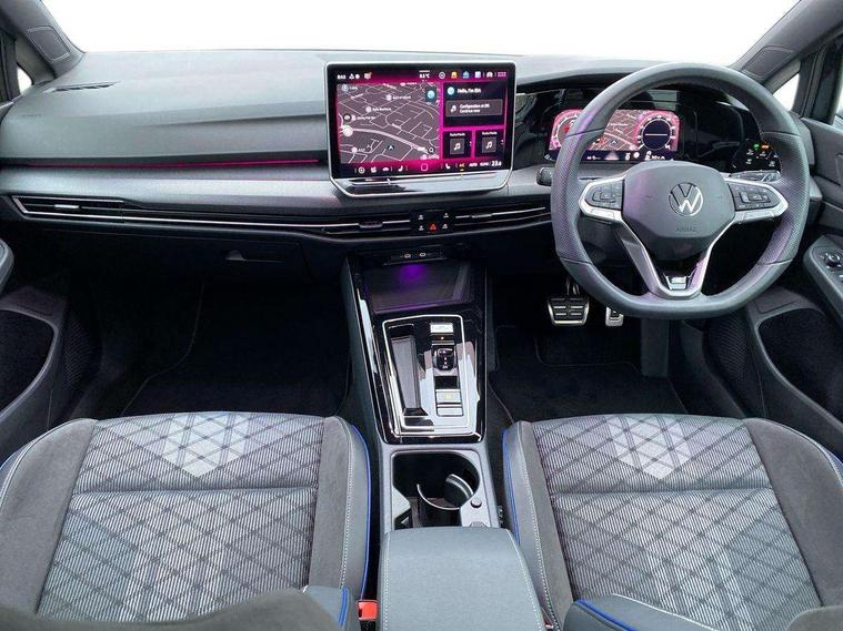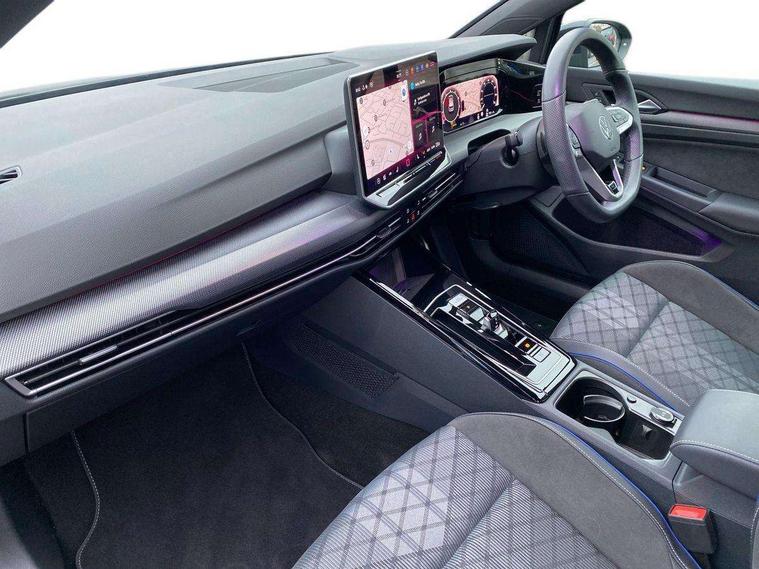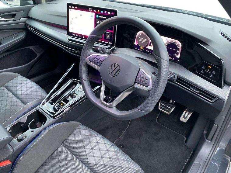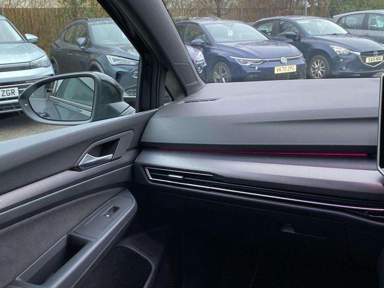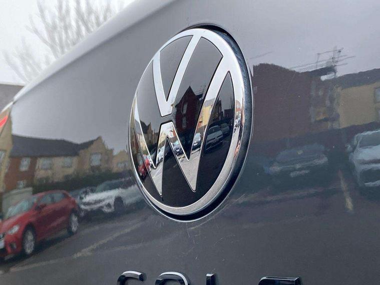 Activated carbon canister, Adaptive cruise control (ACC), Advanced driver attention and drowsiness monitor, Dynamic road sign display, Dynamic steering, E-Sim card for online connectivity, eCall emergency call system, Multi-color Digital cockpit pro, selection of different info profile possible, Multifunction front facing camera for distance control, Navigation system, Oncoming vehicle braking when turning including swerve support, Speed limiter, Speedo, rev counter, electronic odometer, trip, service interval display, exterior temperature and fuel gauge, Traffic jam assist, Voice enhancer and voice control, Warning signal and warning light for front and rear seatbelts not fastened, We connect plus preparation, We connect preparation, Wireless app connect, Hybrid propulsion system, Petrol Particulate Filter, Start-stop system with battery regeneration (recuperation - energy recovery during braking), XDS electronic differential lock for improved traction and handling, 2 USB C ports in front, 2 USB charging sockets on the centre console in the rear charging capacity upto 45W, Digital radio reception (DAB), Diversity antenna for FM reception, Gaming platform via car app, Infotainment system with 12.9" display, Mobile phone interface with inductive charging feature, 3rd brake light, Auto dimming rear view mirror, Automatic headlamp activation with Coming home and Leaving home feature, Body colored bumpers in R-Line style, Body colour door handles, Exterior ambient lighting, Exterior mirrors convex on the left and aspherical on the right, Front and rear electric windows, Heat insulating windshield made of laminated glass, LED separate daytime running light, Rain sensor, Rear exhaust tailpipe, Rear fog light on one side and reversing lights on both sides, Rear side wing doors, Rear windscreen washer and wiper with interval delay, Remote electrically foldable door mirrors, puddle lights and reverse activated passenger's door mirror, Volkswagen logo in front, illuminated lighting animation with wake up/goodbye scenario and illuminated door handles, Welcome light with surround lighting, 12V socket in front centre console, 12V socket in luggage compartment, 3 rear head restraints, 3 seat bench in 2nd row, Ambient lighting with 30 colour including LED light unit in front footwell with selectable light colour, Black roof lining, Brushed stainless steel pedals, Chrome plated radiator grille inserts, air vent surrounds and light switch surrounds, Door insert, side trim panel and arm support in leatherette, Front + rear black carpet mats, Front centre armrest, Front seat lumbar support adjuster, Integrated front head restraints, ISOFIX anchors for child seats on outer rear bench seats and on front passanger seat compatible for i-Size, Luggage compartment lighting, Manual height adjustable front passenger seat, Manually height adjustable driver seat, Plastic gear knob, Premium sports seats in front, Rear cupholder and loadthough, Sardegna cloth upholstery with front and outer rear seats Art Velour inner sides of bolsters, Single front passenger seat, Split folding backrest with centre armrest and unsplit rear seat bench, Sun visors with illuminated vanity mirrors, Titanium black instrument panel, Black exterior Styling package with Matrix LED headlights - Golf, Winter package - Golf DSG Estate/Hatchback, 3 point height adj front seatbelts + pretensioners, 3 rear three point seatbelts, ABS, Autonomous emergency braking front assist with pedestrian and cyclist monitoring, Child locks on rear doors, Driver and front passenger airbag with front passenger airbag deactivation, Electronic parking brake with auto hold, ESC (Electronic Stability Control), Extended pedestrian protection measures, Hill start assist, Rear disc brakes, Two tone horn, Tyre pressure loss indicator, Volkswagen roadside assistance, Anti theft wheel bolts, Preparation for alcohol interlock, Decorative inserts carbon grey for dashboard and front door trim panels, 18" Leeds alloy wheels, Tool kit for tyre mobility set, Tyre mobility kit Includes 12V compressor and tyre sealant,