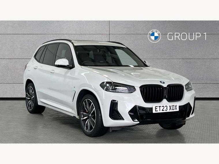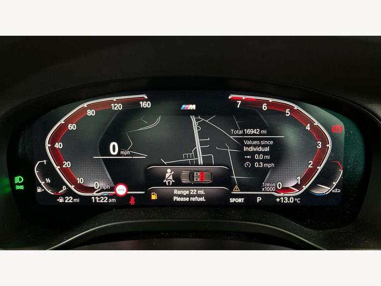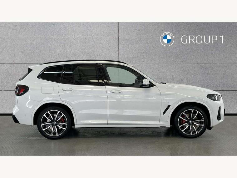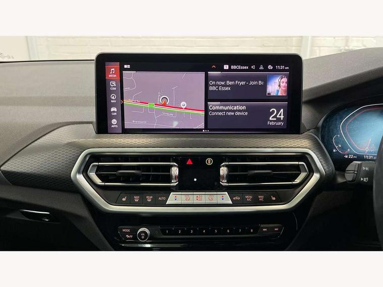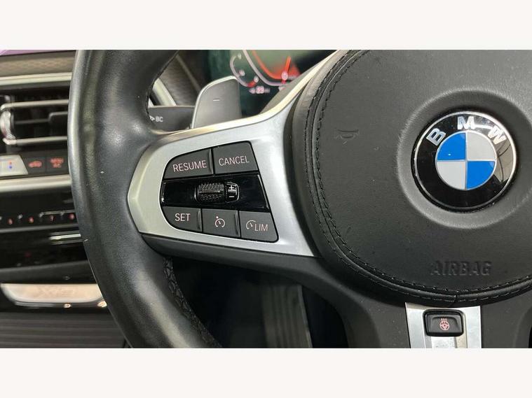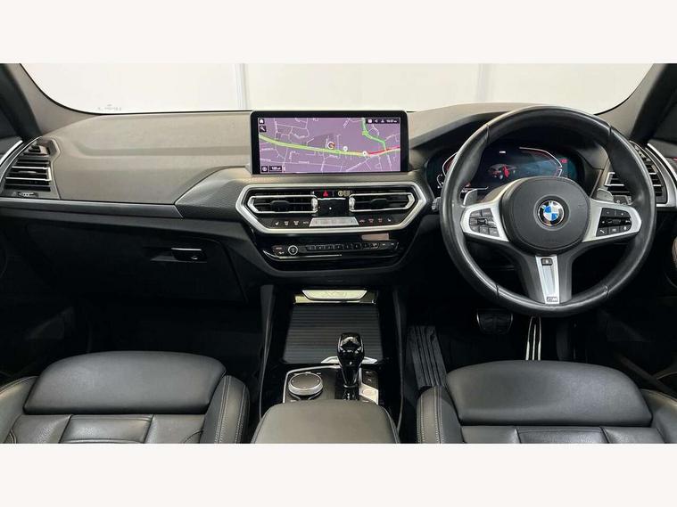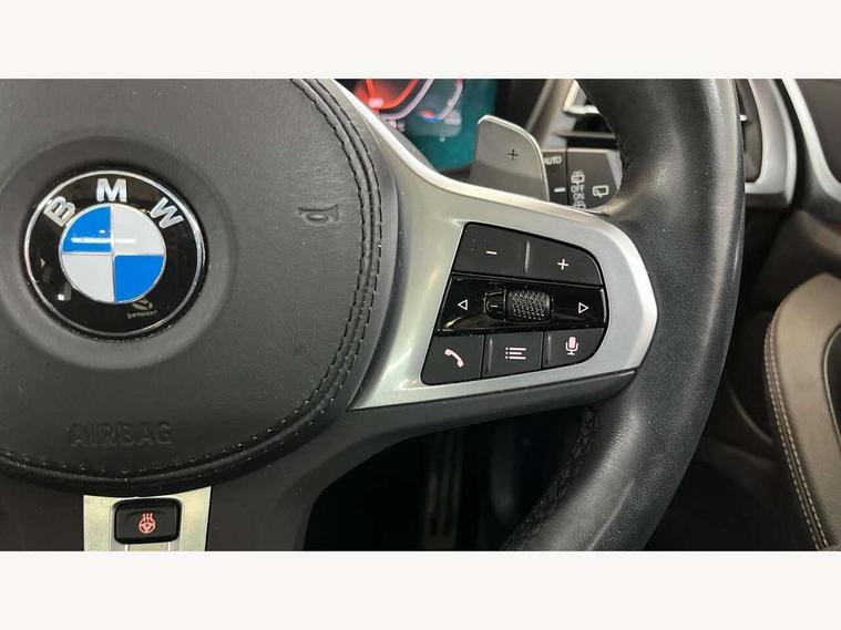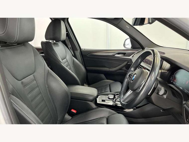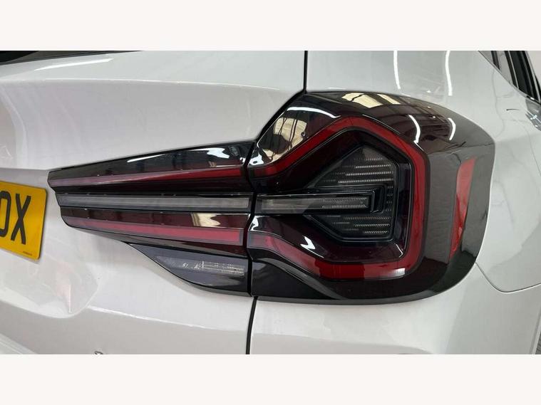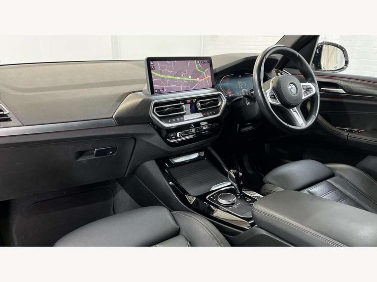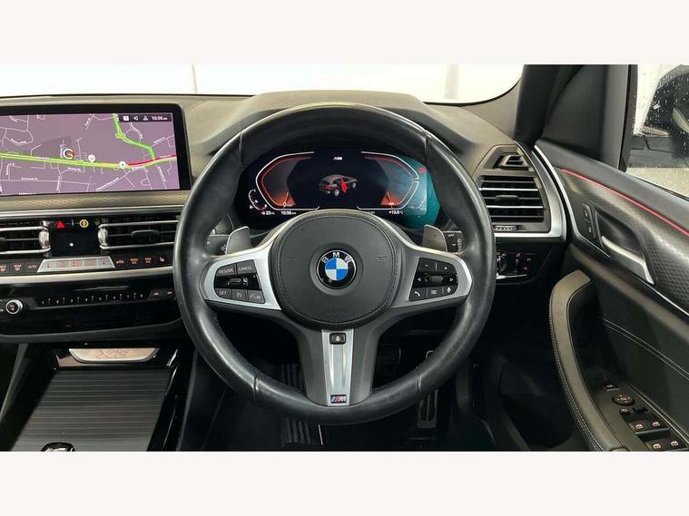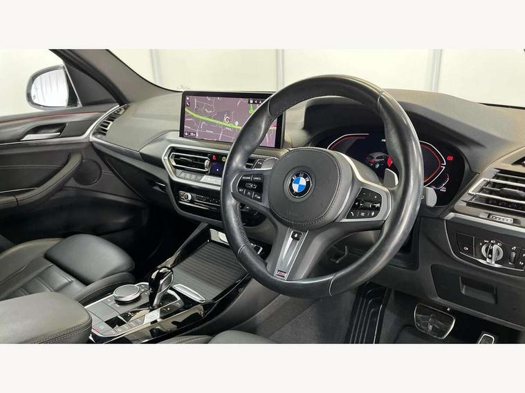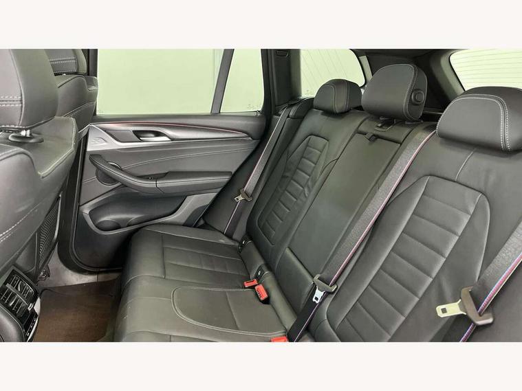 Active Guard, Attentiveness assist, BMW Live Cockpit Professional nav system including 12.3" instrument display + 12.3 high resolution control display, BMW Online services, BMW Teleservices, Brake pad wear indicator in front and rear, Check Control warning system for monitoring of lights and door/luggage compartment open warning, Condition based service - BMW service history, electronic service booklet, integrated owner's handbook, Connected drive services, Electric boot lid, Front/rear Parking distance control, iDrive touch controller with 8 favourite buttons, Instrument cluster with speedometer with mph readout, tachometer, fuel gauge and oil temperature gauge, Lights on warning by audio warning signal when ignition is switched off, Oil sensor for level and grade, warning by check control system, On board computer - average speed+fuel consumption, service interval, clock/date, odometer/trip meter, outside temperature display and ice warning, Optimum shift indicator, Personal Profile - automatic lock when driving away selectable, Run flat indicator, Stop/start system, Variable sports power steering with drive performance control Sport+ mode, Automatic transmission with gearshift paddles, Incorrect fuelling protection, M sport suspension, Multi-link rear suspension, BMW professional radio/CD/MP3, DAB tuner, Acoustic glazing, Automatic windscreen wipers and automatic headlight, Black finish on B pillars, Body colour door handles, Body colour electric adjust heated aspherical door mirrors, Body colour roof mouldings, Body coloured bumpers, Direction indicator, side repeaters, integrated in exterior mirrors, Dynamic brake lights, Exhaust tailpipes - dual, round, split left and right with chrome finisher, Fingertip control / anti-trap function on electric window, Folding wing mirrors with auto dimming, Follow me home headlights, Front and rear bumper system with replaceable deformation elements, Front and rear electric windows, Gloss chrome tailpipes finishers, Green tinted heat insulating glass, Heated windscreen washer jets, High beam assistant, High gloss black shadow line roof rails, High gloss shadowline exterior trim in decorative moulding side frame/recess cover/guide rail/B, C pillars/mirror frame and triangle with mirror base, High level 3rd brake light incorporating LED Technology, Interior rear view electrochromatic mirror with automatic anti dazzle function, LED tail lights, Lightweight engineering, M aerodynamic bodystyling, M Sport entry door sill strips, Model designation, Rain sensor, Rear side wing doors, Rear wing door, Rear wiper, Shark fin antenna, Side exterior M designation badges, Visible VIN plate, Welcome lighting, Windscreen wipers with adjustable interval, 12V power point in luggage area, 12V power socket in front centre console, 2 x USB Type C ports for charging and data transmission (front centre console) and 2 x USB Type C ports for charging (rear centre console), 3 rear headrests, 3 seat bench in 2nd row, 3 zone automatic air conditioning, 4 lashing points to secure luggage, 40:20:40 split folding rear seat with loading system, Ambient lighting, Anthracite headlining, Automatic interior light when door is opened/ignition switched off or via remote key, Floor mats in velour, Foldable storage floor with compartment, Four grab handles integrated in roof lining, Front and rear bottle holders integrated into door trim storage compartments, Front and rear side armrests integrated into door trim, Front centre armrest with storage compartment, Front footwell lights, Front head restraints, Front passenger seat, Front sports seats, Front/rear courtesy lights with soft on/off dimming, Front/rear reading lights, Heated front seats, Isofix rear child seat preparation, Leather gear knob, Lockable glove compartment, Luggage area underfloor compartment, Luggage compartment lighting, M sport leather steering wheel, Multifunction steering wheel, Parcel shelf removeable and storable under boot floor, Reach and rake adjustable steering column, Rear centre armrest with 2 cupholders, Removable / retractable luggage cover, Slope adjustable rear seats, Storage compartment in rear centre console and front/rear door trims, Sun visors with vanity mirrors and ticket pocket, Toolkit located in luggage compartment, Two front cupholders with removable oddments tray/lid, Connected pro pack - X3, ADB - Automatic Differential Brake, Anti-lock braking system (ABS) with brake assist, Automatic Stability Control (ASC), Battery safety cut-off, BMW emergency call, Brake drying, Brake energy regeneration, Braking pre-tensioning, Child locks on rear doors, Cornering brake control (CBC), Crash Sensor - activation of central locking release, hazard warning light and interior lighting, Deactivation of fuel pump in the event of a crash, Driver and front passenger front and side airbags with passenger deactivation and ITS front and rear head airbags, Driver and front passenger knee airbag, DSC+, Dynamic brake control, Dynamic Traction Control - DTC, Electromechanical parking brake, Hill descent control, Hill start assist, Seatbelt security check for front seats, Side impact protection, Three point seatbelts to all seats with front and outer rear pyrotechnic belt tensioners and seat belt force limiters, Two tone horn, Tyre pressure sensor, Ventilated front and rear disc brakes, Warning triangle and first aid kit, Central locking switch for all doors, fuel filler cap and luggage compartment, Electronic engine immobiliser, Locking wheel nuts, Remote control including two integrated key - one button for open/close all lockable content, windows and separate button for open luggage compartment, Remote control Thatcham category 1 alarm, Start/stop button with Comfort Go keyless engine start and auto Start/stop deactivation button, Low rolling resistance tyres,