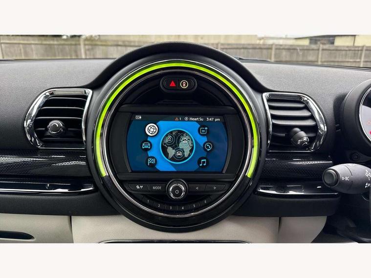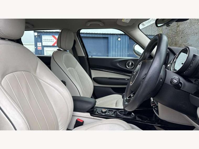 Active Guard incl speed limiting and lane departure functions with auto steering, and front collision warning with brake intervention, Automatic start/stop function with brake energy recuperation, Compatible mobile phone bluetooth with audio streaming, Electro-mechanical speed dependant steering assistance, Instrument cluster, Mini E-call, MINI TeleServices, On board computer, Double Vanos system, Fully variable valve control, High precision injection, FM tuner and DAB digital radio, Body colour fuel filler cap, Chrome line exterior, Door sill strips, Dynamic brake lights, Electric windows, Heated rear window, Heated windscreen washer jets, Left exhaust tailpipe with chrome finisher, Model logo, Model logo on rear doors, Radiator grille, Rain sensor with auto headlights, Rear fog lights, Rear window wiper, Side scuttle panel with integrated indicator, Split rear doors, Sun/heat protection glass, White indicator lenses, 12V Accessory socket in centre console, 360L luggage compartment capacity, 4 lashing eyes in luggage compartment, 60/40 split folding rear seat, Chrome interior highlights, Cupholders, English handbook, Glove compartment, Height and length steering column adjustment, Interior lighting with 12 basic colours selectable via toggle switch in roof, Isofix rear child seat preparation, Leather gearshift lever and handbrake gaiters, LED reading lights, vanity mirror lights, front foot well light and spotlight on front seats, Manual air conditioning, Mechanical seat adjustment, driver seat height adjust, forward/back and front seats backrest, MINI Yours fine walk nappa leather steering wheel with contrast stitching in silver and MINI Yours badge, Multifunction steering wheel, Storage compartments in doors, Sunvisors with vanity mirrors, Toolkit, Excitement pack - Clubman, Navigation pack - Clubman, 2 tone horn, 3 point seatbelts on all seats, 6 Airbags - front, side, head and seat belt tensioners, Anti-lock braking system (ABS), DSC - Dynamic Stability Control, Electronic handbrake, Front and rear disc brakes, Tyre pressure monitoring system, Alarm system with tilt sensor, monitoring doors, bonnet interior and tailgate, Auto drive away locking, Deadlocking function, Electronic vehicle immobiliser, Locking wheel bolts, Start/stop toggle with keyless go, Chrome line interior,