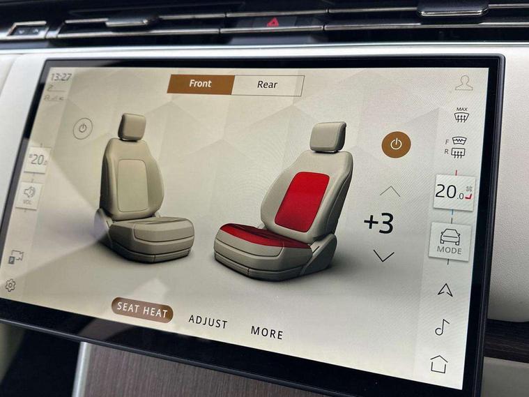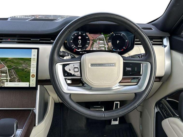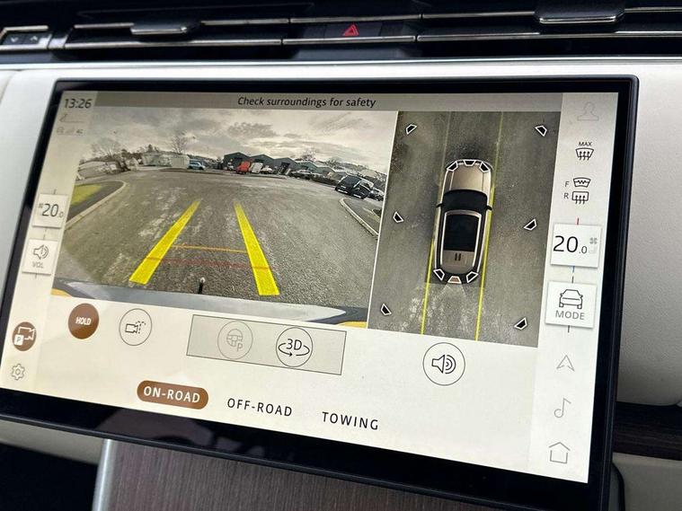 13.1" Touchscreen, 3D surround camera inc frwd traffic detection, vehicle clearance guidance, 3D view, clearsight ground view, manoevure light, 360 parking aid, wade sensing, All Terrain Info Centre, All wheel steering, Android Auto, Apple car play, Blind spot assist, Bluetooth connectivity streaming, Driver condition response, Eco mode, Electric power assisted steering (EPAS), Emergency call service, Front and rear parking aid, Interactive driver display, Lane keep assist, Park assist, Rear collision monitor, Rear traffic monitor, Remote, Traffic sign recognition with adaptive speed limiter, Wi-Fi Enabled with data plan, Wireless device charging with phone signal booster, 8 speed automatic transmission, Active damper technology system, Adaptive dynamics, Adaptive off-road cruise control, All Wheel Drive (AWD), Automatic access height, Terrain Response 2 Auto, Twin speed transfer box, Digital Audio Broadcast radio-DAB, Pivi pro including smart settings, Connected navigation pro, nuance speech, USB socket, Acoustic laminated windscreen, Animated directional indicators, Automatic headlights, Automatic levelling headlights, Centre high mounted stop light, Electric windows with one touch open/close and anti trap, Engine cover, Flush deployable exterior door handles, Front and rear recovery eyes, Front fog lights, Headlamp power wash, Heated rear window, Heated washer jets, Illuminated aluminum treadplates with Range Rover script, LED tail lights, No badges, Pixel LED headlights with signature DRL, Power fold, auto-dimming, heated door mirrors with approach lights, Rain sensing windscreen wipers, Rear boot, Rear fog lights, Rear side wing doors, Side repeater indicators in mirror, Trailer stability assist, Winter wiper park position, 12V power sockets, 3 seat bench in 2nd row, Air quality sensor, Bright metal pedals, Cabin lighting, Customer configurable single point entry, Driver and passenger front seat armrests, Easy boot loading, Ebony Carpet, Front and rear cupholders, Front and rear grab handles, Front head restraints, Gearshift paddles, Heated steering wheel, Hook in load space, Loadspace light, Luggage tie down in loadspace, Multifunction steering wheel, Rear centre armrest, Rear head restraints, Rear ISOFIX, Single front passenger seat, Soft close doors, Upper and lower glovebox, Online pack with data plan - Range Rover, 3x3 point rear seat belts, Anti-lock braking system (ABS), Brake hold function, Cornering brake control (CBC), Customer configurable autolock, DSC - Dynamic Stability Control, Electronic brake force distribution, Electronic parking brake, Electronic traction control, Emergency brake assist, Emergency braking, Front airbags with passenger seat occupant detector, Front side airbags, Hill descent control, Hill launch assist, Low traction launch, Occupant protection assist, Power operated child locks, Roll stability control, Tyre pressure monitoring system (TPMS), Immobiliser, Intrusion sensor and alarm, Keyless entry, Locking wheel nuts, Remote central locking, Noble chrome controls,