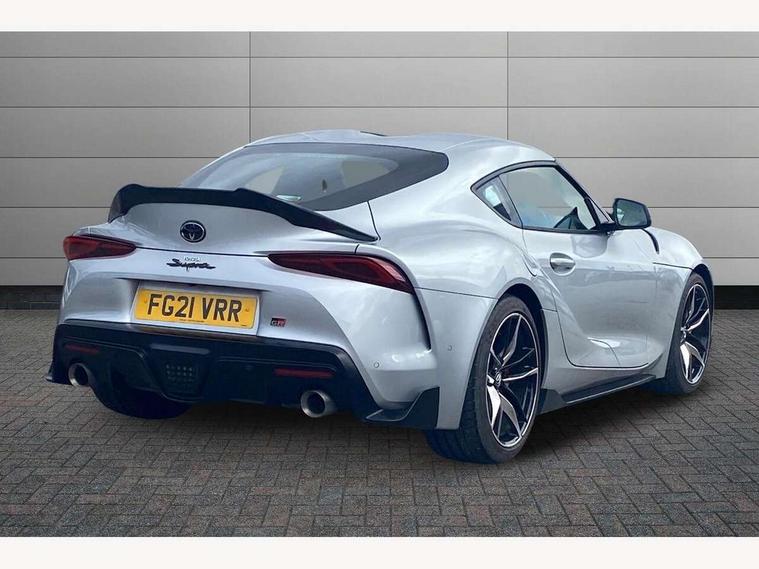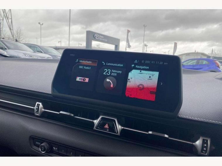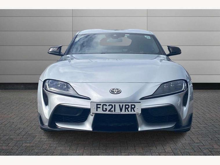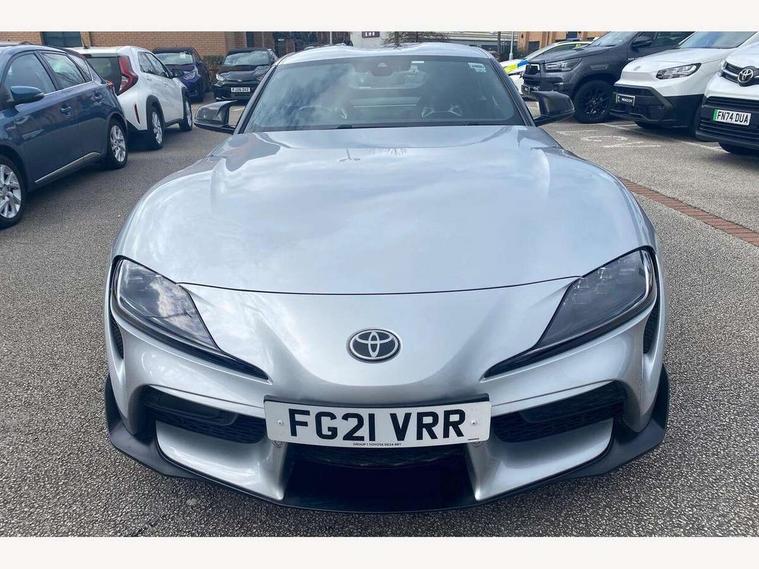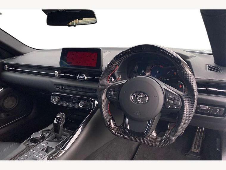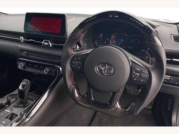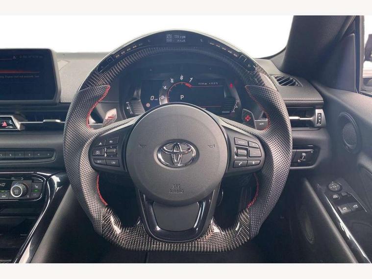 Adaptive cruise control with stop and go + steering wheel, Adjustable speed limiter, Blind spot monitor, Bluetooth handsfree system, Digital speedometer, Drive mode selector, Driver and passenger microphone, E-call, Front and rear parking sensors, Head up Display, Lane departure alert with steering control, PAS, Push button start, Rear collision warning, Rear cross traffic alert, Rear view camera, Remote boot door release in cabin, Road sign assist - RSA, Service indicator, Smartphone integration with Apple CarPlay, Sport drive mode, Start/stop system, Telephone switch on steering wheel, Toyota supra connect, Voice recognition, Wireless charger, Active sports differential, Adaptive variable suspension, Vehicle Stability Control (VSC), 2.1 amp USB connector, Audio switch on steering wheel, DAB Radio (Digital Audio Broadcasting), Glass integrated antenna, JBL premium sound system with 12 speakers, Toyota touch 2 with go navigation system, Auto adaptive high beam, Auto cut off headlamps, Auto dimming inside rear view mirror, Auto headlights, Automatic headlight levelling, Automatically retractable door mirrors, Boot door release with push button, Brushed stainless steel dual exhaust pipes, Cornering light, Electrically adjustable driver and passenger door mirrors with memory function, Electrochrome door mirrors, Follow me home headlights, Heated door mirrors, Indicators integrated on door mirrors, LED daytime running lamp, LED dual beam projector headlights, LED front light guide, LED High mounted stop light, LED Indicators, LED rear fog light, Piano black door mirrors, Rain sensing wipers, Reverse gear tilting passenger door mirror, 12V power outlets front and rear, Active sound control, Aluminium door scuff plates, Aluminium pedals, Boot light, Chrome insert on centre console, Door courtesy light, Driver and front passenger personal light, Driver and passenger seatback pockets, Driver seat memory function, Driver/passenger sunvisors and illuminated vanity mirrors, Dual zone automatic air conditioning, Electrically adjustable lumbar support for driver and front passenger, Electrically height adjustable, sliding and reclining front seats, Floor mats, Front cupholders, Front footwell lights, Front headrests, Front sports seats, Gear shift indicator, Glovebox light, Heated driver and front passenger seats, Leather steering wheel, Leather upholstery, Luggage holding net, Luggage hooks, Multimedia switches on steering wheel, Paddle shift controls, Power tilting cushion on driver seat, Tilt/telescopic adjustable steering wheel, Tonneau cover, Voice recognition switch on steering wheel, Child restraint system, Electronic parking brake, Emergency brake light system (EBS), Front seatbelt reminder, Pre-collision system with pedestrian and cyclist detection, Red sports rear brake caliper, Sports front brake caliper, Start holding control, Supplemental restraint system (SRS) airbags - 7 airbags including driver, front passenger, curtain, side and knee airbags, Traction control, Tyre pressure monitoring system, Immobiliser, Intrusion sensor and alarm, Locking wheel nuts, Power door locks, Remote door lock, Smart entry, Speed detecting automatic door lock, Tilt detection sensors, Carbon dash insert, 19" Black and silver forged alloy wheels, Tyre repair kit,