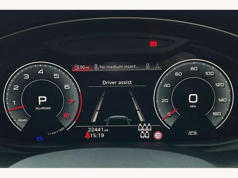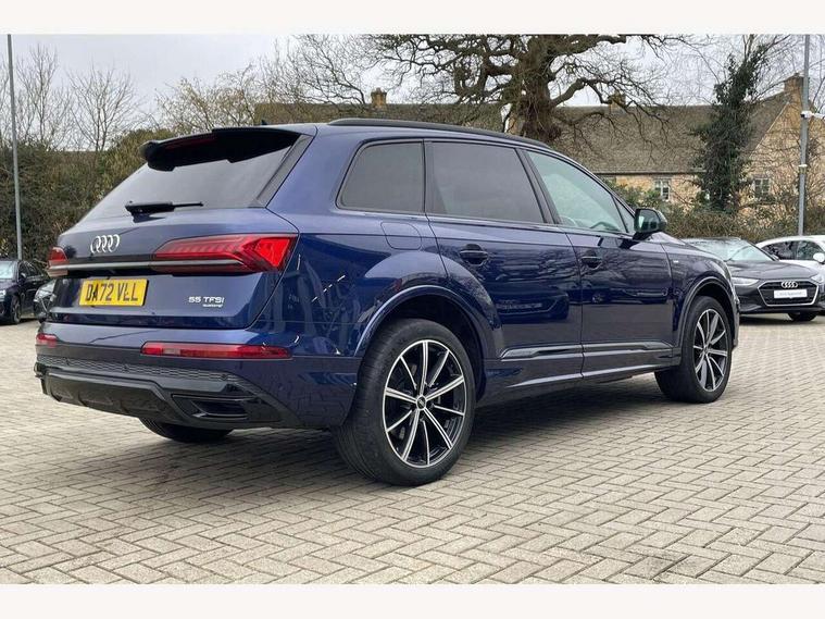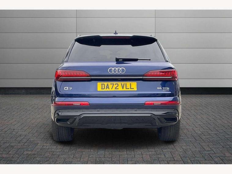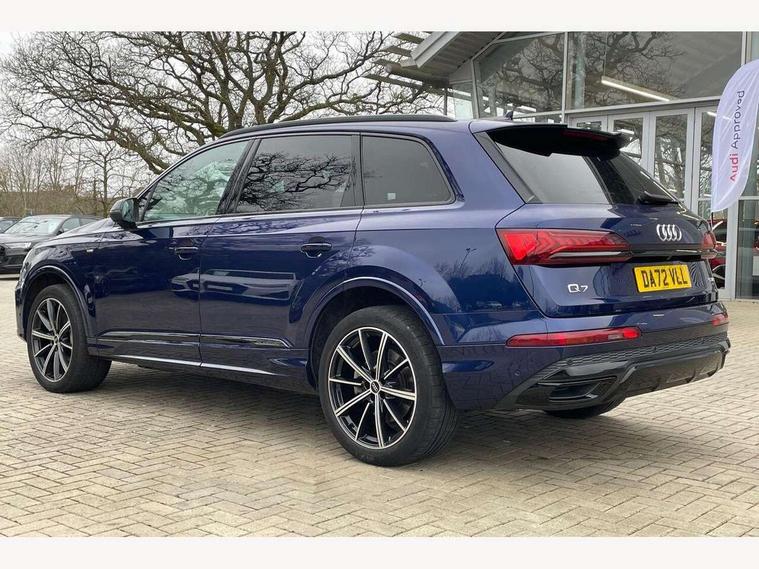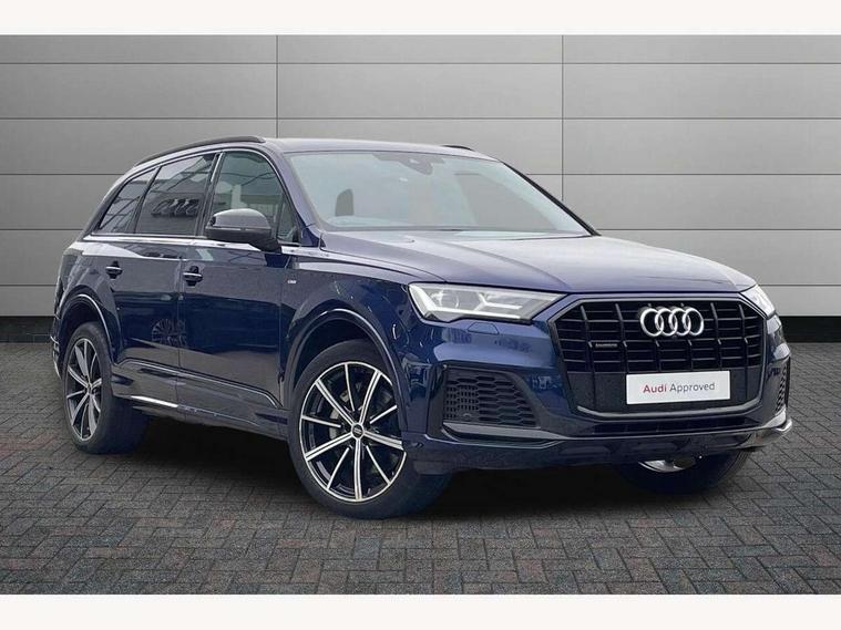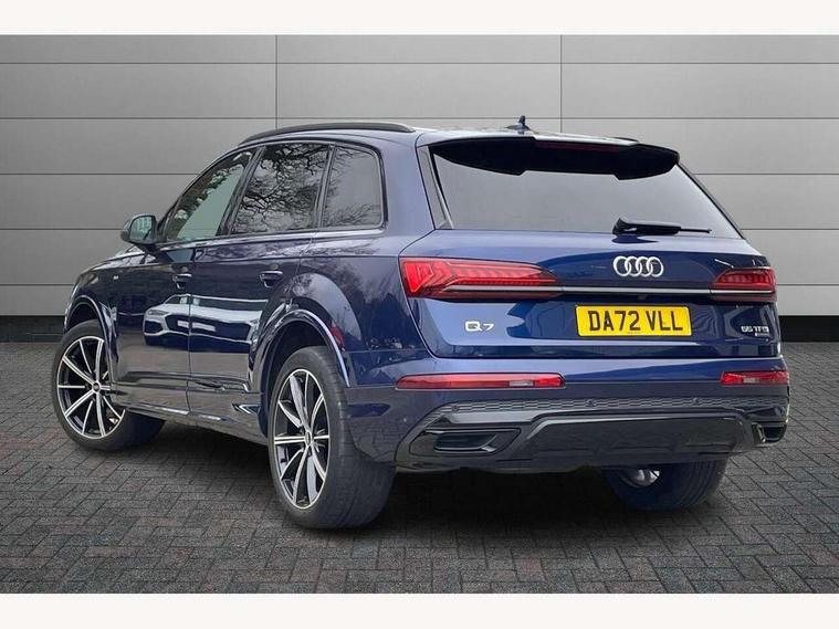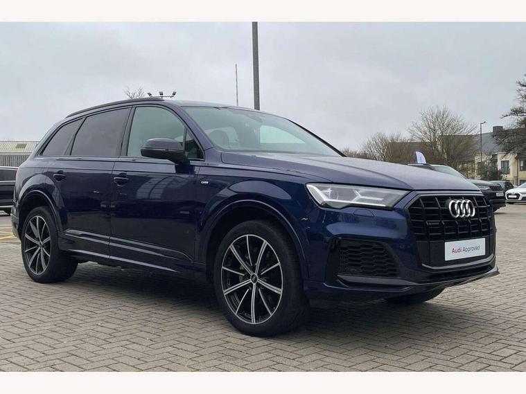 Audi connect safety and service (e-call), Audi connect with Amazon Alexa Integration, Audi drive select (Auto, Comfort, Dynamic, Efficiency, Individual, Off-road and All road), Bluetooth interface, Camera based traffic sign recognition, Electromechanical steering, MMI navigation plus with MMI touch screens includes 10.1" and 8.6" screens with haptic feedback, Natural voice recognition, Parking system plus with 360 degree display (front, rear and side sensors) - acoustic and visual park assist system, Power operated tailgate, Rear view camera, Smartphone interface includes wireless Apple carplay/Android Auto, Start/stop system, 48V Mild hybrid technology, 85 litre fuel tank, Adaptive air sports suspension, Quattro all wheel drive with self locking centre differential, Audi music interface - front 2 USB-C ports with charger and data functions, Audi sound system with 6 channel amplifier, 180 watt amplifying capacity and 10 loudspeakers including subwoofer, DAB digital radio module, 3rd brake light, Audi matrix LED headlights with dynamic front and rear indicators, Auto dimming frameless rear view mirror, Black roof rails, Bumpers in contrast paint scandium grey finish includes door trim and wheel arch trim strips, inlays in door strip contain quattro embossing, Electrically adj heated/folding + automatically dimming exterior mirrors with memory + automatic kerb side function for passenger side exterior mirror, Heat insulating glass in windshield, Integrated LED indications in door mirrors, LED daytime running lights, LED rear tail lights, Privacy glass - dark tinted rear and rear side windows from B-pillar backwards, Rear side wing doors, Rear wiper, 2 seat bench in 3rd row, 3 seat bench in 2nd row, 4 zone deluxe automatic climate control, 7 seat layout with ISOFIX points for the front passenger seat and rear passenger seat, Black cloth headlining, Comfort front centre armrest, Electric adjustable front seat with 4 way lumbar support, driver memory functionality, Folding rear seats, Front head restraints, Front/rear floor mats, Heated front seats, Illuminated door sill trims with S logo, LED interior ambient lighting, Luggage compartment cover, Luggage compartment sill protection in stainless steel, Rear head restraints, Single front passenger seat, Stainless steel pedals, Sunvisors with illuminated vanity mirrors, Titanium black styling pack - Q7/SQ7, 3 point seatbelts on all rear seats, Audi pre sense front, Child locks on rear doors, Driver and front passenger, front side and curtain airbags, Electromechanical parking brake, Electronic Stabilisation Control (ESC) including ABS, ASR and EDL, Extended pedestrian protection measures, Hill hold assist, Seatbelt monitoring, Tyre pressure loss indicator, Warning triangle and first aid kit, Anti theft alarm, Anti-theft wheel bolts and wheel loosening detection, Keyless Go, Remote central locking, Polished oak trim with grey finish inlay, Tool kit, Tyre repair kit,