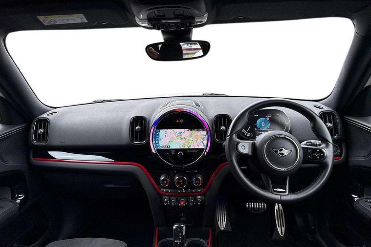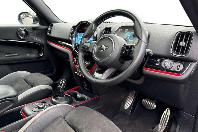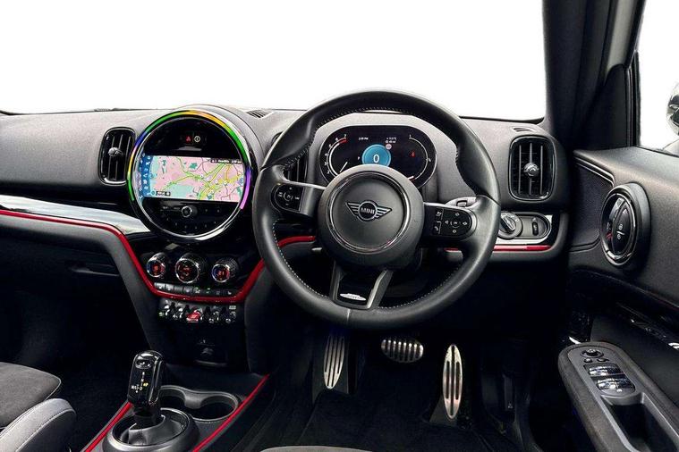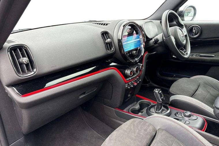 Active Guard incl speed limiting and lane departure functions with auto steering, and front collision warning with brake intervention, Automatic start/stop function with brake energy recuperation, Compatible mobile phone bluetooth with audio streaming, Cruise control with brake assist, Electro-mechanical speed dependant steering assistance, Instrument cluster, MINI Driving Modes - centre toggle switch to control driving setting (sport, mid and green), Mini E-call, On board computer, Double Vanos system, Fully variable valve control, High precision injection, Performance Control, Steptronic transmission with double clutch, FM tuner and DAB digital radio, 3rd brake light, Body colour fuel filler cap, Day time driving lights, Door sill strips, Dynamic brake lights, Electric windows, Heated rear window, Heated windscreen washer jets, John Cooper Works - aerodynamic kit (front and rear apron, spoiler), front and rear sport bumpers and part-painted side sills with door sill finishers, John Cooper Works Logo, LED fog lights, Model logo, Model logo on Tailgate, Rain sensor with auto headlights, Rear fog lights, Rear side wing doors, Rear window wiper, Side scuttle panel with integrated indicator, Split rear doors, Sun/heat protection glass, White indicator lenses, 12V socket in centre console, 3 seat bench in 2nd row, 360L luggage compartment capacity, 4 lashing eyes in luggage compartment, 40:20:40 split folding rear seats, Anthracite headlining with grab handles and clothes hooks, Chrome interior highlights, Colour line - Carbon black, Cupholders, English handbook, Front headrests, Glove compartment, Height and length steering column adjustment, Interior lighting with 12 basic colours selectable via toggle switch in roof, Isofix rear child seat preparation, LED reading lights, vanity mirror lights, front foot well light and spotlight on front seats, Mini John Cooper Works leather gearshift lever and handbrake gaiters, Multifunction steering wheel, Nappa leather steering wheel with MINI Yours logo, Rear headrests, Single front passenger seat, Stainless steel pedals and foot rest, Storage compartments in doors, Sunvisors with vanity mirrors, Excitement pack - Countryman, Navigation pack - Countryman, Piano black exterior pack - Countryman, 2 tone horn, 3 point seatbelts on all seats, 6 Airbags - front, side, head and seat belt tensioners, Anti-lock braking system (ABS), DSC - Dynamic Stability Control, Electronic handbrake, Front and rear disc brakes, Hill start assist, Manual rear child locks, Tyre pressure monitoring system, Alarm system with tilt sensor, monitoring doors, bonnet interior and tailgate, Auto drive away locking, Deadlocking function, Electronic vehicle immobiliser, Locking wheel bolts, Start/stop toggle with keyless go, Piano black JCW interior trim, Tool kit,