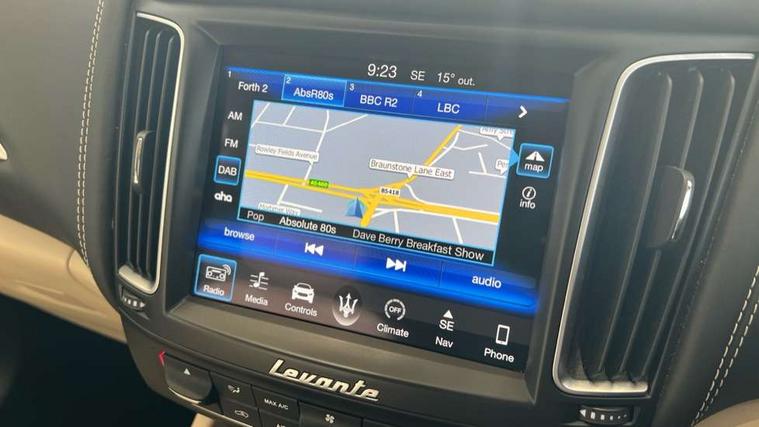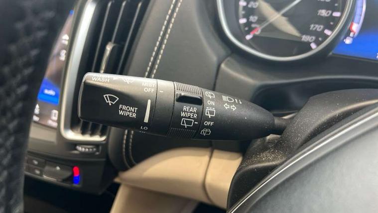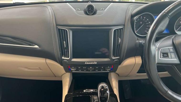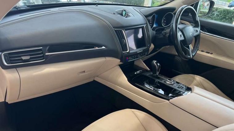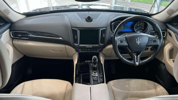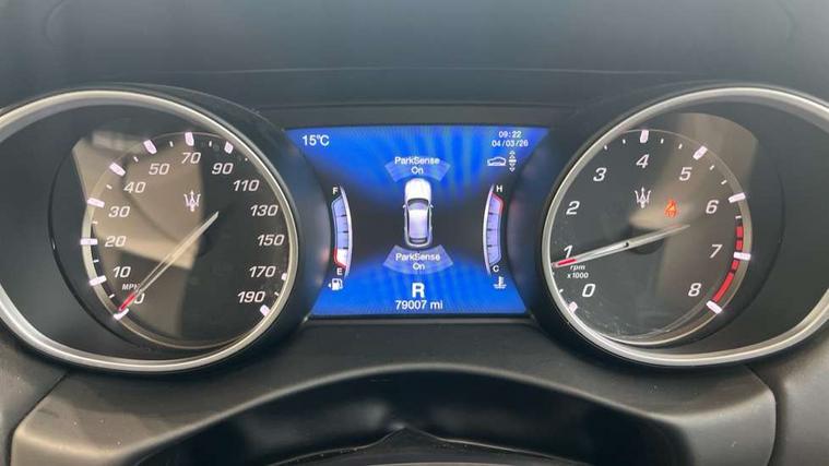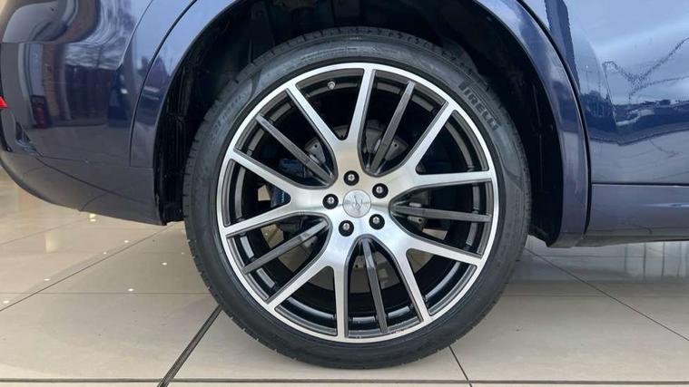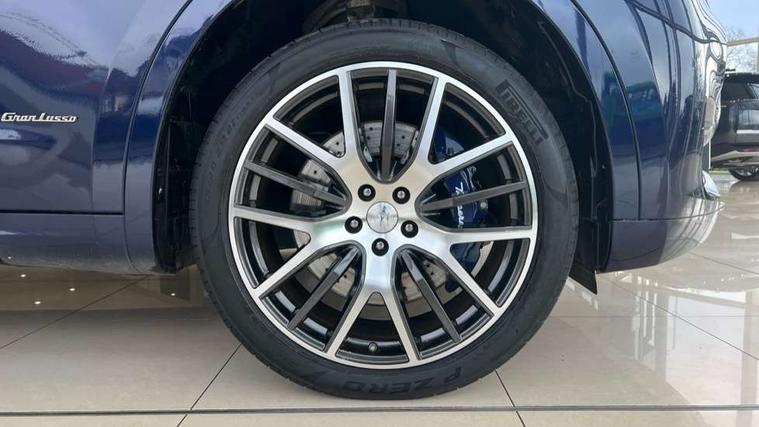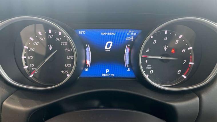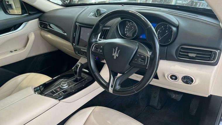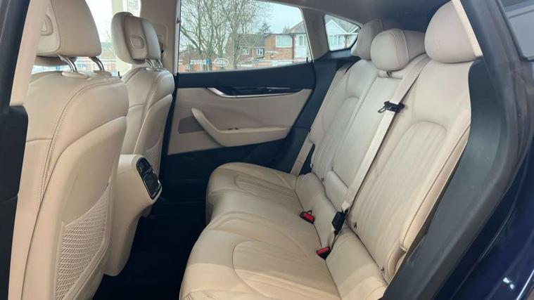 7" multifunction digital display cluster with on-board computer and driver information, Apple car play/Android Auto, Drive mode selector, Front and rear parking sensors, Instrument cluster dials in Maserati blue with white backlighting, Maserati dash mounted design specific clock, Maserati Touch Control + with 8.4" touch screen Nav, DAB radio, video player, SD card slot, USB/Aux-in, phone mirroring + bluetooth audio streaming, Mist sensor, Off road mode setting via sport button, Service indicator, SIRI smart personal assistant, Speed sensitive power steering, Sport mode setting via sport button, Stop/start system, Adaptive air suspension, High double wishbone front suspension with 5-arm multilink rear suspension, Mechanical limited slip differential, Skyhook - Electronically variable active damping suspension system, Air shutter control, Anti trap windows, Auto dimming door mirrors, Automatic headlamp activation, Body colour lower mouldings, Body coloured bumpers, Chrome line exterior, Chrome ornamental side grilles, Demist sensor, Electrically adjustable and folding door mirrors, Electrochromatic rear view mirror, Front and rear electric windows with one touch/anti pinch, Front grille with frame and vertical grille bars in chrome, GranLusso rear spoiler in body colour, Heated door mirrors, Heated rear windscreen, Laminated front glass with high thermal and noise insulation, LED daytime running lights, LED front and rear foglights, LED rear lights, Metallic finish skid plates, Rain sensor, Twin, dual pipe exhaust system in chrome plated stainless steel, 12V socket in luggage compartment, 3 spoke multifunction steering wheel, 60/40 split rear bench seat, 8 way electrically adjustable front seats + 4 way adjustable lumbar support with driver side two memory, Air conditioned front passenger glove box with USB Socket, Air quality sensor, Dark grey zegna silk detailing on seat centre, headlining, sunvisor and door panel with contrast grey stitching, Driver and passenger sunvisor with mirror and courtesy light, Front and rear courtesy lamps, footwell lights and door panel handle LED lights, Front armrest with twin mechanical opening, with illuminated storage compartment, air conditioned and 12V socket, Front headrests, Illuminated stainless steel door sills, One 12V socket and two USB sockets for rear passengers, Power height and reach adjustable steering column, Rear armrest with 2 cupholders, Rear headrests, Rear seats with ski hatch, Soft close doors, Through load system including ski bag, Trident stitch pattern on headrests, Velour floormats, Curtain airbags, Driver and passenger side airbags, Drivers knee airbag, Dual stage Driver/Passenger side, window Airbags, Electronic parking brake, Front seat belts with pre-tensioners and load limiters, rear seat belts with load limiters, Hill descent control, Hill holder, Manual passenger airbag deactivation function, Maserati Stability Programme (MSP) with ASR, ABS, EBD, BAS and MSR, Tyre Pressure Monitoring System (TPMS) with pressure displayed within the central digital cluster, Ventilated brakes with 380mm X 34m with 6 piston fixed callipers at front, 330mm X 22mm with single piston floating callipers at rear, Aluminium key fob, Electronic immobiliser, Keyless start, Maserati NavTrak vehicle tracking system with Automatic Driver Recognition and Remote Inhibition, Perimeter alarm system including volumetric sensing, anti-lift device and electronic immobiliser, Remote central locking,