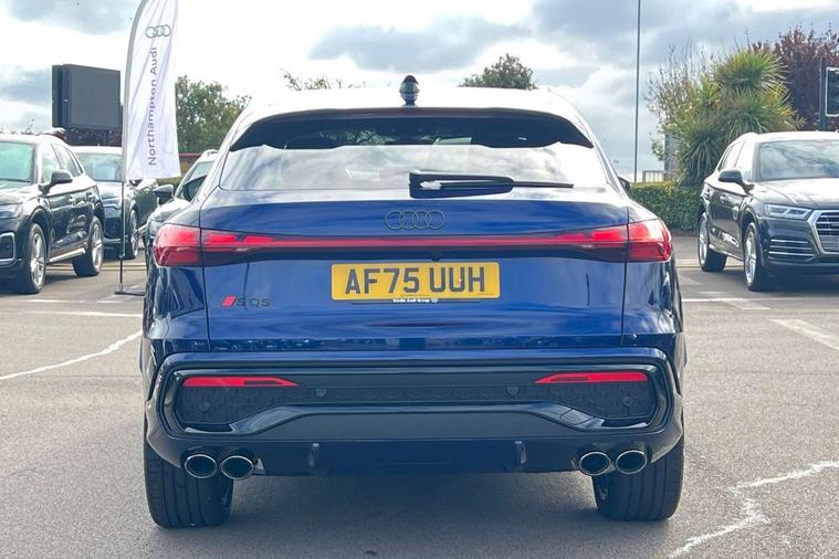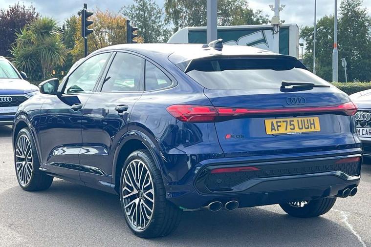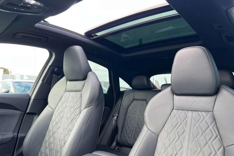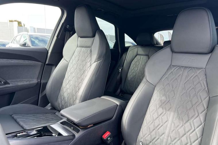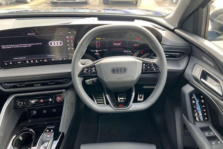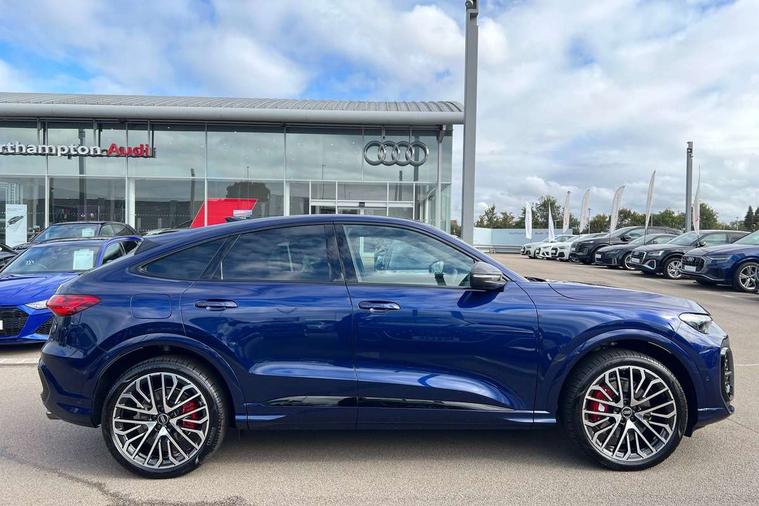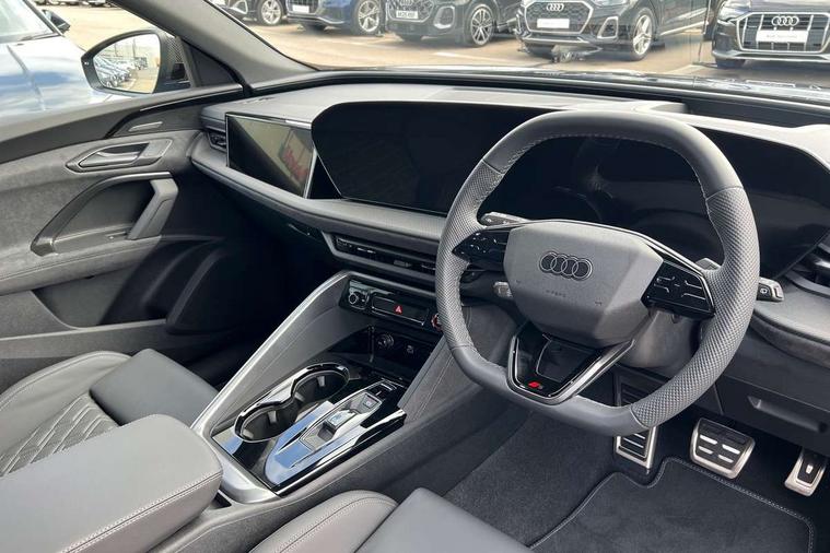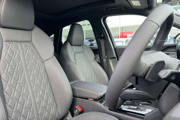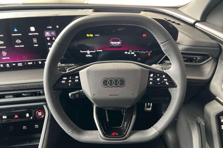Adaptive cruise assist plus with steering intervention, Advanced driver attention alert, Audi application store, Audi connect emergency call and service, Audi digital key, Audi drive select, Audi smartphone interface, Audi virtual cockpit plus with 11.9" OLED colour display, Camera based traffic sign recognition, Fatigue monitor, Front cross traffic intersection assist, Garage door opener, Lane change assistant with exit warning system, rear cross traffic alert and rear turn assist, Lane departure warning with emergency assist, MMI 10.9" front passenger touch display, MMI navigation plus with high resolution 14.5" OLED touchscreen colour display, Park assist plus, Parking system plus with 360 display, PAS, Reversing camera, Swerve assist and turn assist, Top view camera, Traffic sign based speed limiter, S adaptive air suspension, 2 USB-C ports in both the front and rear, DAB Digital radio, Smartphone compartment with wireless charging, Acoustic glass for front door windows, Active digital light signatures - Six additional combinations of active daytime running light signature, Auto dimming rear view mirror, Black door mirrors, Black roof rails, Coming/leaving home lighting function, Contrast bumpers in mythos black metallic paint finish, Digital OLED tail lights including communication light, Electrically adjustable heated and folding + automatically dimming exterior mirrors, Entry LED with red and white rhombus S logo projection, Exhaust tailpipes in dark chrome, Front and rear electric windows, Front door sill trims with aluminium inlays, illuminated with 'S' logo, Grill frame, inlay and front air inlets in matt anthracite chrome, Headlight cleaning system, Heated rear window, High beam assist, High gloss window surrounds, Logo projection light in exterior mirrors, Matrix LED headlights, Memory function for door mirrors, Privacy glass, Projection third brake light for rear window in LED, Radiator grille in phantom black, Rear and side windows with heat insulating glass, Rear honeycombe grille in matt black with inlay in matt anthracite chrome, Rear side wing doors, Rear wash/wipe, Red S rhombus badging with 'S' lettering on rear, S exterior styling, Towbar preparation, Windscreen with acoustic glazing, 3 rear head restraints, 3 seat bench in 2nd row, 3 spoke leather steering wheel with multi-function buttons with touch control, flattened on top and bottom, with S badging and contrast stitching, 40:20:40 split folding rear seat bench with centre armrest and cup holders, Comfort centre armrest front, Deluxe 3 zone electronic climate control, Electric steering wheel adjustment, Electrically adjustable front seats with memory function for driver's side, Front and rear floor mats, Front seat ventilation, Front sport seats with integrated head restraints, Headlining in black cloth, Heated front seats, Heated outer rear seats, Heated steering wheel, i-Size child seat mounting on the front passenger side and outer rear seats, i-Size and top tether on the outer rear seats, Interior trim in aluminium look, Luggage compartment lid, electrically opening and closing, Perforated fine nappa leather upholstery with diamond stitching incl ventilation and massage function for front seats, Pneumatically adjustable lumbar support with massage function for front seats, Single front passenger seat, Softwrap in Dinamica, Stainless steel pedals and footrest, Steering wheel grips in perforated leather and shift paddles, Ambient lighting package plus - Q5, Black styling package plus - Q5, Sound and Vision pack - Q5, Storage and luggage compartment pack - Q5, Vanadium pack - Q5, 3x3 point rear seatbelts, ABS, Acoustic vehicle alerting system, Convenience key with safelock, Driver and front passenger airbag with passenger airbag deactivation, Electric child safety locks, First aid kit with warning triangle and high visibility vests, Front emergency brake assist, Front side airbags with head airbag system and front interaction airbag, Hill hold assist, Occupant detection in rear seat area, Proactive passenger protection system for front, sides and rear, Red brake calipers, Side airbags in front and rear with head airbag system and front interaction airbag, Tyre pressure loss indicator, Anti theft alarm, Anti-theft wheel bolts, Remote control key with SAFELOCK and keyless go, Black dashboard with contrast stitching, Carbon micro twill structure inlay, Steel grey seat stitching, Upper and lower interior elements in dinamica microfiber, 21" 5 arm split black metallic, gloss turned finish Audi sport alloy wheels, Tyre repair kit,