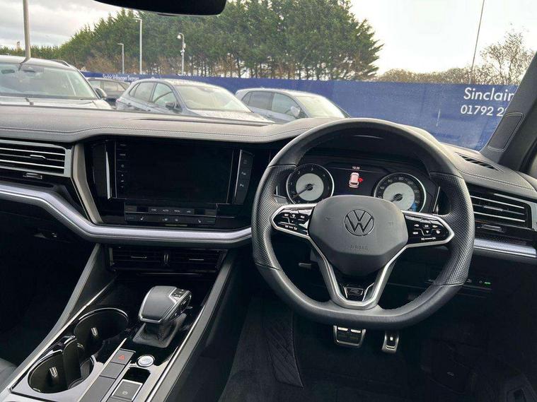 2D/3D map view, 9.2" colour touch screen, ACC - Adaptive cruise control with front assist, forward collision warning, distance monitoring, city emergency brake and speed limiter, Apple car play/Android Auto, Audible and visual fatigue detection system, Bluetooth hands free telephone connection, Car information display, Discover navigation pro infotainment system, Drive select with Damper control, Driver alert system, Driving Mode Selection with four preset modes - Eco, normal, sport or individual modes, Dynamic road sign display camera controlled system with visual warning for traffic and road signs, eCall emergency system, Instrument cluster, MirrorLink, Multifunction camera, Multifunction computer premium with 7" colour display, One touch indicators with repeat function, Park assist with rear view camera, Service interval indicator, Speed sensitive power steering, Start/stop system with regenerative braking, Tailgate power latch, Think blue trainer driver tips and journey analysis, Traffic sign recognition, Voice control system, Wireless Smartphone charger, 24 litre AdBlue tank, Torsen limited slip differential, 4 USB ports, DAB Digital radio, Dynamic navigation based on TMC+, Gesture control for infotainment system, Multi device interface (MDI) with illuminated USB-C connection, Music playback - MP3, WMA and AAC files, SD card slot, Simultaneous pairing of 2 compatible mobile devices, SMS functionality - read, compose and send SMS messages using touch-screen display, Title and cover art display, Volkswagen media control, Adaptive low beam for urban and motorway use, Auto dimming rear view mirror, Automatic coming/leaving home lighting function, Automatic headlights, Body colour door handles, Body colour door mirrors with integral indicators, Body coloured wheel arches, C signature gloss black front air intake, Chrome trimmed radiator grille and air intake, Chrome trimmed side windows, Chromed tailpipe on the left and right integrated in the bumper with trapezoid design, Dusk sensor, Dynamic headlight range control, Electrically power adjustable, heated, folding, auto dimming, front passenger exterior door mirror lowering function, Front and rear electric windows, Full LED headlights and LED tail lights, Galvanised body, Gloss black finish B pillar, Gloss black rear diffuser, Heat insulating darkened glass in side and rear windows, Heated windscreen washer jets, LED 3rd brake light, LED cornering headlights, LED daytime running lights, LED Indicators, LED rear fog light, LED rear number plate lights, Plastic scuff plates in door apertures, Poor weather light, Puddle lights, Rain sensor, Rear side wing doors, Rear wiper, Silver anodised roof rails, 12V socket in front and rear centre console and boot, 2 Coat hooks on B pillar, 2 way lumbar support for front seats and manual adjustable in front seat backrests, 3 rear head restraints, 3 seat bench in 2nd row, 3 spoke sport heated leather multi-function sports steering wheel with gear shift paddles - generation 2, 4 zone climate control, 40:20:40 split folding slide/recline rear seat, B pillar vents, Branded points of interest, Double sun visor for drivier and passenger with LED illuminated vanity mirrors, Electric luggage compartment cover, Folding rear centre armrest with 2 cupholders, Front + rear carpet mats, Front centre armrest with storage box, Front headrests, Gear shift indicator, Height/reach adjust steering wheel, Illuminated air conditioned glovebox, Isofix preparation for 2 rear child seats, Jack and tool kit, Leather trimmed gear knob with gloss black inlay/aluminum trim, Leatherette door trim, LED luggage compartment lighting, Load through provision, Luggage compartment with load lashing rings, Plastic loading edge protection, R Line badge, Rear seat remote release levers, Single front passenger seat, Soul black headlining, Stainless steel pedals, 2 way adjustable driver and front passenger safety optimised head restraints, 3 point front seatbelts with pre-tensioners, ABS, Active bonnet, Automatic post collision braking system, Curtain airbags, Driver/Front Passenger airbags, EBD + Brake Assist, EDL, Electronic parking brake with auto hold, ESC with ASR, Front seat side impact airbags, Hill descent control, Hill start assist, Passenger airbag deactivate switch, Seatbelt warning lamp and buzzer, Three 3 point rear seatbelts, Two tone horn, Volkswagen roadside assistance, Warning triangle and first aid kit, Alarm with interior monitoring in cab, backup horn and towing protection, Child security locks for front and rear doors, Electronic engine immobiliser, Remote central locking, High gloss black centre console, Silver wave design aluminium decorative inlays,