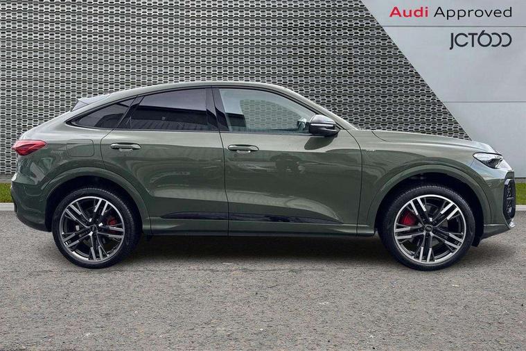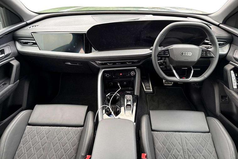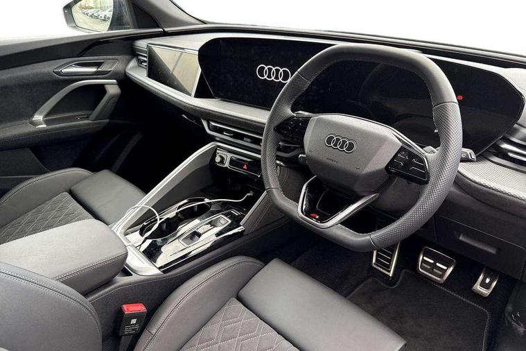 Adaptive cruise assist plus, Attention and drowsiness detection with driver observation, Audi application store, Audi connect emergency call and service, Audi digital key, Audi drive select, Audi smartphone interface, Audi virtual cockpit plus with 11.9" OLED colour display, Camera based traffic sign recognition, Front cross traffic intersection assist, Lane change assistant with exit warning system, rear cross traffic alert and rear turn assist, Lane departure warning with emergency assist, MMI 10.9" front passenger touch display, MMI navigation plus with high resolution 14.5" OLED touchscreen colour display, Park assist plus, PAS, Reversing camera, Swerve assist and front turn assist, Traffic sign based speed limiter, Compact e-tron charging system, Household plug type G for the e-tron charging system, Hybrid propulsion system, Industrial connector CEE 32A, 230V, long and straight for the e-tron charging system, Mode 3, Type 2 AC charging cable 22kW - capable of charging speeds up to 11kW for use at AC charging points including a home wallbox, Audi sound system impressive sound with 8 loudspeakers including centre speaker and subwoofer, 6-channel amplifier with a total output of 180 watts, DAB Digital radio, Smartphone compartment with wireless charging, Active digital light signatures - Six additional combinations of active daytime running light signature, All weather light, Auto dimming rear view mirror, Automatic dynamic headlight range control, Dynamic light scenarios of the coming home/leaving home function when stationary, Electrically adjustable heated and folding + automatically dimming exterior mirrors, Exhaust tailpipes in dark chrome, Front and rear electric windows, Front door sill trims with aluminium inlays, illuminated with 'S' logo, Full body paint finish, Grill frame, inlay and front air inlets in matt anthracite chrome, Headlight cleaning system, Heated rear window, High beam assist, High gloss window surrounds, LED daytime running light with 8 digital light signature, LED rear lights pro incl. dynamic rear indicators and illuminated light strip with animated coming and leaving home function, Logo projection light in exterior mirrors, Manoeuvring light, Matrix LED headlights, Memory function for door mirrors, Motorway light, Privacy glass, Projection third brake light for rear window in LED, Radiator grille in phantom black, Rear and side windows with heat insulating glass, Rear honeycombe grille in matt black with inlay in matt anthracite chrome, Rear side wing doors, Rear wash/wipe, S Line badge on the front wings, Static cornering light, Turning light, Windscreen with acoustic glazing, 3 rear head restraints, 3 seat bench in 2nd row, 3 spoke leather steering wheel with multi-function buttons with touch control, flattened on top and bottom, with S badging and contrast stitching, 4 way electric lumbar support for driver and front passenger, Auxiliary air conditioning, Black carpets, Comfort centre armrest front, Deluxe 3 zone electronic climate control, Dinamica microfiber/leather upholstery with diamond stitching, Electrically adjustable front seats with memory function for driver's side, Front and rear floor mats, Front sport seats with integrated head restraints, Headlining in black cloth, Heated front seats, i-Size child seat mounting on the front passenger side and outer rear seats, i-Size and top tether on the outer rear seats, Increased charging capacity for USB ports 2X100 Watts in rear, 2X60 Watts in front, Interior trim in aluminium look, Luggage compartment lid, electrically opening and closing, Manual steering column adjustment, S embossed logo on front sport seats, Single front passenger seat, Softwrap in black, Softwrap in Dinamica, Stainless steel pedals and footrest, Steering wheel grips in perforated leather and shift paddles, Ambient lighting package plus - Q5, Black styling package plus - Q5, Rear seat bench plus pack - Q5, Storage and luggage compartment pack with luggage net - Q5, 3x3 point rear seatbelts, ABS, Acoustic vehicle alerting system, Convenience key with safelock, Driver and front passenger airbag with passenger airbag deactivation, Electric child safety locks, First aid kit with warning triangle and high visibility vests, Front emergency brake assist, Hill hold assist, Proactive passenger protection system for front, sides and rear, Rear seat occupant reminder, Red brake calipers, Side airbags in front and rear with head airbag system and front interaction airbag, Tyre pressure loss indicator, Anti-theft wheel bolts, Thatcham approved category 1 anti theft alarm, Black dashboard with contrast stitching, Upper and lower interior elements in dinamica microfiber, Tyre repair kit,