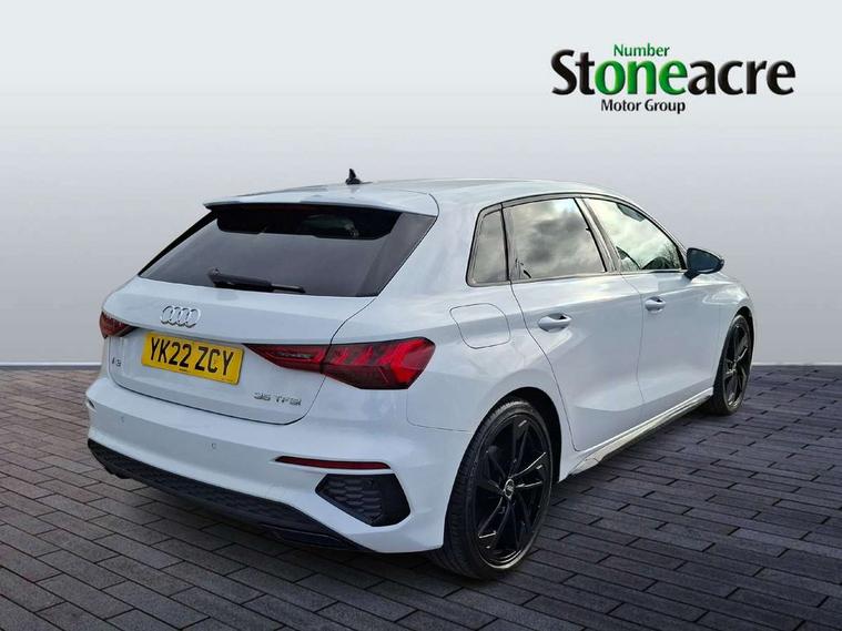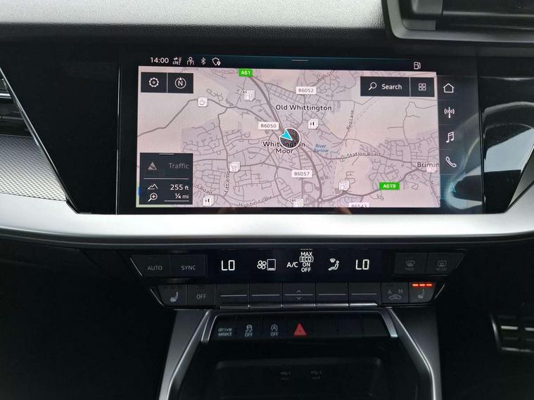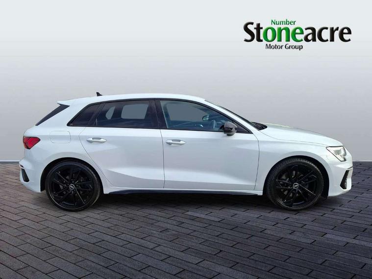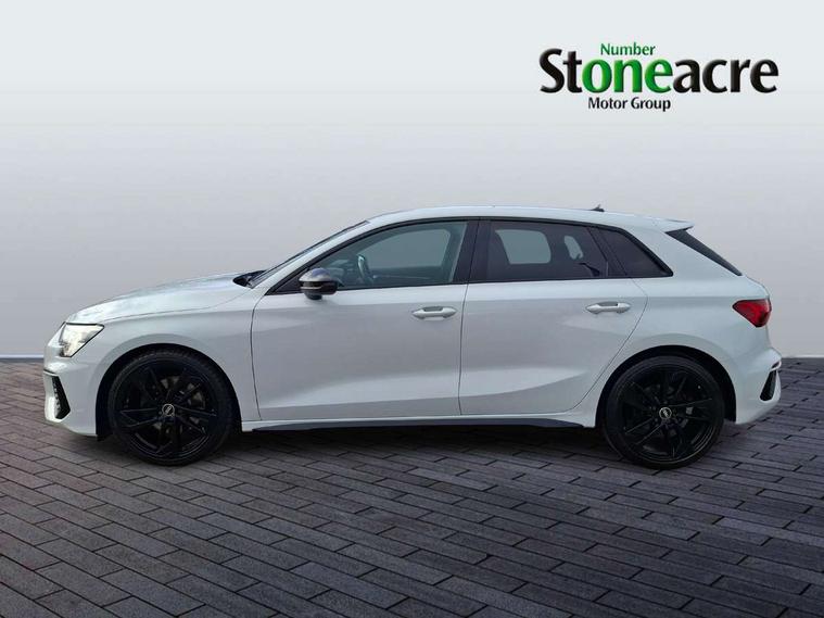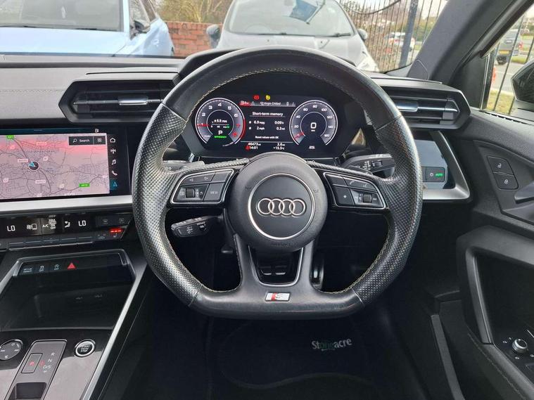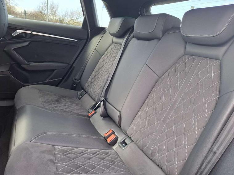 Audi connect emergency call and service, Audi drive select (Auto, Comfort, Dynamic, Efficiency and Individual), Audi smartphone interface, Audi virtual cockpit plus - 12.3" full HD resolution dynamic digital instrument cluster, Automatic start/stop system with recuperation, Bluetooth interface, Collision avoidance assistant, Electromechanical power speed sensitive steering, Lane departure warning system, MMI Navigation Plus with high resolution 10.1" colour touch screen display, Service indicator, Trip computer, Voice control system with natural language interaction, Sports suspension, 2xUSB-C connection with data and charging functions, 6 passive loudspeakers, DAB Digital radio, 3rd brake light, Acoustic glass windscreen, Audi matrix LED headlights with LED rear lights + dynamic front and rear indicators, Auto dimming frameless rear view mirror, Body colour front spoiler blade, Electrically adj heated/folding + automatically dimming exterior mirrors + automatic kerb side function for passenger side exterior mirror, Front electric windows, Headlight washers, Illuminated aluminium inserts front door sills with S logo, Integrated LED indicators in door mirrors, LED daytime running lights, Light and rain sensors, Privacy glass - dark tinted rear window, rear door and side windows, Rear diffuser in grained matt black, Rear electric windows, Rear side air outlets in grained matt black, Rear wiper, S roof spoiler, 12V socket and storage compartment in front centre console, 4 way electrically adjustable lumbar support for driver and front passenger, 40/20/40 split folding rear seat bench with cupholder, Black cloth headlining, Dual zone electronic climate control, Electrically adjustable front seats for driver's side, Front and rear centre armrest in leather, Front and rear headrests, Front/rear floor mats, Heated front seats, Height and reach adjustable steering wheel, Interior lighting - glove compartment light and right hand side, Luggage compartment floor covering, Seat side bolsters, Stainless steel pedals and front footrest in black, Aluminium interior elements pack - A3 Sportback, Black styling pack - A3 Sportback, Dinamica microfibre/mono.pur 550 artificial leather pack - A3 Sportback, Extended ambient lighting pack - A3 Sportback, LED interior lighting pack - A3 Sportback Edition 1/Vorsprung, 3x3 point rear seat belts, Driver and front passenger airbag with passenger airbag deactivation, Electronic Stabilisation Control (ESC) including ABS, ASR and EDL, First aid kit with warning triangle and 2 safety vests, Front side airbags with head airbags and interaction airbag, Hill hold assist, Pre-sense front with pedestrian and cyclist detection, Seatbelt monitoring, Tyre pressure loss indicator, Anti theft alarm, Anti-theft wheel bolts, Electronically operated child lock, Immobiliser, Remote control central locking, Accent surfaces in the dashboard and centre console in platinum grey silk effect paint finish, Dark spectrum aluminium inlays, 19" 5 arm trapezoid design alloy wheels in titanium matt grey with diamond cut finish,