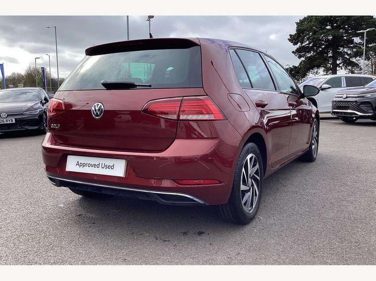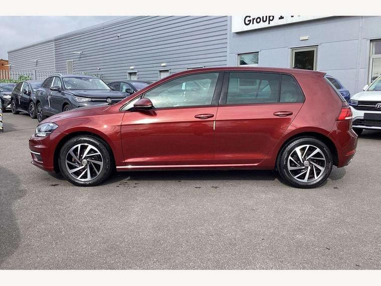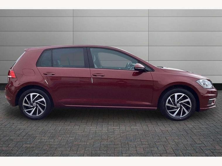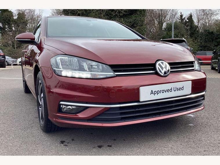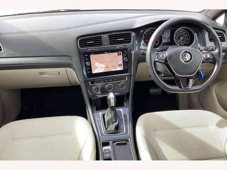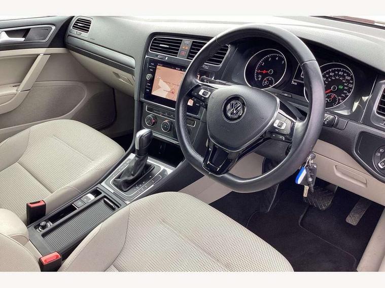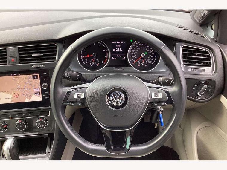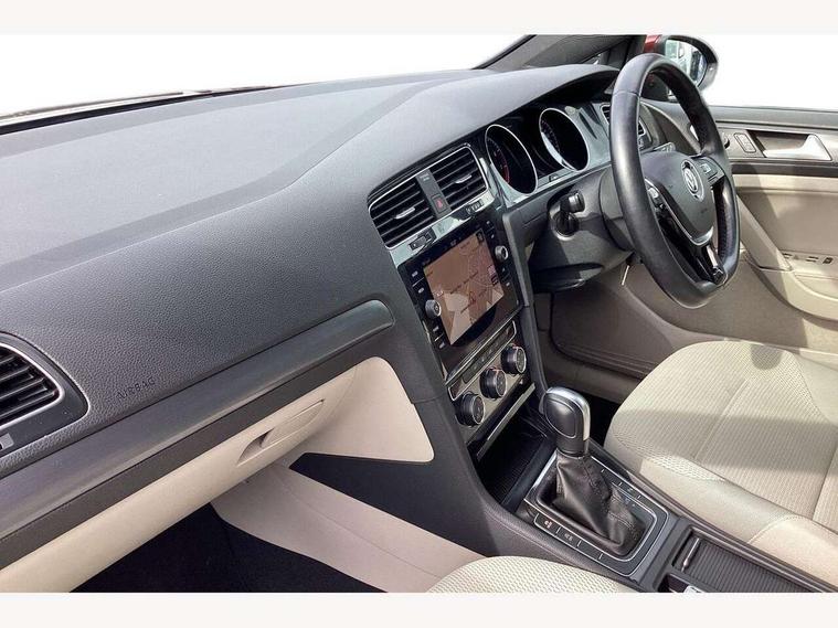 'Lights On' Reminder warning buzzer, ACC - Adaptive cruise control with front assist, forward collision warning, distance monitoring, city emergency brake and speed limiter, Bluetooth telephone and audio connection for compatible devices, Brake pad wear indicator warning light, Driver alert system, Driving Mode Selection with four preset modes - Eco, normal, sport or individual modes, Instrument cluster in white, Multifunction computer with visual gear change recommendation for fuel consumption, Power assisted speed sensitive electro-mechanical steering, Push tank flap, Speed limit display, Speedo, rev counter, electronic odometer, trip, service interval display, exterior temperature and fuel gauge, Stop/start system, Think blue trainer driver tips and journey analysis, Warning buzzer and light for front seatbelts unfastened, We Connect Go Dongle, Battery regeneration during braking, XDS electronic differential lock, Composition media system, DAB Digital radio receiver, Driver Personalisation profile selection, MP3/WMA compatability, Multi device interface (MDI) with USB connection, Personalisation 1.1 profile for media, Premium USB cable in choice of either Apple or Android smartphone compatibility, SMS Functionality, Title and cover art display, 4 X 20W output, USB connection and socket, USB and SD card connectivity, Auto dimming rear view mirror, Black front air intake and radiator grille with chrome insert, Black rear diffuser, Body colour bumpers, Body colour door handles, Body colour door mirrors with integrated indicators, Dusk sensor + automatic driving lights, Electric front windows, Electric rear windows, Electrically adjustable and heated door mirrors, Fully galvanised body, Heated rear windscreen, Hidden exhaust pipe, High level 3rd brake light incorporating LED Technology, LED front fog lights with static cornering light function, Range adjustable headlights via infotainment system with LED daytime running lights, Rear fog lamp, Rear number plate lights incorporating LED technology, Rear tinted glass 65% light absorbing from B pillar backwards, Rear window aerial, Rear window wash/wipe with intermittent wipe, Reflectors in all doors, Remote electrically foldable door mirrors, door mirror puddle lights and reverse activated kerb-view adjustment on passengers door mirror, Tailgate with integrated rear roof spoiler, Windscreen wipers/ intermittent wipe + 4 position delay, 12V socket in luggage compartment, 3 rear headrests, 4 load lashing points in luggage compartment, 60/40 split folding rear seat backrest, Auto fold down lever in rear seat backrest, Bag hook in luggage compartment x 2, Black decorative sleeve on gear handles, Cooled glovebox, Cover for storage compartment in centre, Cupholder cover, Dust/pollen filter, Front and rear reading lights X 2, Front centre armrest with storage compartment and two rear air vents, Front seat back storage pockets, Grab handles front x 2, rear x 2 with integrated coat hooks, Height and reach adjustable steering wheel, Illuminated vanity mirrors, Instrument lighting white adjustable panel illumination, Interior light delay, Isofix preparation for 2 rear child seats, Load through provision with rear centre armrest and cupholders x2, Luggage compartment lighting, Overhead storage box, Passenger underseat drawer, Pearl grey headlining, Storage box in luggage compartment, Storage compartment in roof console with cover, Storage compartments in centre console, Storage compartments in front doors, Storage compartments in rear doors, Stowable luggage compartment cover, Sun visors, Variable boot floor, height adjustable and removable, Convenience Pack - Golf, Light and Sight pack - Golf, Mirror pack - Golf, 3 rear three point seatbelts, Airbags - Driver's and front passenger's, curtain airbag, Driver's knee, front side impact and passenger's airbag deactivation switch, Anti-lock Braking System (ABS) with Hydraulic Brake Assist (HBA), Automatic post collision braking system, Child locks on rear doors, Driver/Passenger optimised head restraints, Electronic parking brake with auto hold, Electronic stability control (ESC) including Electronic differential lock (EDL) and ASR (Traction control) with deactivation via infotainment system, Front ventilated disc brakes and rear disc brakes, Pre crash preventive occupant protection, Three point height adjustable front seatbelts with tensioners, Tyre pressure loss indicator, Alarm with interior protection and deactivation via infotainment system, Electronic engine immobiliser, Brushed dark silver decorative inserts in dash and door panels, Chrome plated air vent surround, Chrome-plated light switch surround, Polar night black decorative inserts in centre console, Steel space saver spare wheel,