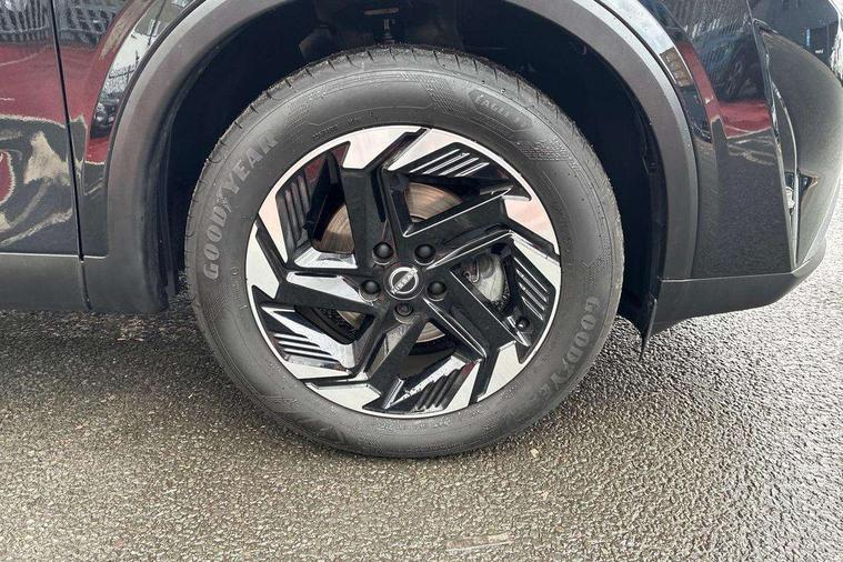 2 front USB-C ports, 2 rear USB-C ports, 360 degree Intelligent around view monitor with moving object detection, Blind spot intervention, Blind spot warning, Drive assist, Drive assist custom mode, Drive modes (sport, normal, eco), Driver drowsiness and attention warning, Electric speed sensitive power steering, Emergency and breakdown call, Emergency lane keep assist, Emergency Stop Signal (ESS), Engine start/stop button, Event data recorder, Front and rear parking sensors, Full Digital 12.3" TFT Digital Combimeter, Google virtual personal assistance, Idle stop/start system, In-car WIFI hotspot, Intelligent Cruise control (ICC), Intelligent forward collision warning, Intelligent speed assist, Lane departure warning system, Nissan connect 12.3 inch touchscreen infotainment system, Nissan connect navigation with google maps, Nissan connect services 2.0 (Google Automotive System), Outside temperature sensor, Rear cross traffic alert, Reversing detection, Wireless Apple CarPlay/Android Auto, Wireless charging pad, Limited slip differential, 6 speakers, AM/FM audio system with DAB, Bluetooth audio streaming, Auto rear wiper when reversing, Body colour mirror caps, Body coloured door handles, Bodyside mouldings, Chrome side window finisher, Electric auto folding door mirrors, Electrically adjustable and heated door mirrors with LED turn indicator, Follow me home headlights, High beam assist, Intelligent auto headlights, LED 3rd brake light, LED daytime running lights, LED Headlights, LED rear lights, One touch front and rear electric windows with remote opening and closing, One touch passenger window, Partially body coloured bumpers, Rear privacy glass, Rear roof spoiler, Rear side wing doors, Rear styling plate, Shark fin antenna, Splash free rain sensing wipers, Super UV and infrared cut glass, Three blink turn signal, 3 bench rear seats in 2nd row, 3 rear headrests, 60/40 split folding rear seat bench, Chrome interior door handles, Cloth upholstery, Dark headlining, Driver seat back pocket, Dual zone automatic climate control with pollen filter, Front door with bottle holders, Height adjustable front headrests, Leather shift knob, Luggage board system, Luggage space lighting, Multifunction steering wheel, Passenger seat back pocket, Rear door bottle holders, RGB ambient light (Full area coverage), Single front passenger seat, Smooth leather steering wheel, Tilt/telescopic adjustable steering wheel, Two rear isofix child seat anchorage points with top tether, 3x3 point rear seatbelt pretensioners + load limiters, Autonomous emergency braking, Child locks on rear doors, Curtain and front side, far side airbags, Driver and passenger airbags, Driver, passenger and 2nd row rear seat belt reminder, Electric handbrake with auto hold function, Front seatbelt pretensioners + load limiters, Height adjustable front seatbelts, Hill start assist, intelligent front emergency braking, Rear automatic braking, Tyre pressure monitoring system, Vehicle dynamic control, Engine immobiliser, Intelligent key with walk away lock and approach unlock functions, Remote central door locking with deadlocking, Thatcham alarm, 18" Diamond cut alloy wheels, Tyre puncture repair kit,