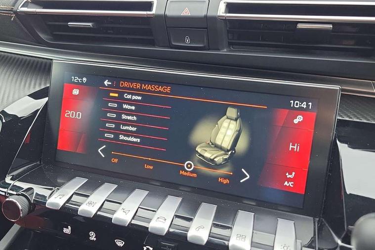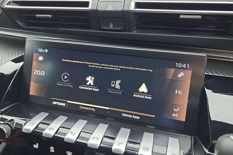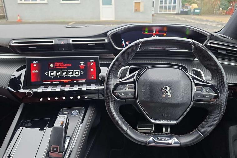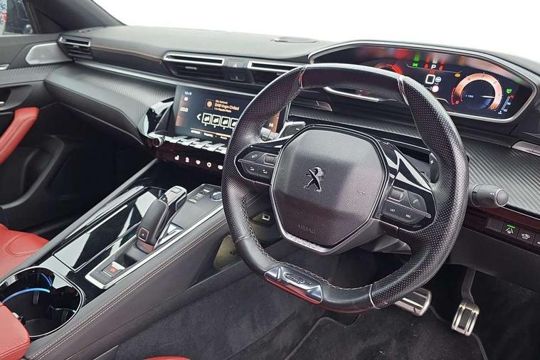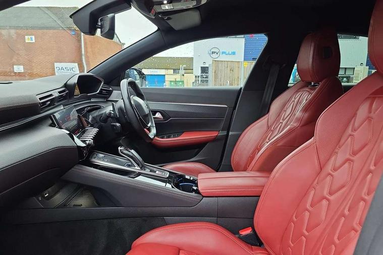 10" touch screen, 3D connected navigation + Peugeot connect SOS and assistance, Active blind spot assist, Advanced Driver Attention Alert, Apple car play/Android Auto, Bluetooth connectivity with voice recognition, Cockpit display 12.3" widescreen digital instrument cluster, Distance control assist, Electric tailgate release, EPAS, Exterior temperature gauge, Front and rear parking sensors, Lane keep assist, MirrorLink, Multi function trip computer, Peugeot i-cockpit with amplify configurable interior ambiences, blue ambient lighting, Smartphone wireless charging plate, Speed limit recognition, Active suspension system, 2 USB sockets in rear, 2x USB sockets in front, DAB Digital radio, Focal premium HiFi sound system, Radio/CD with MP3 compatability, Auto dimming rear view mirror, Automatic activation of hazard warning lights, Automatic headlights + automatic windscreen wipers, Body colour door handles, Body coloured bumpers, Chrome trimmed radiator grille, Dark tinted rear side windows + tailgate window, Door mirror memory, Electric adjustable heated door mirrors, Electric folding door mirrors with blind spot detection and electrochrome auto dimming function, Electric front/rear windows/one touch operation, Electrochrome rear view mirror, Follow me home headlights, Gloss black side window surrounds, Headlamp levelling, Heated rear windscreen, LED daytime running lights, LED headlights with static cornering light, LED rear lights, Nera black door mirrors, Peugeot smart beam assist, Twin chrome exhaust tailpipes, 1/3 to 2/3 split folding rear seats, 2 rear cupholders, Aluminium pedals and footrest, Black carpets, Driver's electric lumbar adjustment, Dual zone automatic air conditioning, Electric lumbar adjustment on passenger's seat, Electrically adjustable front seats, Front centre armrest, Front centre console cup holders, Front door pockets, Front seat back map pockets, Heated front seats, Height adjustable front headrests, Height adjustable rear headrests, Illuminated cup holders, Illuminated glovebox, Illuminated storage compartment, Illuminated vanity mirror, ISOFIX on front passenger and rear outer seats, LED footwell lights, LED luggage compartment lighting, LED rear reading lights, Mistral full grain perforated leather steering wheel with aikinite stitch, Rake/reach adjustable steering wheel, Rear centre armrest/ski flap, Rear coat hooks, Rear seat ventilation, Roof lining - Mistral black, Satin steel chrome full grain leather gear lever, Stainless Steel Scuff Plates, Drive assist plus pack - 508, 3 point seatbelts on all seats, ABS/EBFD/EBA, Active bonnet, Driver and passenger side airbags, Driver/Front Passenger airbags, Electrically operated child locks on rear doors, Electronic parking brake, ESP with ASR, Front and rear curtain airbags, Front passenger airbag deactivation, Hill start assist, Road sign information display, Seatbelt pretensioners and force limiters, Seatbelt warning, Tyre pressure sensor, Warning triangle, Auto door lock when driving, Locking wheel nuts, Perimetric and volumetric anti theft alarm, Peugeot Open and Go System, Remote central locking, Carbon effect interior trim, 19" Augusta diamond cut two tone alloy wheels, Space saver spare wheel,