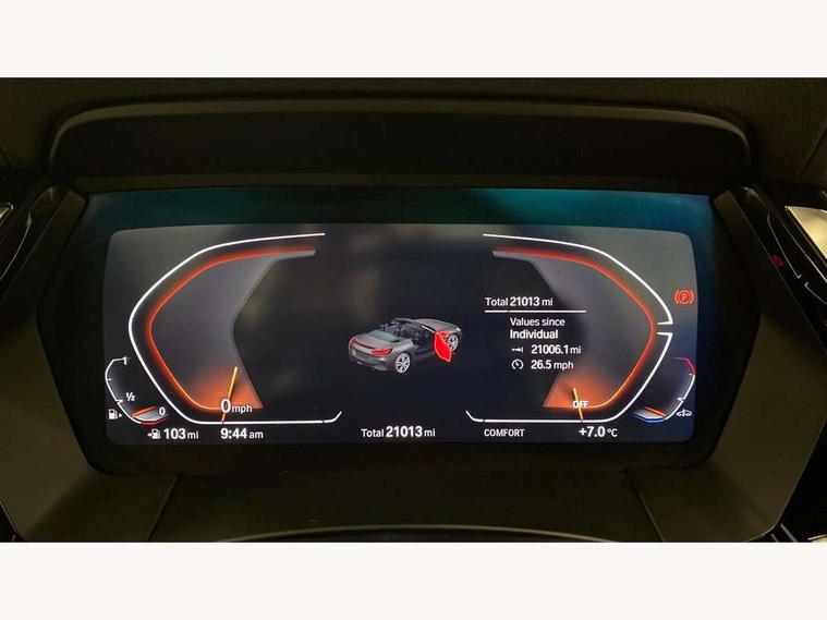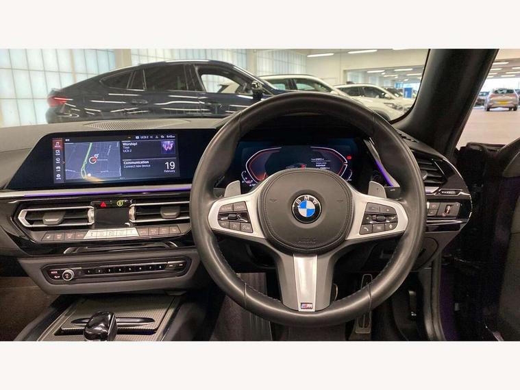 Active guard plus incl speed limit assist, lane departure warning with steering impulse and front collision warning with brake intervention, BMW ConnectedDrive online services, BMW Live Cockpit Professional with nav function/12.3" high resolution instrument +10.25" control display/Intelligent Voice Assist/2 USB/WiFi interface, BMW Teleservices, Condition based service, Electric power steering, Fuel gauge, iDrive touch controller with turn and press function, Instrument cluster, Language version English, Oil sensor for level and grade, warning by check control system, Oil temperature gauge, Optimum shift indicator, Pull away assistant, Run flat indicator, Speed limiter, Speedometer with mph readout, Tachometer, Variable sport steering, Double joint spring, Double VANOS, Drive performance control with ECO PRO comfort + sport mode, Eight speed steptronic sport transmission, with gearshift paddles, Electronic differential lock, Fuel tank breather system, High precision injection, M sport suspension, 2x USB Type C ports in front centre console for charging and data transfer, 2x USB Type C ports in rear centre console for charging, DAB tuner, USB connection, Auto dimming driver's door mirror, Automatic headlight beam throw control with load dependent regulating reaction, dynamic compensation of braking dive and acceleration squat, Door sill finishers with M designation, Door sill strips, Dynamic braking lights comprising activated hazard warning flashers, Electric folding door mirrors, Electric heated rear window, Exhaust tailpipe - split left and right, Exterior mirror housing finished in body colour, Fingertip control / anti-trap function on electric window, Follow me home headlight function, Front and rear bumper system with replaceable deformation elements, Green tinted heat protection glazing, Heated windscreen washer jets, High gloss black exterior trim, Interior rear view electrochromatic mirror with automatic anti dazzle function, Kidney grille in mesh design, LED 3rd brake light, LED daytime driving lights, LED Indicators, LED rear lights, Lightweight engineering, M aerodynamic body kit, M Sport exterior styling, Matt black window recess finisher, Model logo, Rain sensor, Rear boot, Reversing light, Tailgate release handle, Two stage brake force display, Visible VIN plate, Welcome lighting, Wind deflector, Windscreen wipers with adjustable interval, 12V power point in luggage area, 12V power socket in front storage compartment, 2 cup holders in front centre console, Activation of interior lighting, Additional storage compartment - 4 lashing eyes, strap and storage net, Ambient lighting, Battery in luggage compartment, BMW ID, Child seat ISOFIX attachments for passenger seat, Driver and front passenger heated seats, Front and rear armrests integrated in door trim + centre console includes storage compartment and rear centre armrest includes 2 cupholders, Front and rear velour floor mats, Front headrests, Height adjustable mechanically and infinitely variable steering column, Illuminated glovebox, Luggage compartment light, M sport leather steering wheel, M Sport seats for driver and passenger, Microfilter and active carbon filter, Multifunction steering wheel, Single front passenger seat, Sunvisors with vanity mirrors and ticket pocket, Through load system, Two zone automatic air conditioning, Vernasca leather upholstery, Connected package professional - Z4, 3 point front seat belts, Airbags - Front driver and passenger, front and side impact protection, Anti lock braking system (ABS) with brake assist, Automatic Stability Control (ASC), BMW emergency call, Brake energy regeneration, Braking readiness, Cornering brake control (CBC), Crash sensor activating central locking release, hazard warning lights, fuel cut off, interior lighting, safety battery terminal clamp and airbags, Curtain airbags, Deactivation of fuel pump in the event of a crash, Dry braking, Dynamic brake control, Dynamic stability control + (DSC+), Dynamic Traction Control - DTC, Electromechanical parking brake with automatic drive away release and auto hold function, Front and rear brake discs with interior ventilation, Head airbags, Plastic fuel tank, Pyrotechnic seat belt tensioners, Roll over protection, Seat belt force limiter, Seat belt stopper, Seat occupancy protection, Side airbags for driver and passenger, Two tone horn, Tyre pressure monitoring with three level warning strategy, Warning triangle, Centre lock switch, Closing system with central locking, Electronic vehicle immobiliser, Start/stop button with Comfort Go keyless engine start and auto Start/stop deactivation button, Thatcham cat 1 remote alarm, Sensatec dashboard, 18" Double spoke alloy wheels in bicolour ferric grey - style 798M, Reduced rolling resistance tyres, Tool kit, Tyre repair kit,