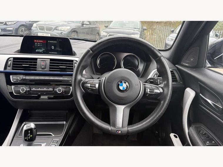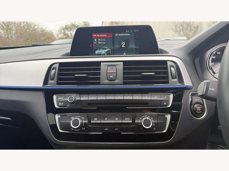 Automatic start/stop system, BMW Online services, BMW remote services, BMW Teleservices, Brake force display, Brake pad wear indicator in front and rear, Check Control warning system for monitoring of lights and door/luggage compartment open warning, Eco pro mode, Instrument cluster with speedometer with miles per hour read out, tachometer and fuel gauge, Lights on warning by audio warning signal when ignition is switched off, Oil temperature display via on board computer in instrument cluster, On board computer - average speed+fuel consumption, service interval, clock/date, odometer/trip meter, outside temperature display and ice warning, On board diagnostics, Optimum shift indicator, Personal Profile, Real time traffic information, Servotronic PAS, Speed limiter, Battery age recognition function, Drive Performance Control, BMW professional radio with CD player, DAB Digital radio, Harman/Kardon loudspeaker system, Body colour door handles, Body colour front and rear bumpers, Body colour mirror caps, Body colour roof mouldings, Clear lenses direction indicator lights, Dark chrome exhaust tailpipe, Darkened rear lights with LED light bars, Daytime driving lights, Direction indicator side lights in exterior mirrors, Dynamic brake lights, Electrically adjustable heated door mirrors and washer jets, Follow me home headlights, Front and rear bumper system with replaceable deformation elements, Front and rear electric windows with open and close fingertip control, anti trap facility and comfort closing, Green tinted heat protection glazing, Headlight beam throw control, Heated windscreen washer jets, High gloss black kidney grille with black slats, High level third brake light, Lightweight engineering, M aerodynamic bodystyling, Nearside reverse light in rear light cluster, Offside rear fog lights, Rain sensor including auto headlights activation, Rear window aerial, Rear window wiper, Shark fin antenna, Sun protection glass, Visible VIN plate, Welcome lighting, 12V power socket in centre console, 12V power socket in passenger footwell, 60/40 split folding rear seat, Ambient lighting - switchable BMW classic orange/ cold white LED, Anthracite headlining, Anthracite Velour front and rear floor mats, Conditioned based service, Door sill finishers with illuminated M designation, Four grab handles integrated in roof lining, Front and rear side armrest integrated into door trim, Front folding sliding armrest with storage compartment, Front head restraints, Front sports seats with electric side bolster adjustment, Front storage compartment in centre console and in door trim, Front/rear courtesy lights with soft on/off dimming, Glove box handle with chrome surround, Glovebox, Interior light in front centre interior mirrors and rear centre auto interior light activation when door is opened when ignition switched off, Isofix child seat for two outer rear seats, Leather gear knob and handbrake grip, Luggage compartment access via BMW roundel, Luggage compartment lighting, M sports multi function leather steering wheel, Manually adjustable steering column, Multi-function controls for steering wheel, Rear folding head restraints, Sunvisors with vanity mirrors and ticket pocket, Two cupholders with sliding cover and inlay mat, Two sills lashing eyes in the luggage compartment, 3 point seatbelts on all seats, front pyrotechnic belt tensioners, stopper and belt force limiters, rear coded belt buckles, Active differential brake (ADB), electronic differential lock in DSC-OFF mode, Airbags - Front driver and passenger, front and rear head, front side, curtain head protection, Anti lock braking system (ABS) with brake assist, Automatic Stability Control (ASC), Battery safety cut-off, BMW emergency call, Brake drying, Brake energy regeneration, Braking readiness, Cornering brake control (CBC), Crash sensor activating central locking release, hazard warning lights, Driver and front passenger seat belt security check, DSC+, Dynamic brake control, Dynamic Traction Control - DTC, Front passenger manual airbag deactivation, Front ventilated brake disc, Hill start assist, M Sport braking system, Rear brake discs, Rear child proof door locks, Side impact protection, Twin horns, Tyre pressure monitoring system, Warning triangle and first aid kit, Automatic drive away locking facility, Central locking switch for all doors, fuel filler cap and luggage compartment, Locking wheel bolts, Remote central locking with two Integrate key, one button for opening and closing all lock, open and close window, button for open luggage compartment, Remote control integrated key with blue inset, Start/stop button with comfort go keyless engine start and auto start stop deactivation button, Thatcham Cat.1 alarm and immobiliser, Reduced rolling resistance tyres, Run flat tyres,