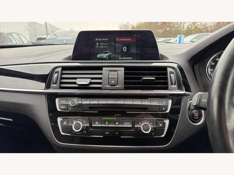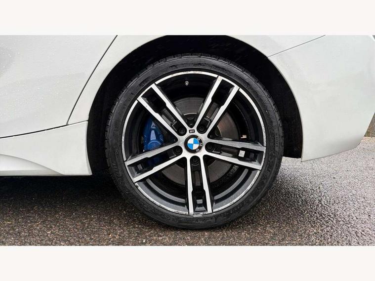 Automatic start/stop system, BMW Online services, BMW remote services, BMW Teleservices, Brake force display, Brake pad wear indicator in front and rear, Check Control warning system for monitoring of lights and door/luggage compartment open warning, Cruise control with brake assist, Eco pro mode, Instrument cluster with speedometer with miles per hour read out, tachometer and fuel gauge, Lights on warning by audio warning signal when ignition is switched off, Oil temperature display via on board computer in instrument cluster, On board computer - average speed+fuel consumption, service interval, clock/date, odometer/trip meter, outside temperature display and ice warning, On board diagnostics, Optimum shift indicator, Personal Profile, Real time traffic information, Servotronic PAS, Speed limiter, Battery age recognition function, Drive Performance Control, BMW professional radio with CD player, DAB Digital radio, Harman/Kardon loudspeaker system, Body colour door handles, Body colour front and rear bumpers, Body colour mirror caps, Body colour roof mouldings, Clear lenses direction indicator lights, Dark chrome exhaust tailpipe, Darkened rear lights with LED light bars, Daytime driving lights, Direction indicator side lights in exterior mirrors, Dynamic brake lights, Electrically adjustable heated door mirrors and washer jets, Follow me home headlights, Front and rear bumper system with replaceable deformation elements, Front and rear electric windows with open and close fingertip control, anti trap facility and comfort closing, Green tinted heat protection glazing, Headlight beam throw control, Heated windscreen washer jets, High gloss black kidney grille with black slats, High level third brake light, Lightweight engineering, M aerodynamic bodystyling, Nearside reverse light in rear light cluster, Offside rear fog lights, Rain sensor including auto headlights activation, Rear window aerial, Rear window wiper, Shark fin antenna, Sun protection glass, Visible VIN plate, Welcome lighting, 12V power socket in centre console, 12V power socket in passenger footwell, 60/40 split folding rear seat, Ambient lighting - switchable BMW classic orange/ cold white LED, Anthracite headlining, Anthracite Velour front and rear floor mats, Conditioned based service, Door sill finishers with illuminated M designation, Four grab handles integrated in roof lining, Front and rear side armrest integrated into door trim, Front folding sliding armrest with storage compartment, Front head restraints, Front sports seats with electric side bolster adjustment, Front storage compartment in centre console and in door trim, Front/rear courtesy lights with soft on/off dimming, Gearshift lever with M designation, Glove box handle with chrome surround, Glovebox, Interior light in front centre interior mirrors and rear centre auto interior light activation when door is opened when ignition switched off, Isofix child seat for two outer rear seats, Leather gear knob and handbrake grip, Luggage compartment access via BMW roundel, Luggage compartment lighting, M sports multi function leather steering wheel, Manually adjustable steering column, Multi-function controls for steering wheel, Rear folding head restraints, Sunvisors with vanity mirrors and ticket pocket, Two cupholders with sliding cover and inlay mat, Two sills lashing eyes in the luggage compartment, 3 point seatbelts on all seats, front pyrotechnic belt tensioners, stopper and belt force limiters, rear coded belt buckles, Active differential brake (ADB), electronic differential lock in DSC-OFF mode, Airbags - Front driver and passenger, front and rear head, front side, curtain head protection, Anti lock braking system (ABS) with brake assist, Automatic Stability Control (ASC), Battery safety cut-off, BMW emergency call, Brake drying, Brake energy regeneration, Braking readiness, Cornering brake control (CBC), Crash sensor activating central locking release, hazard warning lights, Driver and front passenger seat belt security check, DSC+, Dynamic brake control, Dynamic Traction Control - DTC, Front passenger manual airbag deactivation, Front ventilated brake disc, Hill start assist, M Sport braking system, Rear brake discs, Rear child proof door locks, Side impact protection, Twin horns, Tyre pressure monitoring system, Warning triangle and first aid kit, Automatic drive away locking facility, Central locking switch for all doors, fuel filler cap and luggage compartment, Locking wheel bolts, Remote central locking with two Integrate key, one button for opening and closing all lock, open and close window, button for open luggage compartment, Remote control integrated key with blue inset, Start/stop button with comfort go keyless engine start and auto start stop deactivation button, Thatcham Cat.1 alarm and immobiliser, Reduced rolling resistance tyres, Run flat tyres,