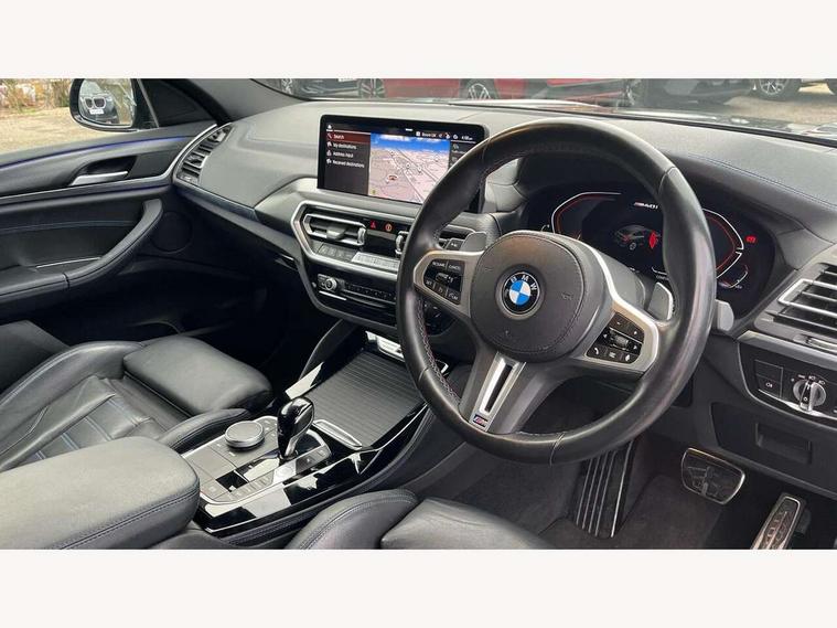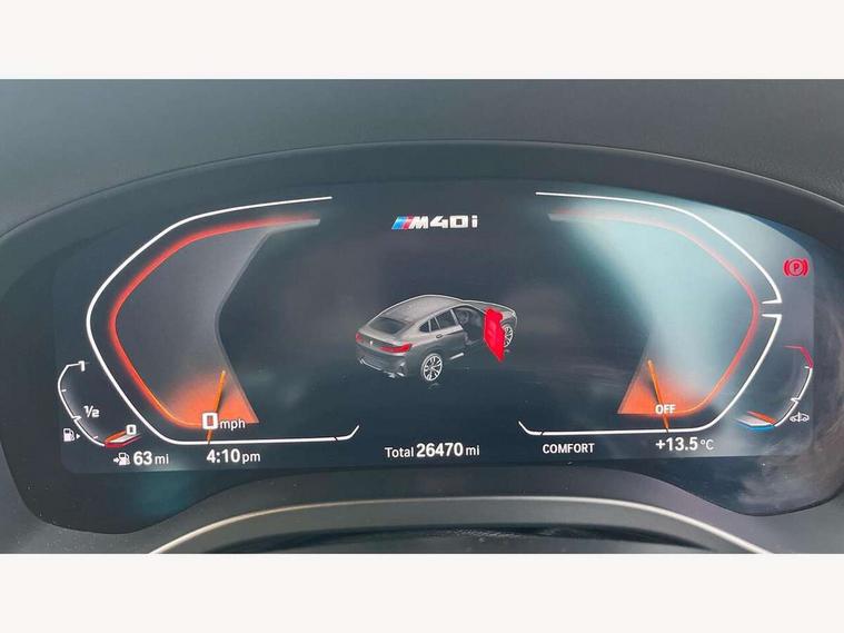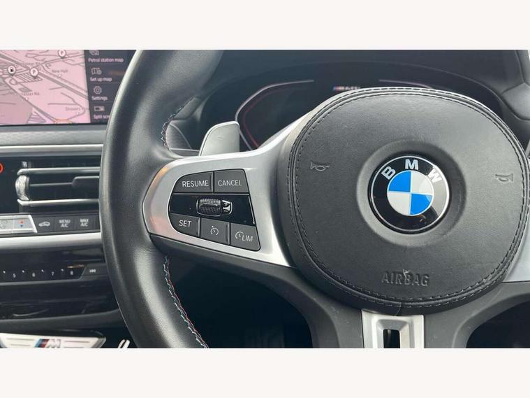 Active Guard, Attentiveness assist, Auto start-stop, BMW ConnectedDrive online services, BMW Live Cockpit Professional with 12.3" instrument display with Intelligent Voice Assistant, BMW Teleservices, Brake pad wear indicator in front and rear, Check Control warning system for monitoring of lights and door/luggage compartment open warning, Condition based service - BMW service history, electronic service booklet, integrated owner's handbook, Driving experience switch, Electric bootlid, iDrive Controller with 8 favourite buttons, Instrument cluster with speedometer with mph readout, tachometer, fuel gauge and oil temperature gauge, Language version English, Lights on warning by audio warning signal when ignition is switched off, Oil sensor for level and grade, warning by check control system, On board computer - average speed+fuel consumption, service interval, clock/date, odometer/trip meter, outside temperature display and ice warning, Optimum shift indicator, Personal Profile - automatic lock when driving away selectable, Run flat indicator, Servotronic system, Variable sports power steering, Double joint spring strut front axle, Double VANOS, Drive performance control - ECO PRO, comfort and sport modes, EU6 emissions management, Five link rear suspension, High precision injection, M Adaptive suspension, M Sport differential, Multiple control arm rear axle, Performance Control, Safety battery terminal clamp, Sport automatic transmission with gearshift paddles, Twin scroll turbocharger with Valvetronic, 2x USB Type C ports in front centre console for charging and data transfer, 2x USB Type C ports in rear centre console for charging, BMW professional radio/CD/MP3, DAB tuner, Acoustic glass, Automatic parking function on passenger's side exterior mirror, Automatic windscreen wipers and automatic headlight, Black chrome tailpipe finishers, Black finish on B pillars, Black kidney frame and nuggets painted in high-gloss black, BMW emblem base at rear in high-gloss black, Body colour door handles, Body colour roof mouldings, Body coloured bumpers, Direction indicator, side repeaters, integrated in exterior mirrors, Door sill strips, Dynamic brake lights, Electric folding wing mirrors with auto dimming, Electric front and rear windows with fingertip open/close + anti-trap facility and comfort closing function, Electrically adjustable door mirrors, Electro-chrome auto-dimming rear view mirror, Energy absorbing foam within the front bumper, Exhaust tailpipes - dual, round, split left and right, Extended high gloss shadow line, Follow me home headlight function, Front and rear bumper system with replaceable deformation elements, Full LED L shape 3D tailights, Glacier silver metallic matt in side sills, Green tinted heat insulating glass, Headlight beam throw control, Heated windscreen washer jets, High gloss black front door sill finishers with BMW designation, Interior/exterior mirrors with auto anti dazzle, LED High level third brake light, LED rear lights, Lightweight engineering, M aerodynamic bodystyling, M black mirror caps, M designation side exterior badges, Model designation, Rain sensor + automatic driving lights control, Rear side wing doors, Rear wiper, Reversing lights, Shark fin antenna, Sun protection glass, Tinted passenger side exterior mirror, Visible VIN plate, Windscreen wipers with adjustable interval, 12V power socket in front centre console, 12V power socket in front storage compartment, 3 zone automatic air conditioning, 40/20/40 split folding rear seats with backrest, Anthracite headlining, Electric adjustable front seats with memory function for driver seat, Foldable storage floor with compartment, Front and rear bottle holders integrated into door trim storage compartments, Front and rear side armrests integrated into door trim, Front centre armrest with storage compartment, Front passenger seat, Front/rear reading lights, Heated front seats, Height adjustable front/rear head restraints, Leather gear knob, Lockable glove compartment, Luggage compartment lighting, M Sport multifunction leather steering wheel, Make-up mirror lights, Microfilter and active carbon filter, Parcel shelf removable and storable under boot floor, Reach + rake adjustable steering column, Rear centre armrest with 2 cupholders, Storage compartment in rear centre console and front/rear door trims, Storage compartment lighting in front center armrest, Sunvisors with vanity mirrors and ticket pocket, Synthetic leather door trims, Three rear headrests, Through loading system, Toolkit located in luggage compartment, Two front cupholders with removable oddments tray/lid, Velour floor mats, Visual exit area and front and rear door recognition, Welcome light (no extra light) with illumination in the colour white, Ambient lighting pack - X4, Connected package pro - X4, Non Smokers pack, 3 point seatbelts on all seats, Active protection, ADB - Automatic Differential Brake, Anti-lock braking system (ABS) with brake assist, Automatic Stability Control (ASC), Battery safety cut-off, BMW emergency call, Brake drying, Brake energy regeneration, Braking pre-tensioning, Child proof locking system in rear door, Child seat ISOFIX attachment rear outer seats, Cornering brake control (CBC), Crash Sensor - activation of central locking release, hazard warning light and interior lighting, Deactivation of fuel pump in the event of a crash, Driver and front passenger knee airbag, Driver/front passenger airbag, Driver/front passenger side airbags, Dynamic brake control, Dynamic stability control + (DSC+), Dynamic Traction Control - DTC, Electromechanical parking brake, Front and outer rear pyrotechnic belt tensioners, Front passenger manual airbag deactivation, Front seatbelt force limiters, Hill descent control, Hill start assist, ITS head airbags for front/rear, M Sport seatbelts, Seat belt security check for driver and front passenger, Side impact protection, Twin horns, Tyre pressure sensors with three level warning st