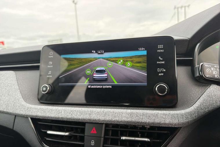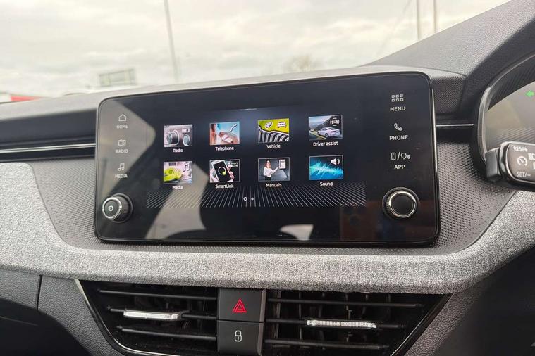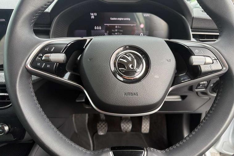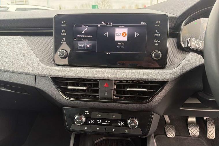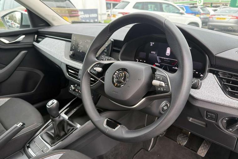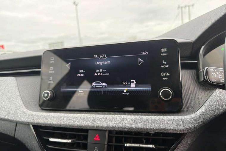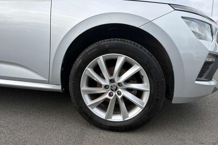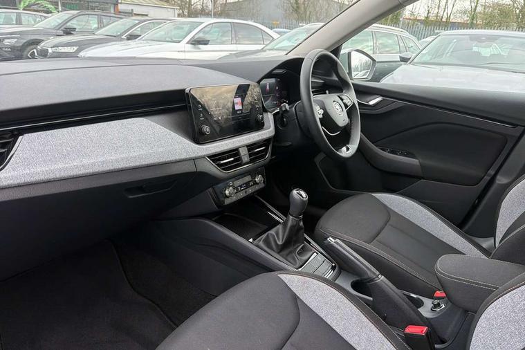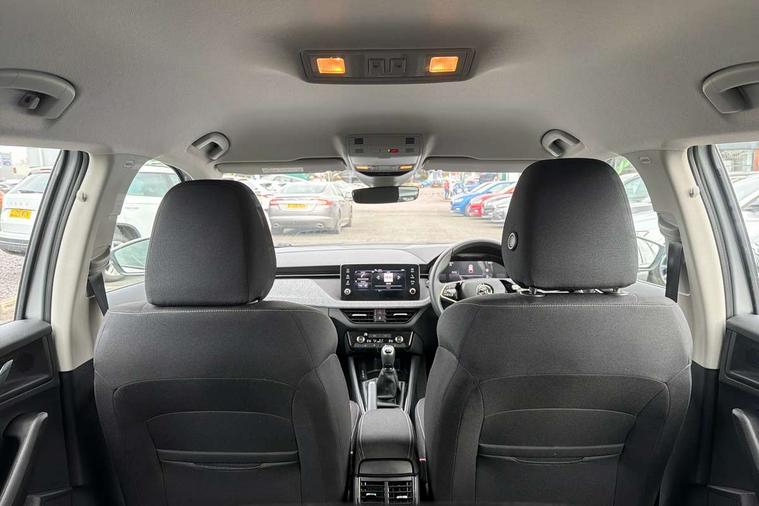 8" Digital display, Advanced driver attention and drowsiness monitor, Bluetooth system, E-call, Front assist system, PAS, Rear parking sensors, Service indicator, Speed limiter, Traffic sign recognition, Wireless smartlink, 4 USB C ports, 8 Speakers, 8.25" Skoda infotainment display, DAB Digital radio, Auto dimming rear view mirror, Automatic headlight control with coming home and leaving home feature, Black roof rails, Body colour bumpers, Body colour door mirrors and handles, Chrome grille surround, Front and rear electric windows, Full LED headlights, Heated rear window, LED daytime running lights, LED front turning lights, LED high beam, LED low beam, LED third brake light, Rear LED fog light, Rear side wing doors, Rear wiper, Ticket holder inside windscreen, 12V socket in luggage compartment, 3 seat bench in 2nd row, Black hotstamping, Cargo elements, Chrome inner door handles, Driver and passenger sun visors with vanity mirror, Dual zone climate control, Front and rear roof lights, Front centre armrest, Front head restraints, Glove compartment with illumination, Height adjustable driver seat, Height adjustable front passenger seat, Ice scraper, Inner circulation control with pollen filter, ISOFIX on front passenger seat, Isofix preparation for back seats, Krepp recycled decor inserts, Leather gearknob and handbrake lever, Loft cloth upholstery, Manual lumbar support for front seats, Net package and top tether hooks in boot space, Net under rear shelf, Overhead glasses storage compartment, Pocket on the back of both front seats include mobile phone pockets, Rake/reach adjustable steering wheel, Reading lights, Satin black door inserts, Single front passenger seat, Textile floor mats, Third rear headrest, Top tether for front passenger seat, Umbrella in driver's door, 3x3 point rear seatbelts, Airbags - driver and front passenger, Disc brakes, ESP, Extended and predictive pedestrian/cyclist protection, Front passenger airbag deactivation switch, Front side airbags with curtain airbags, Hill hold control, Manual leather parking brake, Manual rear child locks, One tone horn, Seatbelt reminder for driver an co-driver, Traction control, Tyre pressure monitor, Anti-theft alarm system with interior monitoring, backup horn, towing protection and remote central locking with SAFE system, Anti-theft wheel bolts, Electronic engine immobilizer,