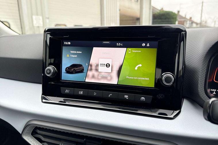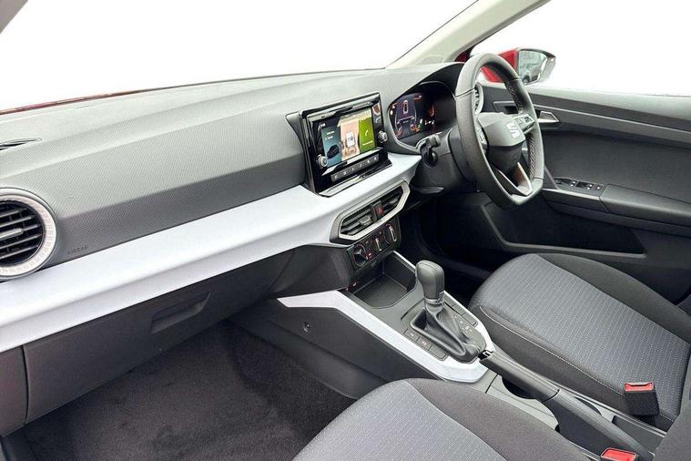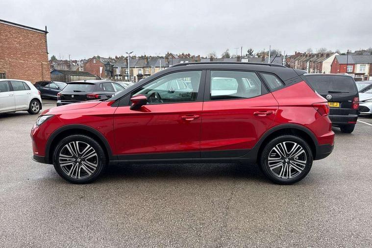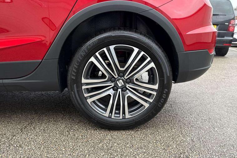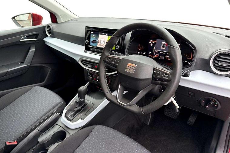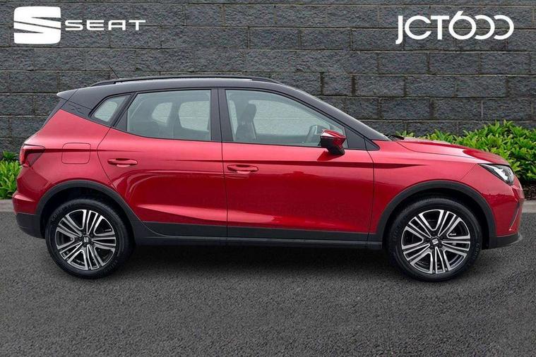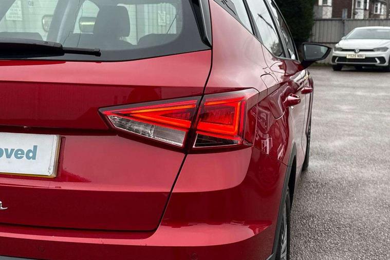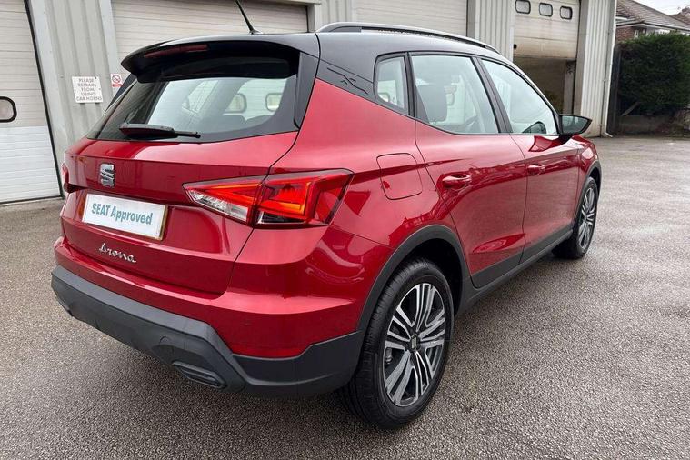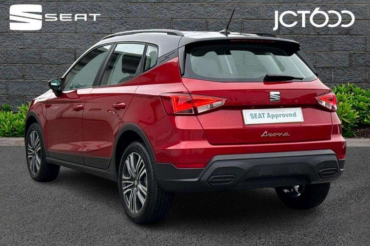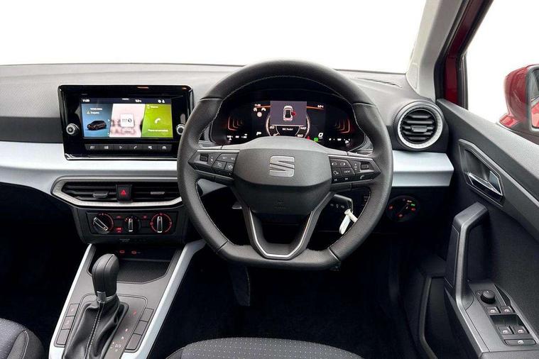 'Lights On' Reminder warning buzzer, 8" Digital cockpit, Cruise control and speed limiter, Digital clock, E-call, Electric speed sensitive power steering, Full link smartphone integration with mirror link, wireless apple carplay, Google android auto + USB Type C cable for apple and android devices, Lane keeping system, Low fuel warning light, Outside temperature display, RPM counter, Trip computer, 6 speakers, Bluetooth interface for hands free and audio streaming, DAB digital radio and AM/FM radio, Media system with 8.25" colour touchscreen with USB port (type c), Steering wheel mounted audio controls, Anti theft roof antenna, Automatic activation of hazard warning lights, Black roof rails and window surrounds, Body coloured bumpers, Body coloured door handle inserts, Body coloured door mirrors, Dimming rear view mirror, ECO LED automatic headlights and LED daytime running lights, Electric adjustable door mirrors, Electric front/rear windows, Hidden exhaust pipe, LED rear tail lights and licence plate lights, Licence plate lights, Protective side mouldings, Rain sensing wipers, Rear fog lights, Rear side wing doors, Rear spoiler, Rear window wash/wipe, Third brake light, Visible VIN plate, 2 cupholders, 3 seat bench in 2nd row, 60/40 split folding rear seat, Air conditioning, Cloth upholstery, Double boot floor, Driver sunvisor with covered mirror + card holder, Dust/pollen filter, Gear shift indicator, Grey interior air vents, Grey interior roof, Height adjustable front seats, Height/reach adjustable steering column, Illuminated boot, Instrument lighting with brightness control, ISOFIX points in outer rear seats with top tether anchorage points, Leather steering wheel/gear knob/handbrake, Passenger sunvisor with vanity mirror, Potentiometer, Single front passenger seat, Two front and three rear height adjustable headrests, Interior chrome pack - Arona, Safe and driving pack (S) - Arona, 3 point seatbelts on all rear seats, ABS, Active front headrests, Child locks on rear doors, Driver and front passenger airbags with front passenger airbag de activation, front side and curtain airbags, Emergency Brake Assist (EBA) and front assist, Forward collision warning and autonomous emergency braking, Front and rear seatbelt reminder, Hill hold control, Multi-Collision braking, Tiredness recognition system, Traction control, Tyre pressure monitoring system, Deadlock, Electronic engine immobiliser, Locking wheel bolts, Remote central locking, Titan black dashboard, 17" Dynamic machined alloy wheels,