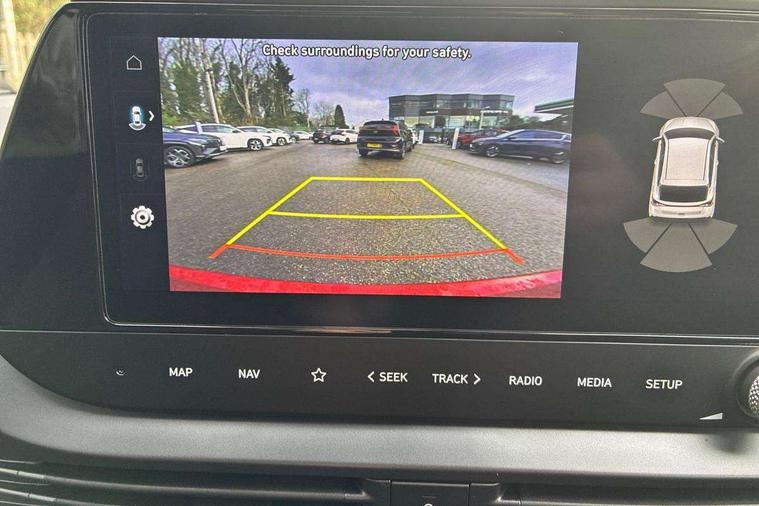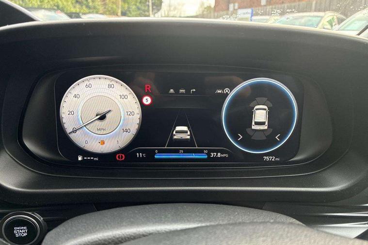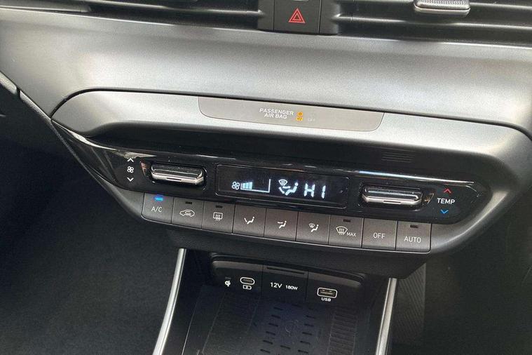 10.25" digital supervision cluster, 10.25" touchscreen + navigation, 2nd Gen eCall, Apple car play/Android Auto, Cruise control + speed limiter, Forward collision assist with car, pedestrian and cycle detection, Front parking sensor, Intelligent speed limit warning, Lane follow assist, Lane keep assist, MAP OTA updates, PAS, Rear parking sensor, Rear view camera with dynamic guidelines, Wireless charging pad, Bose premium sound system, USB C port front, USB C Port in rear, Dusk sensor, Electric adjustable heated door mirrors, Electric folding door mirrors, Electric tilt/slide glass front sunroof + interior blind, Front grille mesh pattern design, High beam assist, LED 3rd brake light, LED daytime running lights, LED Headlights, LED taillights, Privacy glass - Rear windows and tailgate, Rain sensor, Rear side wing doors, Rear wiper, Repositioned flat metal hyundai emblem, 3 seat bench in 2nd row, Adjustable head restraints, Automatic air conditioning, Cloth upholstery, Floor mats, Heated front seats, Heated steering wheel, Leather steering wheel, Multi colour ambient lighting, Single front passenger seat, 3x3 point rear seatbelts, ABS with front and rear diagonally split, Autonomous emergency braking, Child locks on rear doors, Front ventilated disc brakes, Rear solid disc brakes, Tyre pressure monitoring system, Keyless entry with start/stop button, 17" Alloy wheels, Tyre repair kit,