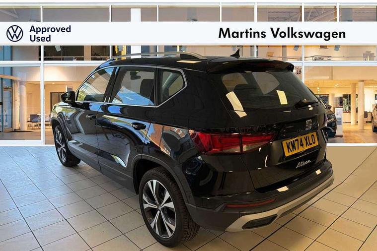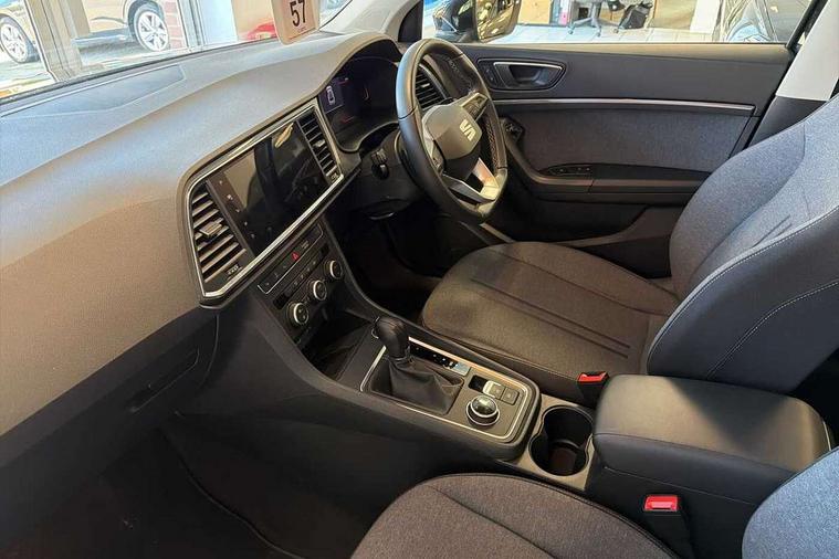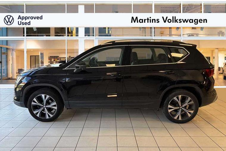 8" Digital cockpit, Colour multi-function on board computer display, Cruise control system with speed limiter, E-call, Outside temperature gauge, PAS, SEAT drive profile with driving experience button - Normal, Sport, Eco and Individual mode, gearshift, steering and throttle response, Self parking functionality (includes front and rear parking sensors), Start/stop system, Tailgate, Trip computer, wired and wireless full link smartphone integration, Wireless phone charger, Steering wheel mounted audio/phone controls, Black wheel arch surrounds, Body colour bumpers, Chrome front grille frame, Chrome roof rails, Chrome side window trim, Daytime running lights, Door mirrors with welcome light silhouette, Dynamic headlight range control with self adjusting whilst driving, Electric adjustable/heated/folding door mirrors, Front and rear electric windows, Full LED headlamps with lens and LED front fog lamps with cornering function, LED 3rd brake light, LED rear tail lights, Rear exhaust tailpipe, Rear fog lights, Rear side wing doors, Rear wash/wipe, Variable front intermittent wipers, 12V socket in front, 3 seat bench in 2nd row, 60/40 split folding rear seat, Cloth upholstery with front comfort seats, Drawer under right front seat, Dual zone climate control, Front and rear head restraints, Front centre armrest, Front seat back storage pockets, Height adjustable driver and passenger seat with lumbar adjustment, ISOFIX points in outer rear seats with top tether anchorage points, Leather sports steering wheel and gear knob, Rear armrest and easy back seat release mechanism from boot, Single front passenger seat, Steering wheel mounted gearshift paddles, Convenience pack - Ateca, Interior lighting pack - Ateca, Navigation system pack with DAB - Ateca, Safety and driving pack with attention and drowsiness assist - Ateca, 3x3 point rear seatbelts, ABS, Traction control system (TCS), Electronic stability control (ESC) and Electronic differential lock system (XDS), Airbags - Driver and front passenger airbag with deactivation, front side, two curtain and driver's knee airbags, Electric parking brake with auto hold function, Front and rear seatbelt reminder, Front assist with autonomous emergency braking, Hill hold control, Manual rear child locks, Single tone horn, Tiredness recognition system, Tyre pressure monitoring system, Alarm, Keyless entry, Locking wheel bolts, Remote central locking, Chrome interior detailing, 18" Performance machined alloy wheels 36/2 in nuclear grey,