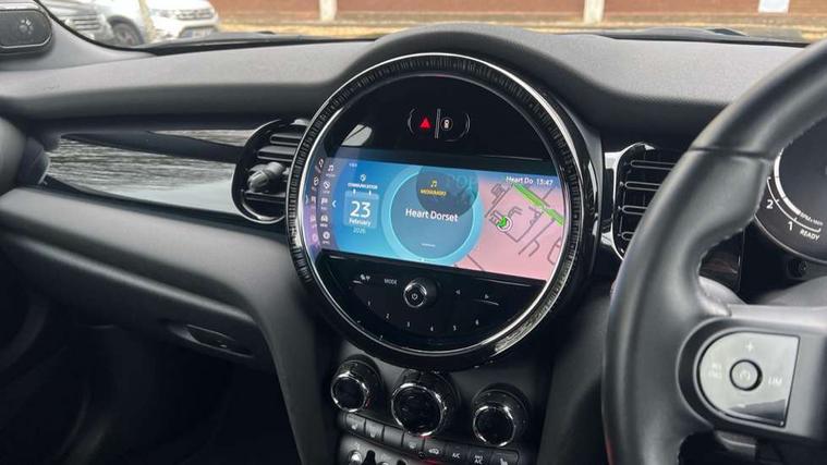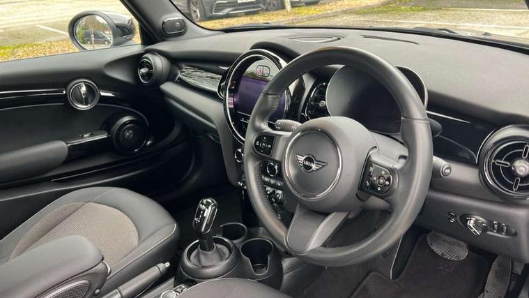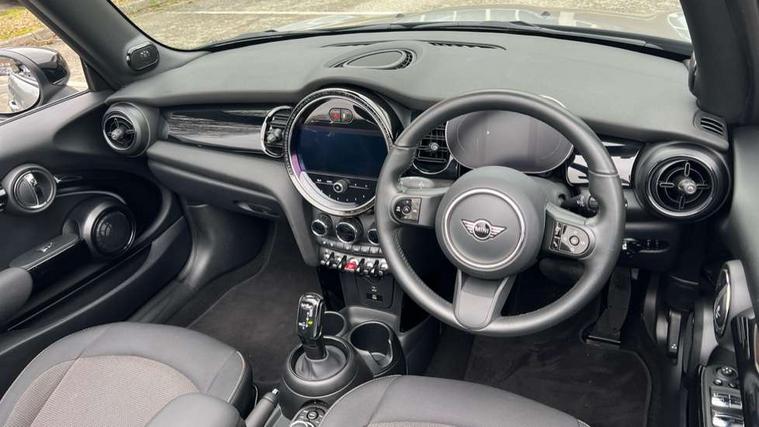 Apple CarPlay, Automatic start/stop function with brake energy recuperation, Compatible mobile phone bluetooth with audio streaming, Cruise control with brake assist, Electro-mechanical speed dependant steering assistance, Instrument cluster, Mini E-call, MINI TeleServices, On board computer, Rear park distance control, Service interval indicator, Double Vanos system, Fully variable valve control, High precision injection, Performance Control, Steptronic transmission with double clutch, FM tuner and DAB digital radio, Automatic headlight activation switch, Body colour fuel filler cap, Chrome border high gloss black slats radiator grille, Dynamic brake lights, Electric windows, Fully electric black softtop with integrated sunroof functionality, Heated rear window, Heated windscreen washer jets, LED headlight with closed ring and daytime driving lights, Left exhaust tailpipe with chrome finisher, Metal door sill strips with MINI imprint, Model logo Cooper on right of tailgate, Rain sensor window wipers, Rear boot, Rear fog lights, Rear LED lights with union jack design, Side scuttle panel with integrated indicator, Sun/heat protection glass, Third brake light, White indicator lenses, 12V Accessory socket in centre console, 2 seat bench in 2nd row, 4 lashing eyes in luggage compartment, 50/50 split folding rear seats, Chrome interior highlights, Colour line - Carbon black, Cupholders, Easy Load boot handles, Front and rear head restraints, Front and rear isofix with front passenger airbag deactivation, Glove compartment, Height and length steering column adjustment, Interior lighting with 12 different colours running across the dashboard, underneath door bezel illuminated laser engraved design on central display, Leather gearshift lever and handbrake gaiters, LED reading lights, vanity mirror lights, front foot well light and spotlight on front seats, Manual air conditioning, Mechanical seat adjustment, driver seat height adjust, forward/back and front seats backrest, Multifunction steering wheel, Single front passenger seat, Sports steering wheel, Storage compartments in doors, Sunvisors with vanity mirrors, Three spoke steering wheel with speed limiter and audio/communication controls, Velour floor mats, Convertible pack with comfort access - Mini Convertible, Navigation pack without Apple car play - Mini Convertible, 3 point seatbelts on all four seats, 6 Airbags - front, side and seat belt tensioners, Active rollover protection, Anti-lock braking system (ABS), DSC - Dynamic Stability Control, Front and rear disc brakes, Hill start assist, Single tone fanfare horn, Tyre pressure monitoring system, Alarm system with tilt sensor, monitoring doors, bonnet interior and tailgate, Electronic vehicle immobiliser, Keyless Go, Piano black interior trim, Tool kit, Tyre repair kit,