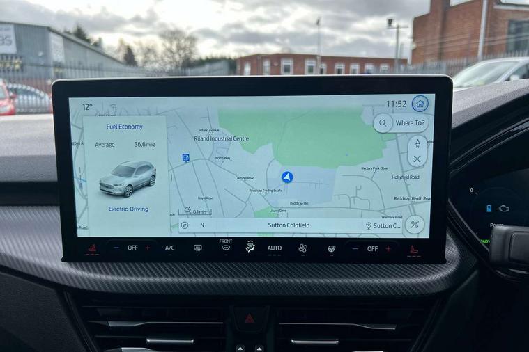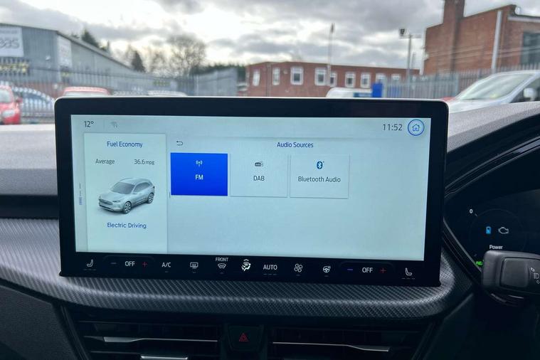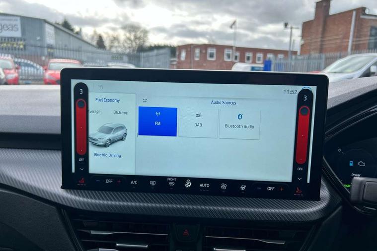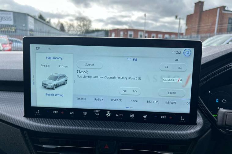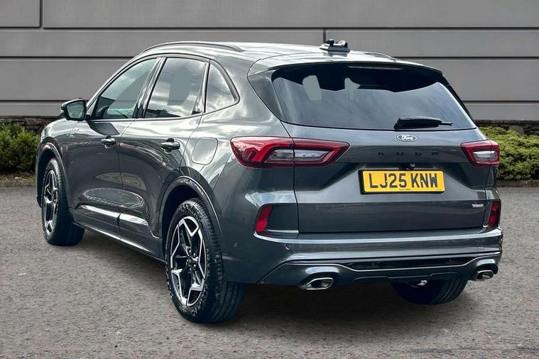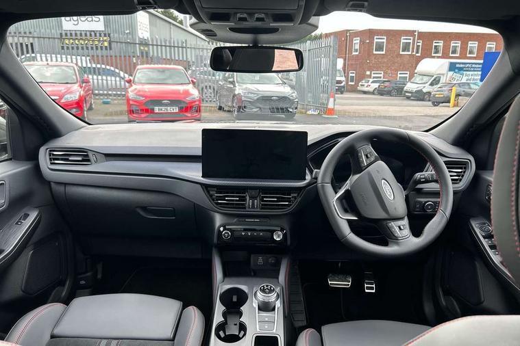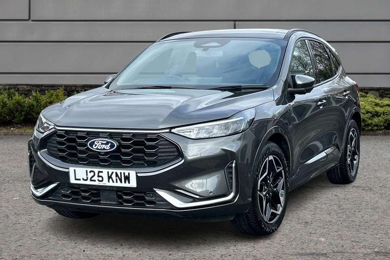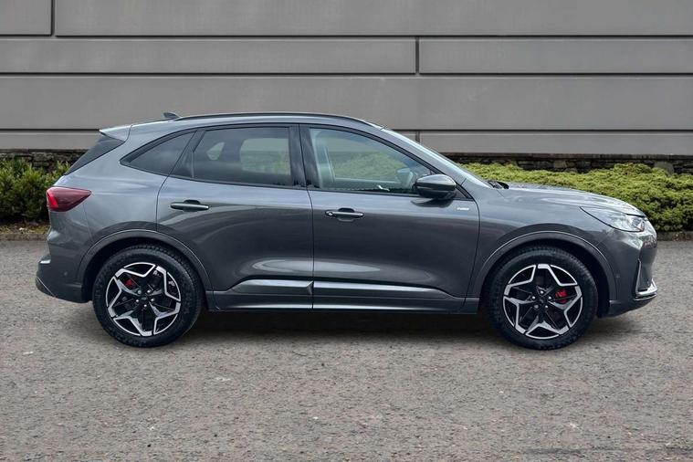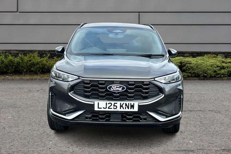 12.3" digital colour instrument cluster, 360 degree view camera, e-Call (emergency call), Ford easy fuel, Ford SYNC 4 Navigation with 13" touchscreen, DAB radio, emergency assistance, Andriod Auto/Apple CarPlay, 5G modem & Ford Pass connect, Front and rear parking sensors, Hands free power tailgate, Lane centering assist, Lane keeping aid with lane departure warning, Power assist steering, Selectable drive modes, Service interval indicator, Sports suspension, Twist beam rear suspension, B&O premium audio system with 10 speakers, subwoofer and 2 USB ports, Auto headlamps with high and low beam, Black roof rails, Body colour bumpers, Front LED fog lamps, Large rear spoiler, LED daytime running lights, LED rear lights, Pop out door edge protectors, Power front/rear windows with global close, Power heated folding door mirrors with puddle lights, memory function and camera, Power opening panoramic roof, Quickclear heated windscreen, Rain sensing wipers, Rear privacy glass, Rear side wing doors, Rear wiper, ST-Line body styling kit, Third brake light, 12 way ergonomic power adjust driver's seat with memory (AGR certified), 12 way ergonomic power adjust passenger seat (AGR certified), 2nd row sliding seats, Electronic automatic temperature control (EATC), Front and rear head restraints, Partial premium touch sensico upholstery, Rear centre head restraint, Single front passenger seat, Sports seats, Driver assistance pack with intelligent adaptive cruise control - Kuga FHEV/PHEV, Winter pack - Kuga, 3x3 point rear seatbelts, Airbags - front driver/passenger, front and rear curtain, Drivers knee airbag, Dynamic brake support, Electronic stability control (ESC) and ABS, Evasive steering assist, Ford MyKey Gen 2 safety system, Manual child proof rear door locks, Pre collision assist with autonomous emergency braking, Rear seat Occupancy alert, Red brake calipers, Tyre pressure monitoring system, Engine immobiliser, Keyless entry and Ford power start button (Keyless start), Locking wheel nuts, Remote powered central double locking doors, Thatcham category 1 alarm,