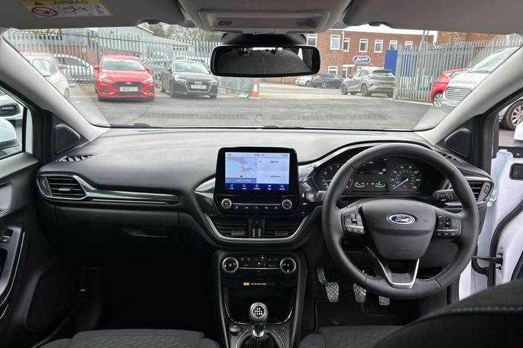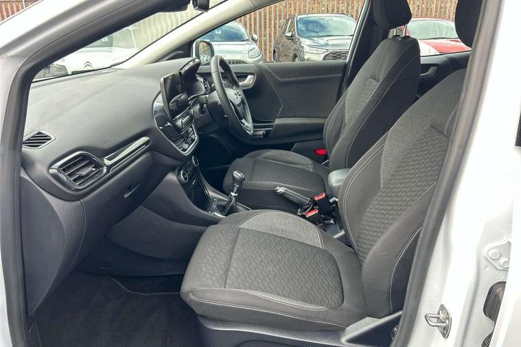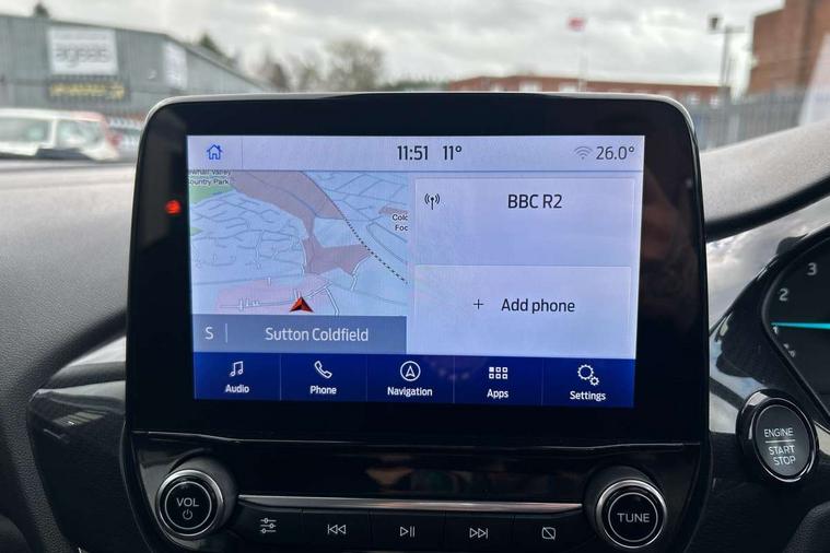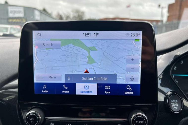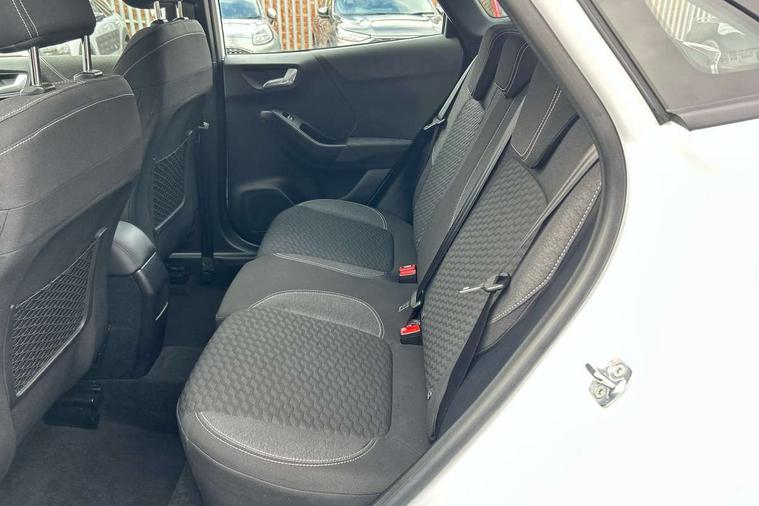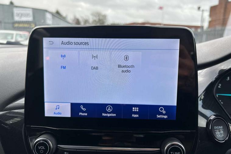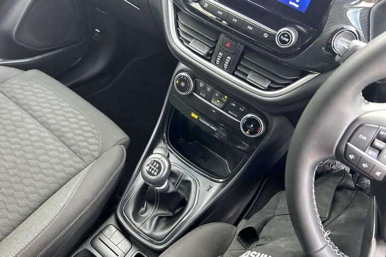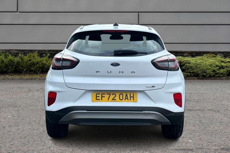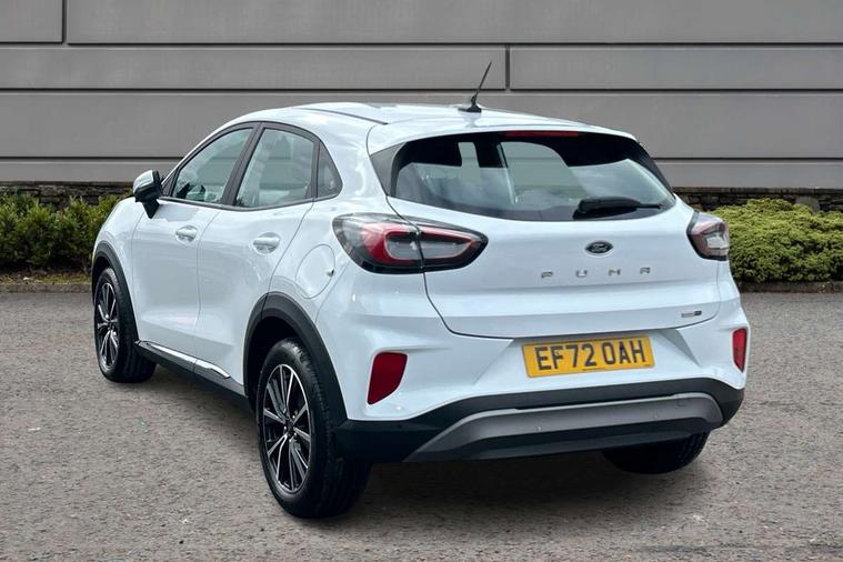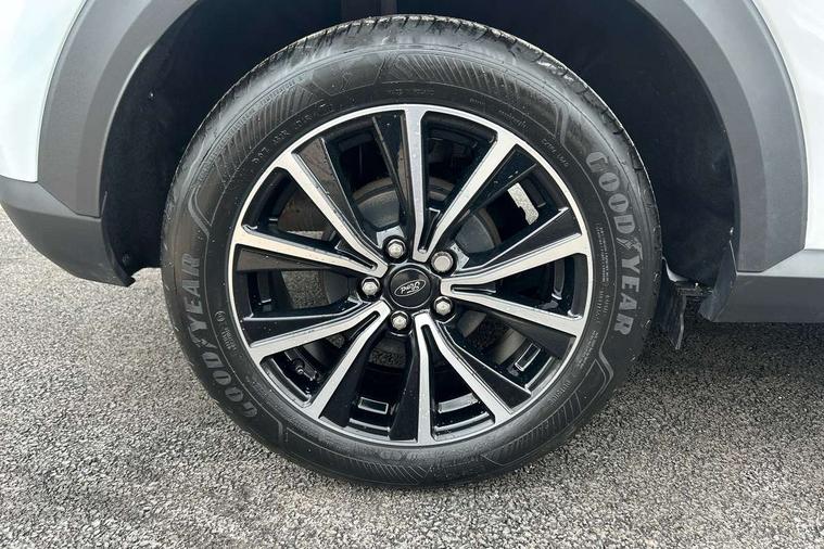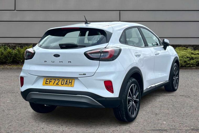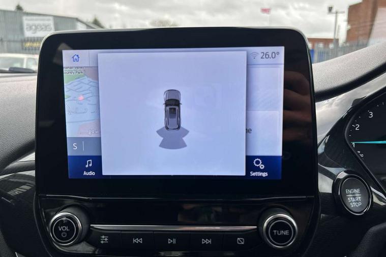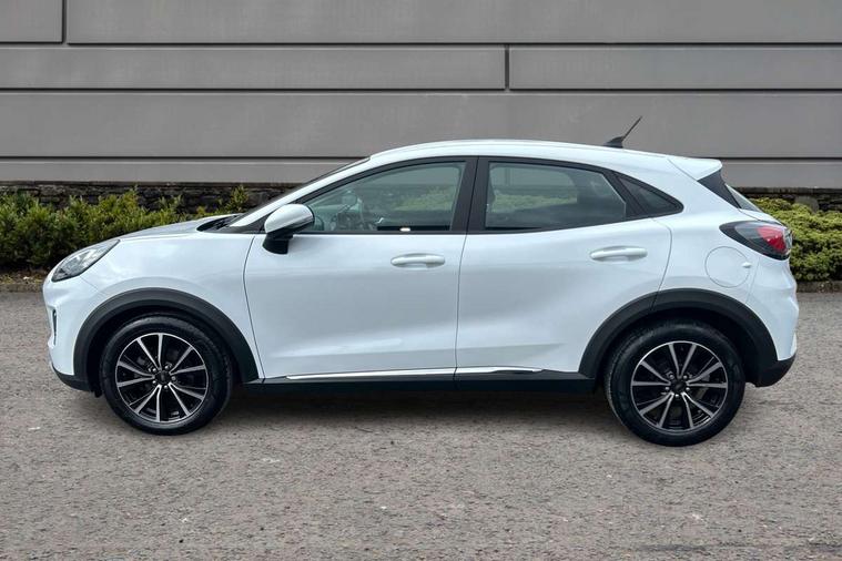 Driver impairment monitor, Emergency call service, Ford easy fuel, Lane keeping aid with lane departure warning, Power assist steering, Power start button, Rear parking sensor, Selectable drive modes(Normal, Eco, Sport, Slippery and Trail), Speed sign recognition, Standard suspension, Automatic headlights with auto high beam, Automatic rain sensing wipers, Body colour rear spoiler, LED rear lamps, Power foldable heated door mirrors with puddle lamps, Projector headlamps with LED day time running lights and front fog lamps, Quickclear heated windscreen, Rear side wing doors, Rear wiper, Third brake light, 3 seat bench in 2nd row, Centre console with armrest and stowage, Electronic automatic temperature control (EATC), Ford megabox extended bootspace, Front and rear head restraints, Front floor mats, Manual 2 way passenger seat adjustment, Manual 4 way driver seat adjust with lumbar adjustment, Sensico leather steering wheel/gear knob/handbrake, Single front passenger seat, Titanium cloth upholstery, Ford SYNC 3 navigation pack - Puma, 3 rear seatbelts, Child safety lock, Electronic stability control (ESC) and hill start assist, Pedestrian/cyclist detection & post-collision braking, Pre collision assist system, Tyre pressure monitoring system (TPMS), Thatcham alarm, 17" 10 spoke absolute black machined finish alloy wheel,