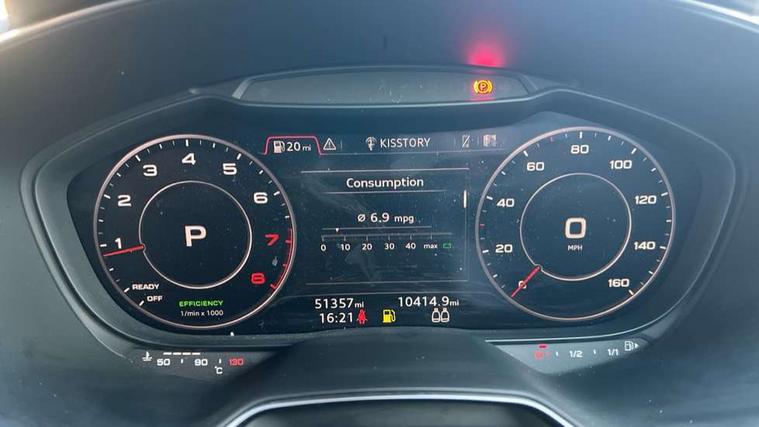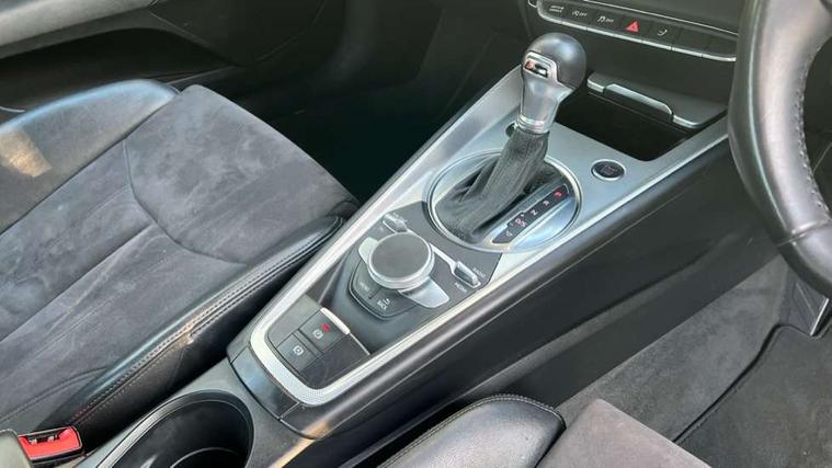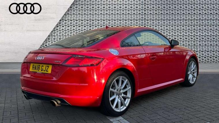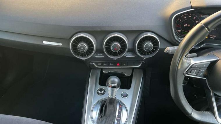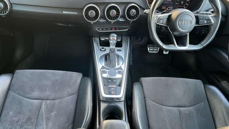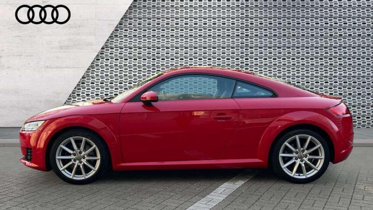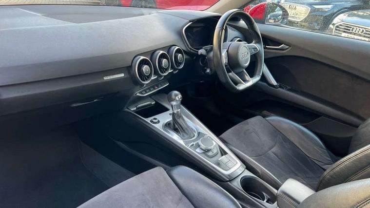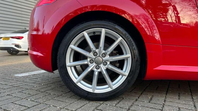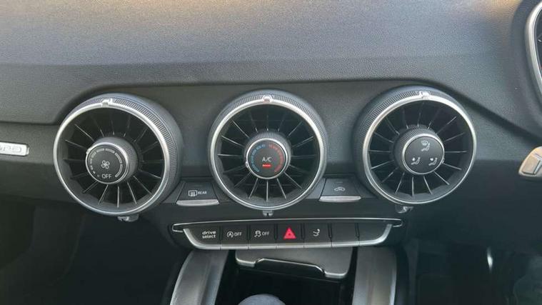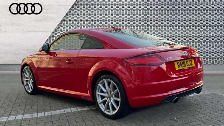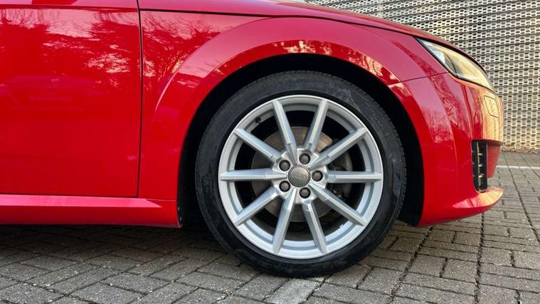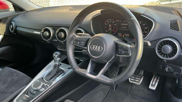 Aluminium interior trim, Auto dimming rear view mirror with light and rain sensors pack - TT, Non smoking pack - TT/TT RS, Tyre repair kit, Anti theft alarm, Immobiliser, Keyless Start, Locking wheel bolts, Remote central locking, Audi music interface, Auxiliary input socket, Bluetooth audio streaming, DAB Digital radio, MMI Radio with CD player and SD/XC card slot, 3 point front seat belts, ABS, ASR traction control, Curtain airbags, Driver/Front Passenger airbags, EDL traction control, Electromechanical parking brake, ESP, First aid kit, Front passenger airbag deactivation, Front side airbags, Head airbags, Seatbelt warning, Tyre pressure warning, Warning triangle, Auto headlight range control, Body colour bumpers, Body colour door mirrors, Electric front windows, Front fog lights, Green tinted heat insulating glass, LED daytime running lights, LED rear lights, Retractable rear spoiler, Sunband for windscreen, 3 spoke flat bottomed high multi-function leather sport steering wheel with gearshift paddles, Aluminium door sill trims, Extended aluminium look with stainless steel pedals, Front centre armrest, Front head restraints, Front passenger seat isofix location point, Height/reach adjust steering wheel, ISOFIX on outer rear seats, Reading lights, Split folding rear seat, Top tether anchor plate for isofix child seat, Audi drive select, Audi virtual cockpit - 12.3" high-resolution LCD display with fully customisable instrument cluster, Cruise control + speed limiter, MMI touch panel, Mobile phone preparation with bluetooth interface, Progressive power assisted steering, Service interval indicator, Sports suspension,