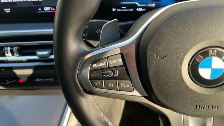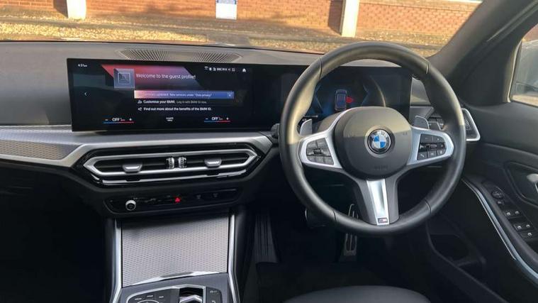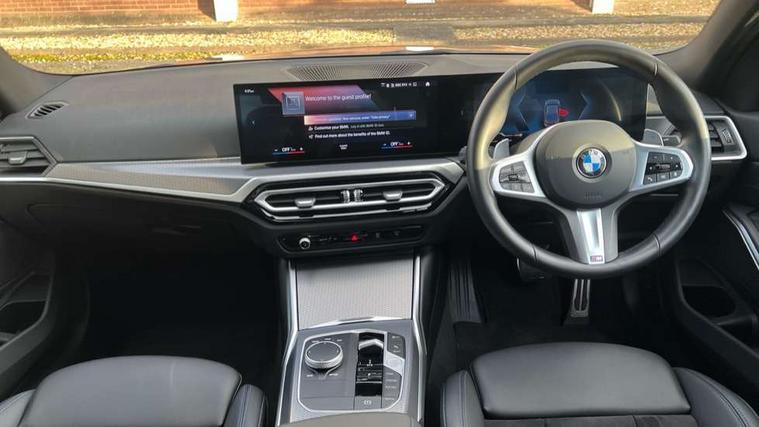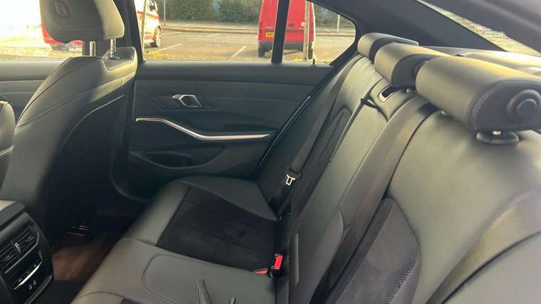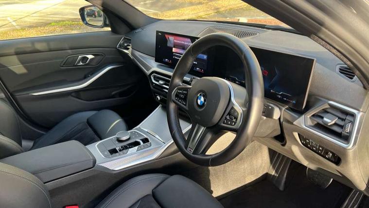 Active guard plus, Attentiveness assist, Automatic Start/stop button, BMW iDrive, BMW Teleservices, Condition based service, ConnectedDrive Services, Driving experience switch, Live cockpit plus with Navigation + 12.3" instrument display + 14.9" display, Intelligent voice assist, 2 USB, 4G LTE connect, Oil sensor for level and grade, PAS, Preparation for driver assistance, Shifting point display, Variable sport steering, Double joint spring strut front axle, Fuel tank breather system, Sport automatic transmission with steering-wheel mounted gearshift paddles and launch control, DAB tuner, 3rd brake light, Auto dimming rear view mirror, Auto dimming with folding wing mirrors, Automated High beam assist, Automatic headlight beam throw control with load dependent regulating reaction, dynamic compensation of braking dive and acceleration squat, BMW emblem, engine compartment lid and tailgate, Body colour roof fin, Door sill strips, Electric windows - front and rear, with open/close fingertip control, anti-trap facility and comfort closing, Follow me home headlight function, Front and rear bumper system with replaceable deformation elements, Front apron plastic in body colour, Fuel filler flap - right rear in body colour, Heated washer jets, High gloss shadow line exterior trim, Illuminated bow type door handles in body colour drivers side with door lock, Interior rear view electrochromatic mirror with automatic anti dazzle function, LED headlights with LED daytime running lights and LED turn indicator, LED rear lights, Licence plate panel integrated into front bumper and tailgate, Matt black B-pillar finsher, Matt black window recess cover, Model designation on right side of tailgate, One piece front bumper cover including towing eye cover in body colour, Rain sensor with automatic headlight activation, Rear boot, Rear side wing doors, Reversing lights, Side frame decorative moulding black matt, Visible exhaust tailpipe finisher, Welcome lights in interior and door handle area, 12V power socket in front storage compartment, 2 front cupholder in centre console with clamping elements and matt black inlay, 3 seat bench in 2nd row, 3 zone automatic air conditioning, 40:20:40 split folding rear seat with loading system, Ambient inside door handle light, Ambient light design projected onto the left and right entering and exiting area, Ambient storage compartment lighting in the centre console, Anthracite headlining, Armrest integrated in front and rear door trim + front centre console armrest, BMW ID, Contour lighting in instrument panel and door trim panel, Cruise control operation in steering wheel, Driving experience mode switch, Extended storage, Folding rear centre armrest with 2 cupholders, Front and rear ambient footwell lighting, Front and rear door exit lighting (left / right), Front and rear headrests, Front and rear reading lights, Front and rear velour floor mats, Heated front seats, Height adjustable mechanically and infinitely variable steering column, Illuminated armrest storage compartment, Illuminated glove compartment, Illuminated luggage compartment, Lashing eyelets in luggage compartment, M Sport multifunction leather steering wheel, Make-up mirror lights, Single front passenger seat, Standard seat for driver and passenger with manual adjustment, Sunvisors with illuminated vanity mirrors and ticket pocket, Toolkit located in luggage compartment, Connected pack professional - 3 Series Saloon/Touring, Interior and exterior mirror pack - 3 Series Touring/Saloon, M Aerodynamics package - 3 Series Saloon/Touring, M sport exterior styling pack - 3 Series Saloon/Touring, Parking assistant pack - 3 Series, Storage compartment pack - 3 Series Saloon/Touring, 3x3 point rear seatbelts, BMW emergency call, Child locks on rear doors, Crash sensor activating of airbags, Unlocking doors, hazard warning lights, interior light, safety battery terminal, Driver and front passenger with seat occupancy detection for driver's and passenger side, Driver and passenger side airbags, body protection at side and airbags deploy from seat backrests, Dynamic brake control, Dynamic stability control + (DSC+) - Anti-lock Braking System (ABS) with brake assist and cornering brake control + Automatic Stability Control (ASC), Dynamic Traction Control - DTC, Electric parking brake including automatic hold function and automatic release of the parking brake when driving off, Electronic differential lock control (EDLC), Front airbag deactivation, Head airbags in 1st and 2nd row, head protection at side, curtain airbags open from headliner above 1st and 2nd row, Plastic fuel tank, Side impact protection, Tyre pressure monitoring with three level warning strategy, Ventilated front and rear disc brakes, Warning triangle and first aid kit, Alarm system, Centre lock switch, Closing system with central locking, Electronic vehicle immobiliser, Locking wheel bolts, Tyre repair kit,