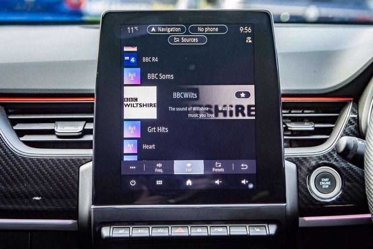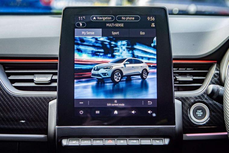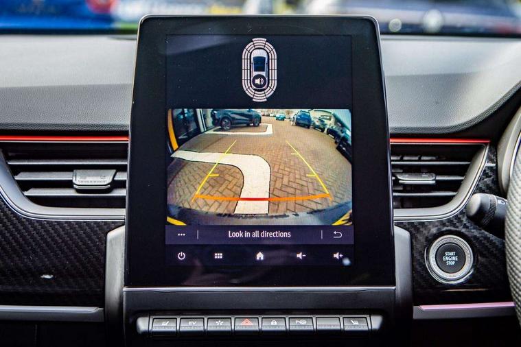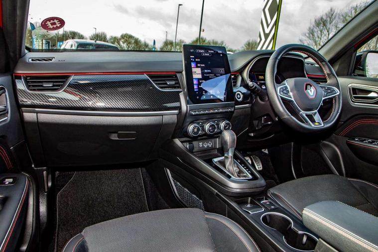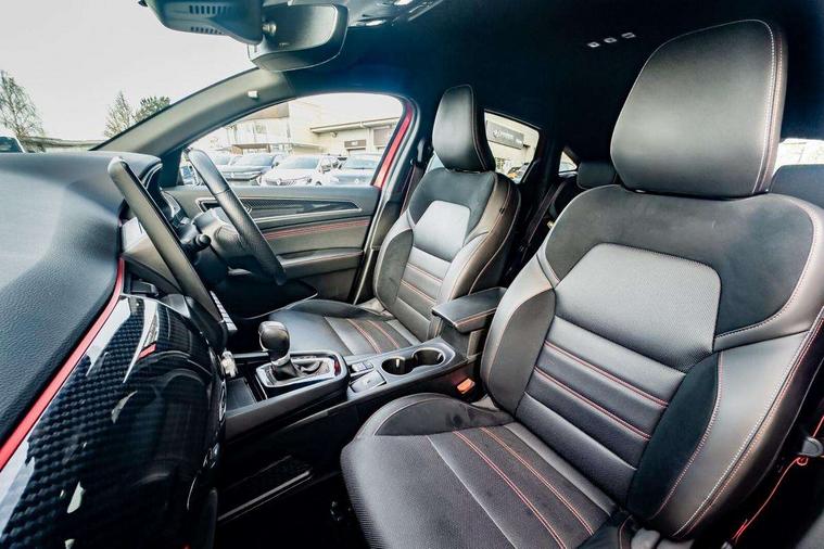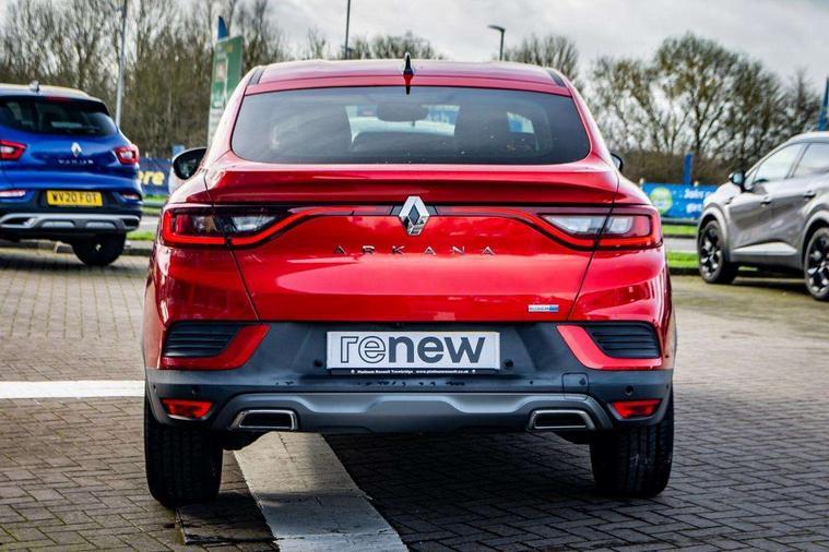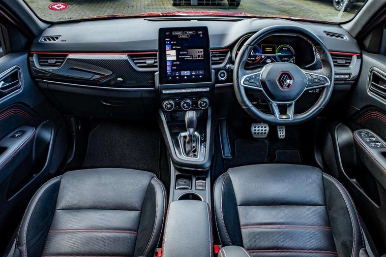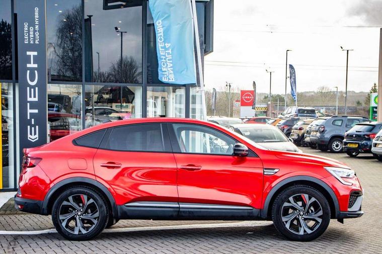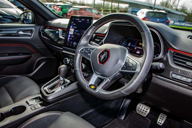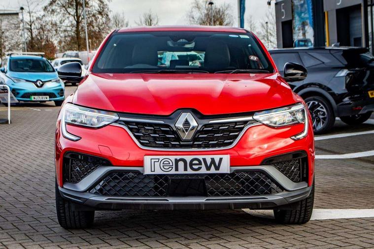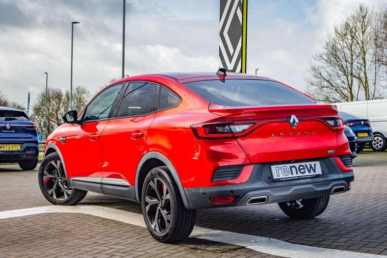 7" TFT Driver information display, Blind spot warning, Bluetooth system, EASY LINK 9.3" portrait touchscreen with navigation, Google search and traffic information, eCall emergency call system, Eco mode, EV button to activate pure mode, Front and rear parking sensors, Gear change indicator, Lane departure warning, Lane keep assist, Multi-sense - 3 driving modes and 8 ambient lighting, Rear cross traffic alert, Rear view camera, Renault automatic emergency assist, Smartphone integration compatible with Apple CarPlay and Android Auto, Traffic sign recognition with over speed prevention, Trip computer, Variable assistance electric power steering, Wireless phone charger, DAB radio, USB port, 3rd brake light, Auto dimming rear view mirror, Automatic headlights, Automatic high / low beam, Automatic windscreen wipers with rain sensor, Black side door protection with gun metal insert, Body coloured bumpers, C-shaped LED front signature lighting, Chrome decopart on wing (fender molding) with R.S. Line badge, Double chromed exhaust tailpipes elements, Extra tinted rear windows and tailgate, Frameless rear view mirror, Front and rear electric windows, Front bumper with F1 blade and honeycomb front grille, Front driver window with one touch facility and anti-pinch function, Front grille with chrome on upper part, Full LED headlights, Glossy black door mirror and lower window lining, Gun Metal front and rear skid plates, Heated rear window, R.S. Line badges on front wing and hatch door, Rain sensor, Rear windscreen wiper, Shiny black shark fin antenna, Side mirrors adjustable electrically, electrically foldable, with defrosting and temperature sensor, automatically foldable at vehicle closure, 3 seat bench in 2nd row, 60:40 split and fixed base rear seats, Aluminium pedals, Automatic climate control with combined filter, humidity sensor and AQS, Black interior roof lining, Carbon style dashboard, Central console with storage, Driver's seat height adjustment, Electrically adjustable front seats, Front and rear head restraints, Height and reach adjustable steering wheel, ISOFIX child seat fixing points on rear outermost seats, LED front and rear roof lights, Passenger seat height adjuster, R.S. line black suede-leather upholstery with red/grey stiching, R.S. Line perforated leather steering wheel with red/black harmony and R.S. Line badge, Rear air vents, Red inserts on air vents, Single front passenger seat, Parking Pack - Hands-free parking & flank protection - Arkana, Winter pack - Arkana, 3x3 point rear seat belts, ABS+EBA, Active emergency braking system, B Brake Mode - One pedal driving with increased regenerative braking, Distance warning alert, Driver airbag, Driver and passenger front and side airbag deactivation, Driver and passenger side airbags, Driver height adjustable seat belt, Electronic parking brake with auto hold, ESC (Electronic Stability Control), Front and rear no seatbelt warning sound, Front curtain airbags, Front head airbags, Hill start assist, Passenger airbag, Tyre pressure warning light, Anti drill door locks and locking fuel cap, Central door locking, Deadlocking system, Hands free keycard with Keyless access and start, RAID (Renault Anti-Intruder Device) automatic door locking, Rear side wing door and window child locking function (front driver door control panel), Superlocking, Thatcham alarm, 18" Silverstone diamond alloy wheels with red inserts,