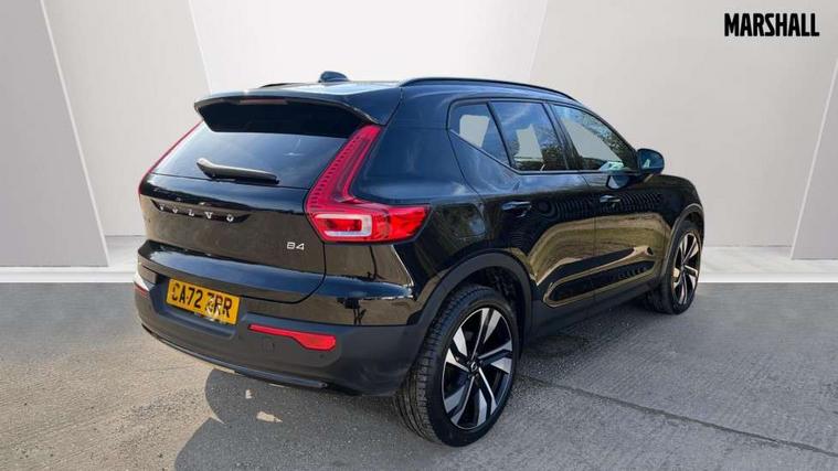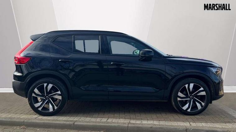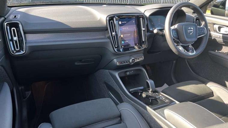 12.3" Progressive Driver Display, 360 degree surround view parking camera with side proximity sensors, 9" centre console portrait touch screen, Adjustable steering wheel force, Bluetooth hands free telephone kit, E-call, Front park assist, Google automatic services - Nav with google maps, apple carplay/android auto, voice recognition with google assistant, Hands free power tailgate, Lane keep assist with driver alert control, Oncoming Lane Mitigation, Rear park assist, Speed limiter, Speed sensitive steering, Wireless/Inductive Mobile Phone Charging, Dynamic chassis, DAB Digital radio, Premium Sound by Harman Kardon, Dolby Pro Logic II Surround Sound, Dirac Unison, 12 speakers/600W and subwoofer, Steering wheel mounted remote controls, Active bending pixel LED headlights with adaptive shadow technology, Active high beam incorporating daytime running lights, Adaptive brake lights with high level LED brake lights, Auto dimming interior mirror, Automatic headlamp levelling, Dark tinted windows for rear door side windows and cargo compartment, Front aluminium tread plates, Front and rear electric windows, Headlight cleaning system, High gloss black front and rear skid plate, High gloss black mesh front grille with high gloss black surround, High gloss black window trim, Home safe and approach lighting, Integrated roof rails in high gloss black, LED front fog lights, Power glass tilt and slide panoramic sunroof with sun curtain, Puddle lights, Rain sensor with automatic windscreen wiper activation, Rear side wing doors, Rear wiper, Roof antenna, Roof spoiler, Visible VIN plate, 12V socket in front tunnel console and luggage compartment, 2-Zone electronic climate control with CleanZone air quality system and pollen filter, 3 seat bench in 2nd row, 3 Spoke tailored steering wheel with chrome trim, 60/40 versatile split folding rear seat, A-pillar parking ticket holder, Ambient front door and instrumental panel lighting, Centre console cupholders and storage, Flexible load floor and grocery bag holder, Floor mats, Front door pocket and front cupholder illumination, Front footwell illumination, Front headrests, Front reading light and theatre lighting, Front seat cushion extensions, Front tunnel pocket, Glovebox bag hook, Heated front seats, Height adjustable passenger seat, Height/reach adjustable steering column, High gloss centre tunnel deco, Illuminated glovebox, Illuminated luggage compartment, Illuminated tailgate, Illuminated vanity mirrors, Integrated waste bin, Isofix attachments on outer rear seats, Load protection net, Multi directional lumbar support, Power driver seat with memory + exterior mirrors memory, Power folding rear headrests, Power passenger seat, Rear armrest / integral cup holders / storage tray, Rear reading and courtesy lights, Single front passenger seat, Underfloor cargo storage, Climate pack without heated front seats - XC40, Driver assist pack - XC40, 3x3 point rear seatbelts, City safety with steering support with Pedestrian + cyclist + front collision warning with full auto brake and rear auto brake, Drivers knee airbag, Dual stage driver/passenger airbags, Electronic parking brake with auto hold, First aid kit, Front and outer rear seatbelt reminder and pretensioners, Front seats SIPS airbags, Hill descent control, Hill start assist, Inflatable curtain, Passenger airbag cut-off device, Power child locks on rear doors, Road sign information display, Run off Road Mitigation, Run off Road Protection, SIPS (Side Impact Protection System), Slippery road and hazard light alert, Stability and Traction Control with Spin control, Engine Drag Control and Corner Traction Control, Tyre pressure monitoring system, Vehicle deceleration control with Anti-lock Brake System, Electronic Brake Distribution and Emergency Brake Assist, Warning triangle, WHIPS whiplash protection system - front, Anti-theft alarm including immobiliser/volume sensor + level sensor, Key integrated remote control central locking + fuel flap with deadlocking system and auto open/close power windows, Keyless drive includes keyless entry and keyless start, Locking wheel nuts,