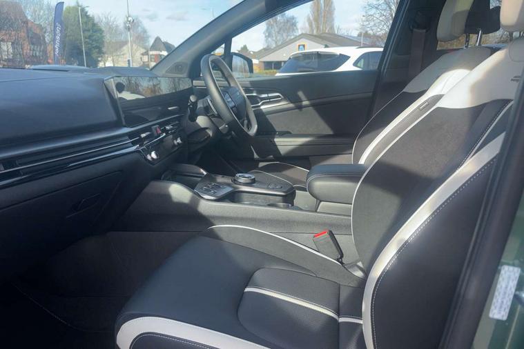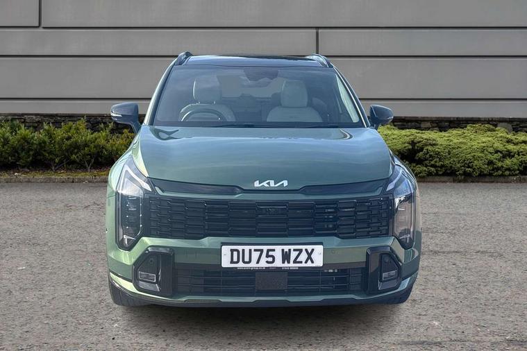 12.3" Driver display screen, 12.3" Touchscreen navigation system, 360 degree around view monitor, Blind spot collision avoidance assist, Blind spot view monitor, Bluetooth connection, Customisable head-up display, Digital key 2.0, Drive mode selector, Driver attention warning, E-call, Emergency stop signalling system, Forward collision avoidance assist 2.0, Front and rear parking sensors, Highway Driving Assist (HDA 2.0), Intelligent speed limit assist, Kia Connect (UVO), Lane Following Assist (LFA), Lane keep assist, Low washer fluid warning, Motor driven power steering, Over the air (OTA) functionality, Parking collision avoidance assist (PCA), Rear cross traffic collision avoidance assist (RCCA), Reversing camera, Safe exit warning (SEW), Smart cruise control with stop and go functionality, Smart power tailgate, Speed limiter, Trip computer, Windscreen washer level indicator, Wireless apple car play/android Auto, Wireless Smartphone charger, DAB Radio with MP3, Front passenger 1x USB-C port, Harman Kardon premium sound system with 8 speakers, Rear passenger 2x USB-C port, Steering wheel mounted audio controls, USB-C port for connection of a media device, Auto dimming rear view mirror, Automatic defog system, Automatic headlight control system, Black and body coloured bumpers, Body colour exterior door handles, Body colour radiator upper garnish and door garnish, Dual LED headlights with adaptive driving beam, Electric front and rear windows with front one touch function, Electrically adjustable/heated/folding door mirrors with LED indicators, Front and rear body colour skid plates, Gloss black door mirrors, Gloss black radiator grille, Gloss black wheel arches, Glossy black roof rails, GT-Line exterior styling, Heated rear window, High beam assist, LED daytime running lights, LED front fog lamps, LED High mounted stop light, LED rear lights, Panoramic sunroof with tilting and sliding function with electric blind, Privacy glass in rear windows and tailgate, Rain sensing wipers, Rear fog lamp, Rear roof spoiler, Rear side wing doors, Rear wiper, Satin finished beltline, Silver window surround, Trailer stability assist, 12V power socket in front and luggage compartment, 3 seat bench in 2nd row, 3 x passenger assist grips, 40/20/40 split folding rear seat, All-round height adjustable headrests, Alloy pedals, Automatic air conditioning, Black headlining, Centre console storage box, Cupholders in rear armrest, Customisable ambient lighting, Door courtesy lamps, Driver and front passenger sunvisors with illuminated vanity mirrors, Drivers seat power lumbar support, Electric adjustable driver seat with memory function, Electric adjustable front passenger seat, Front and rear door storage, Front seat and rear pockets, Gear shift indicator, Glovebox, GT-Line Interior Styling, Heated front and outer rear seats, Heated steering wheel, ISOFIX Child seat top tethers and anchor fixings outer rear seats, Leather steering wheel, Leather/suede upholstery, LED front cabin light, LED interior personal lamp, LED lighting in overhead console, LED rear reading lights, Luggage area LED light, Luggage area load cover, Luggage area parcel shelf, Luggage board, Luggage compartment under floor storage, Luggage net hooks, Manual adjust steering wheel, Metal paint interior door handles, Paddle shift controls, Rear air conditioning, Rear cabin light, Rear coat hooks, Single front passenger seat, Ventilated front seats, Ventilation ducts to rear compartment, Active front headrests, All round 3-point seatbelts, Anti-lock braking system (ABS), Dual front side airbags, Dual horn, Dynamic brake control, Electronic parking brake with auto hold function, Electronic stability control with downhill brake control, Front passenger airbag cut-off switch, Front seatbelt pretensioners + load limiters, Height adjustable front seatbelts, Hill start assist control (HAC), Impact sensing auto door unlocking, Multi collision brake assist, Rear airbags, Rear door child safety locks, Rear seat alert system, Seatbelt reminder warning, Traction control, Twin curtain airbags, Twin front airbags, Tyre pressure monitoring system, Vehicle stability management, Customisable automatic door locking, Customisable automatic door unlocking, Door deadlocks, Engine Start/Stop Button with Smart Entry System, Locking wheel nuts, Smart key with motion sensor, Speed sensitive auto door locking, Thatcham category 2 security alarm and immobiliser, Visible vehicle identification number, 18" GT-Line alloy wheels, Tyre mobility kit,