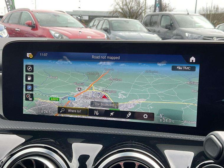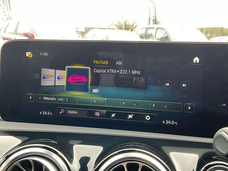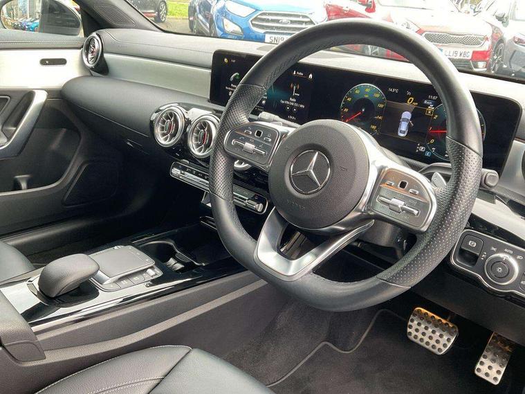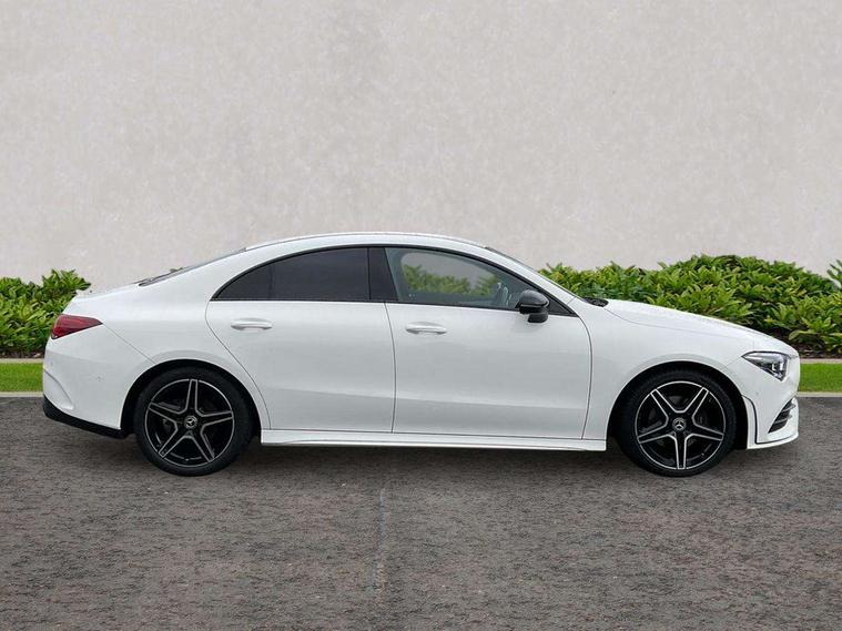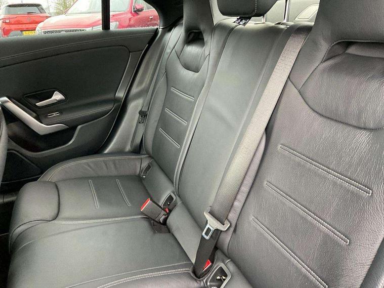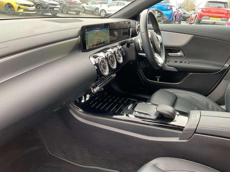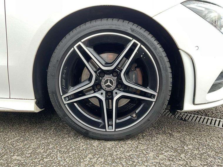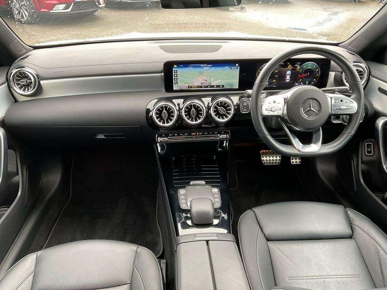 10.25 inch Instrument display with digital cockpit, 10.25 inch touchscreen central media display, Active lane keeping assist, Attention assist - Monitors steering behaviour and long journey fatigue, Bluetooth connection, Car wash mode, Cruise control with limiter, Direct steer system with speed sensitive power steering, DYNAMIC SELECT with a choice of driving modes (ECO, Comfort, Sport and Individual), ECO start/stop function, Fluid level warning indicator for fuel, oil, coolant and washer fluid, Hard-disk navigation, Hey Mercedes Voice activation, Lamp failure indicator, Mercedes me connect including emergency call system, accident recovery, breakdown management and maintenance, Mercedes me remote services, Outside temperature gauge, Owners manual and service booklet in English, Pre-installation of private car share, Preinstallation for Mercedes Benz link, Radio aerial integrated into front and rear windshields, Service indicator (ASSYST), Smartphone integration with Apple CarPlay and Android auto, Speed limit assist, Trip computer in multifunction display with current consumption indicator, Lowered comfort suspension, Rear axle multi-link, DAB digital radio tuner, MBUX multimedia system, Mercedes Benz sound system (100 W) with 6 speakers, USB (type C) ports (2) in stowage compartment and 1 in front of centre console, Adaptive brake lights, AMG body styling with AMG front apron and rear apron and visible exhaust tailpipe in chrome trim elements, AMG bodystyling side skirts, Body colour bumpers, Body colour door handles, Chrome beltline strips, Diamond radiator grille pins in chrome, Electric windows, Electrically adjustable and heated door mirrors with integrated LED indicators, Exhaust system with 2 Visible tailpipe trim elements and rear apron with trim in chrome, Headlamp assist automatic headlamp activation, Heated glass rear windscreen + timer control, High level LED third brake light, Interior mirror with black reading lamps and frameless, LED high performance headlamps with integrated LED daytime running lights, LED tail lamp, Privacy glass with dark tinting on rear side windows and rear window, Rain sensing windscreen wipers with two sensitivity settings, Rear boot, Rear fog lamp, Rear side wing doors, Variable front intermittent wipers, Window line trim strip in chrome, 3 seat bench in 2nd row, 3 spoke flattened bottom nappa leather multifunction steering wheel with perforated leather in grip area, 40:20:40 split folding rear seats with backrest, Air conditioning - Two zone thermotronic luxury automatic climate control with display, Air vents with surround in silver chrome, Artico man-made leather upholstery, Automatic child seat recognition sensor, Black roof lining, Brushed stainless steel sports pedals with rubber studs, Floor mats with stitched AMG lettering, Front centre armrest with stowage, Front door sills with Mercedes Benz lettering, Galvanished gear shift paddles on steering wheel, Heated front seats, Illuminated glove compartment stowage, Interior lighting - 64 colour Ambient lighting, Luggage net on driver/front passenger seat backrest, Manually adjustable front seats, Manually height and reach adjustable steering column, Rear head restraints, Single front passenger seat, Sport seats with fixed head restraints, Stowage compartment in centre console with retractable cover, Sunvisors with illuminated vanity mirrors, Touchpad on center console, Twin front cupholders, Two outer rear seat isofix and top tether child seat fixing points, Light and sight pack - CLA, Mirror pack - CLA, Night package - CLA, Parking package - CLA, Seat comfort pack - CLA, Active bonnet pedestrain safety measure which detects an impact and raises bonnet by 65mm, Active brake assist includes forward collision warning system with autonomous braking, Adaptive brake assist with hold function and hill start assist, Anti lock braking system (ABS) with brake assist, Black seat belts, Bonnet with power domes, Brake pad wear warning indicator, Childproof locks manually operated for rear doors and electrically operated for rear power windows, Crash responsive emergency lighting, Driver and front passenger head and sidebags, Driver and front passenger windowbags, Drivers knee airbag, Dual stage driver and front passenger airbags, Electric parking brake, Electronic stability programme with acceleration skid control, ESP curve dynamic assist, Front and rear seatbelt reminder, Front passenger seat occupancy sensor, Three point rear seat belts, Tyre pressure monitoring system, Warning triangle and first aid kit, Guard 360 degree guard vehicle protection system with immobiliser and interior protection, Keyless Go starting function, Remote central locking and crash sensor with emergency opening function, Light aluminium with longitudinal grain interior trim, 18" AMG 5 twin spoke light alloy wheels painted in black with high sheen finish, Summer tyres, Tirefit tyre sealant kit,
