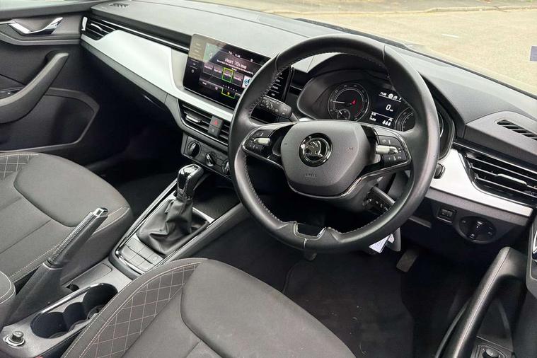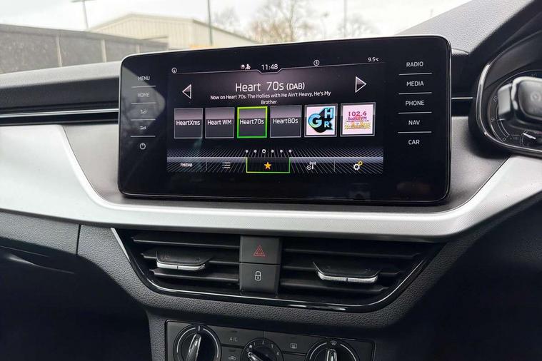Amundsen satellite navigation with 9.2" glass colour touchscreen display, web radio, voice control and traffic sign recognition, Bluetooth system, E-call, Front assist system, Gesture control, PAS, Service indicator, Speed limiter, Wireless SmartLink for apple car play, android auto and mirrorlink, 8 Speakers, Auxiliary input socket, DAB Digital radio, Body colour bumpers, Body colour door mirrors and handles, Chrome grille surround, Dimming rear view mirror with black surround, Electrically adjustable and heated door mirrors, Front and rear electric windows, Headlight range control, Heated rear window, LED rear lights - low functionality, LED third brake light, Light sensors, Privacy glass, Rain sensor, Rear fog lights, Rear side wing doors, Rear wiper, 12V Accessory socket in centre console, 3 seat bench in 2nd row, Chrome inner door handles, Cloth upholstery, Front head restraints, Glove compartment with illumination, Height adjustable driver and front passenger seats - manual, Ice scraper, Isofix child seat fittings on outer rear seats, ISOFIX on front passenger seat, Manual lumbar support for front seats, Rake/reach adjustable steering wheel, Reading lights, Single front passenger seat, Sun visors with illumination on front passenger, Textile floor mats, Third rear headrest, Top tether for front passenger seat, Umbrella in driver's door, 3x3 point rear seatbelts, Airbags - driver and front passenger, ESP, Front passenger airbag deactivation switch, Front side airbags with curtain airbags, Hill hold control, Manual parking brake, Manual rear child locks, One tone horn, Rear disc brakes, Seatbelt reminder for driver an co-driver, Traction control, Tyre pressure monitor, Anti-theft alarm system with interior monitoring, backup horn, towing protection and remote central locking with SAFE system, Anti-theft wheel bolts, Electronic engine immobilizer, Silver haptic decorative insert on the dashboard with hot stamping in glossy black,