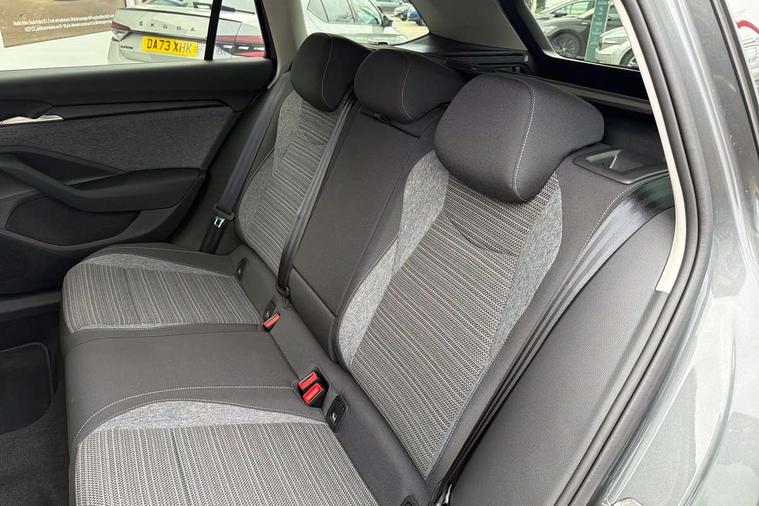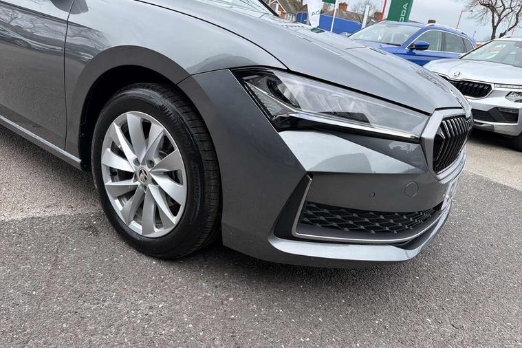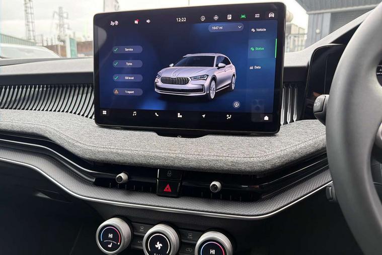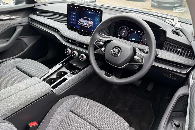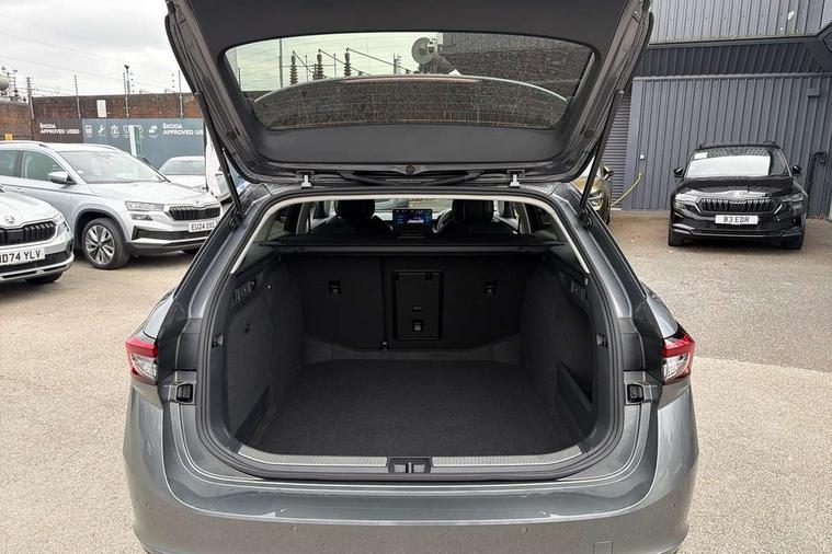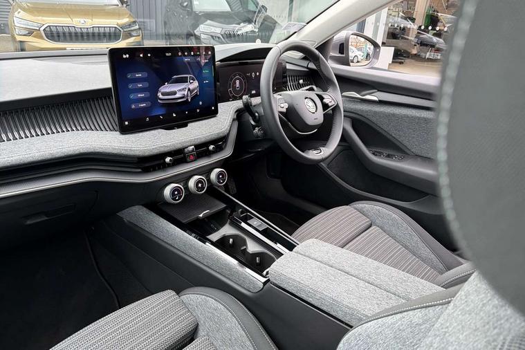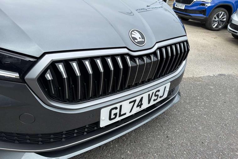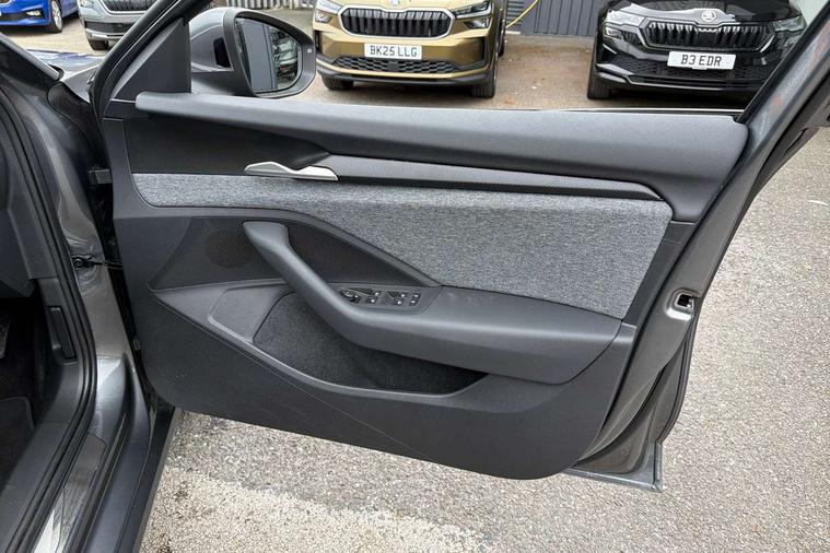 13" touchscreen display with satellite navigation, 4x USB-C ports (2x in front centre console and 2x in rear) (45W), Adaptive cruise control with speed assist, lane assist plus and traffic tram assist, Blind spot detection with door exit warning, Bluetooth system, CareConnect and Emergency Call, ChatGPT functionality, Driver fatigue sensor, Front assist with extended predictive pedestrian protection, Front cross traffic assist, PAS, Quick start all heating software functionality, Rear view camera with washer, Stop/start engine system, Traffic sign recognition, Turn assist with evasive assistance, Virtual Cockpit - 10.25" digital display, Voice control system, Wireless charging for one smartphone (15W) with cooling function, Wireless smartlink apple carplay, SmartLink+ android auto, 8 Speakers, DAB Digital radio, Display cleaner, FM radio connection, Web radio connection, Acoustic side windows and interior noise suppression, Backdrop lighting, Body colour door handles, Body coloured door mirrors, Chrome roof rails, Chrome window surround, Electrically adjustable, heated, folding and driver side auto-dimming door mirrors with integrated indicators and logo projection, Frameless auto-dimming rear view mirror with USB-C, Front windscreen with heat-insulating glass, Ice scraper in fuel tank cap, LED 3rd brake light, Light assist with High beam control, Light assistant (coming/leaving home/tunnel light), Privacy glass, Rear fog light (x1), Rear roof spoiler, Rear side wing doors, Rear windscreen wiper, Tow bar preparation, Unique dark chrome design logo on alloy wheels, Unique dark chrome grille surround with dark chrome rib elements, Windscreen wipers with rain sensor, 12V socket 1x centre console 1x boot, 12V socket and 2x cargo elements in boot, 2 spoke multifunction steering wheel with DSG paddles, 3 seat bench in 2nd row, 4x foldable bag hooks in boot, 60:40 Split folding rear seats, Bottle holders in the front doors 1.5 litre bottle and rear 1.5 litre bottle, Cup holder in front with easy open mat, Front and rear footwell illumination, Front armrest with storage box, Front comfort seats, Heated front seats, Height adjustable driver and front passenger seats with 2-way electric tilt, 4-way pneumatic lumbar support, and extendable thigh support, Height adjustable front and rear head restraints, Height adjustable front passenger seat, Illuminated glovebox, Interior lights with control switches, Isofix child seat fittings in outer rear and front passenger seats, LED front and rear reading lights, Massage function for front seats, Single front passenger seat, Skoda lettering on steering wheel, Storage pockets on back of front seats, Sun visors with illuminated vanity mirrors, Ticket holder on A Pillar, Tri zone climate control, Umbrella in driver's door, 3 rear seatbelts, 8 Airbags - Front driver and passenger, front side driver and passenger, centre, curtain front and rear, drivers knee, Crew protect assist, Driver and passenger seatbelts with warning light, Electronic parking brake, ESC including ABS, EBV, MSR, ASR, EDS, HBA, DSR, RBS, CBC, multi-collision brake (MKB) and Auto hold, Hill hold assist, Power operated child lock in rear doors, Alarm with interior monitoring tilt sensor and back up horn, Backrest remote release from trunk, Electronic engine immobiliser, Keyless start/stop, Remote central locking with SAFE system, Third key, Decorative front door sills,