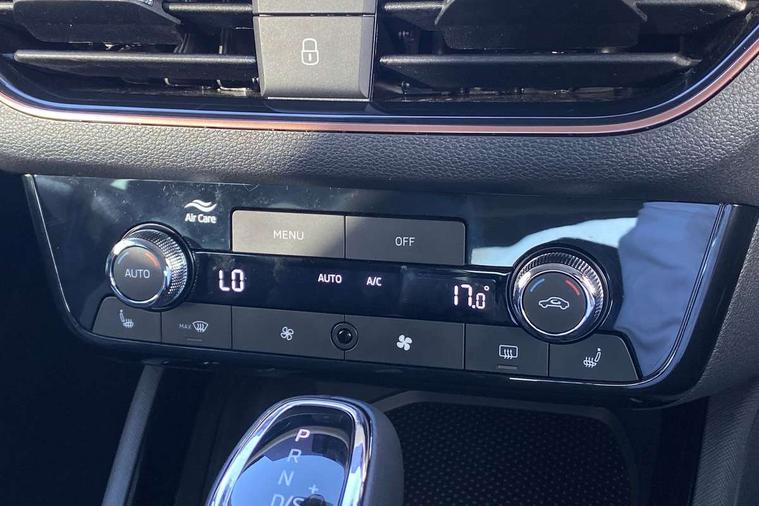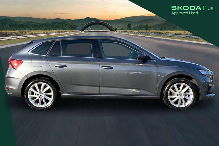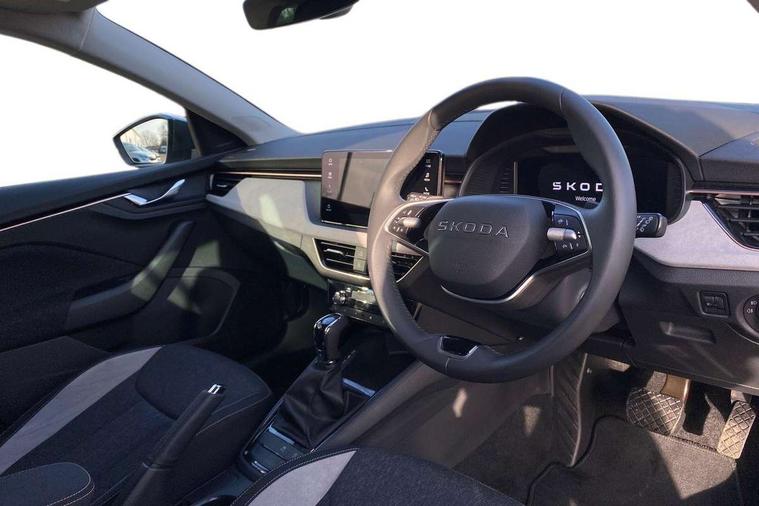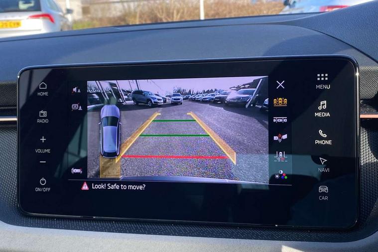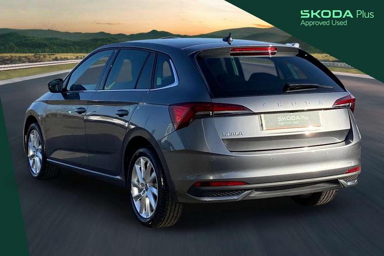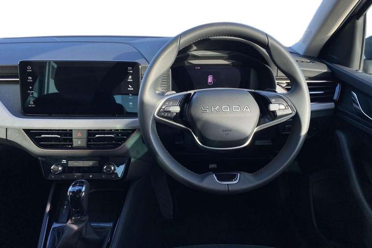 Advanced driver attention and drowsiness monitor, Bluetooth, e-Call (emergency call), Front assist system, PAS, Rear parking sensors, Rear view camera, Speed limiter, Tailgate, Traffic sign recognition, Virtual Cockpit - 10.25" digital display, Voice control system, Wireless smartlink, 4 USB C ports, 8 Speakers, 9.2" Skoda navigation display, DAB radio, Auto dimming rear view mirror, Automatic headlight control with manual coming and leaving home feature, Automatic intermittent wipers, Body colour bumpers, Body colour door mirrors and handles, Chrome moulding around grille, Chrome window frames, Front and rear electric windows, Heated rear window, LED 3rd brake light, LED daytime running lights, LED high beam, LED low beam, Light sensors, Privacy glass, Rear LED fog light, Rear side wing doors, Rear wiper, Tinted windows, Unique dark chrome design logo on alloy wheels, 12V socket in luggage compartment, 3 seat bench in 2nd row, Ambient lighting in white/red, Black / Copper armrest stitching, Cargo elements, Chrome inner door handles, Copper hotstamping, Door inserts in accent black, Driver and passenger sun visors with vanity mirror, Dual zone climate control, Front and rear roof lights, Front centre armrest, Front head restraints, Glasses storage in roof liner, Height adjustable driver seat, Height adjustable passenger seat, Ice scraper, Illuminated glove compartment, Inner circulation control with pollen filter, ISOFIX for front passenger seat, Isofix preparation for back seats, Leather gearknob and handbrake lever, Lodge cloth upholstery, Luggage net under rear parcel shelf, Manual lumbar support for front seats, Net package and top tether hooks in boot space, Pocket on the back of both front seats, incl. mobile phone pockets, Rear centre armrest, Single front passenger seat, Skoda lettering on steering wheel, Textile floor mats, Third rear headrest, Ticket holder, Top tether for front passenger seat, Umbrella in driver's door, Convenience pack without rear camera - Scala, 3x3 point rear seatbelts, ABS, Child locks, Curtain airbags and front side airbags, Disc brakes, Driver and front passenger airbags, ESP, Hill hold control, Manual leather parking brake, One tone horn, Passenger airbag switch off function, Seatbelt reminder for driver and front passenger, Tyre pressure monitoring system, Anti theft alarm system with interior monitoring, backup horn and towing protection, Anti-theft wheel bolts, Remote central locking with 2 remote folding keys, SAFE function for remote central locking, Decorative inserts,