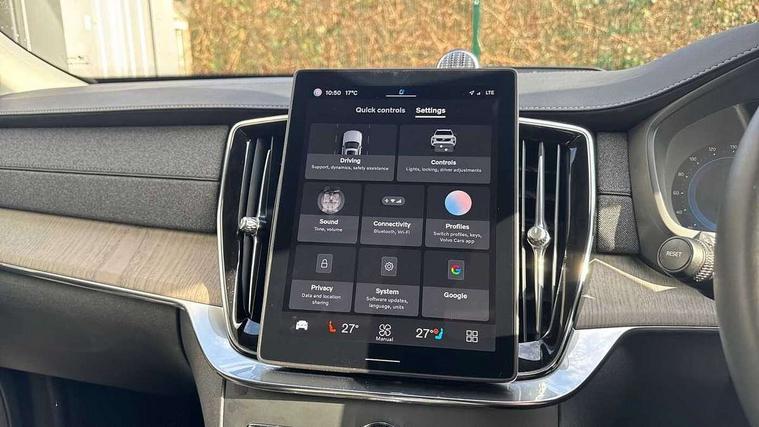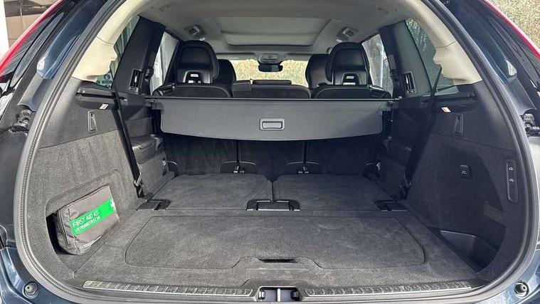 11.2" centre console touch screen, 12.3" Progressive Driver Display, 360 degree surround view parking camera with side proximity sensors, Adjustable steering wheel force, Apple carplay (wired), Bluetooth handsfree system, Driver alert control with lane keeping aid, Driver assistance (pilot assist and adaptive cruise control), Driver awareness - Blind spot information system with steer assist, cross traffic alert with autobrake and rear collision warning and mitigation, Emergency call service, Front and rear park assist, Google Automotive Services - Navigation with Voice recoginition and google assistant, Handsfree power tailgate opening and closing, Intelligent speed assistance, Oncoming Lane Mitigation, PAS, Power operated tailgate, Service interval indicator, Speed sensitive steering, Trip computer, Volvo on call, Wireless/Inductive Mobile Phone Charging, 8 speed automatic transmission with start/stop + manual change functions, Active four C chassis - four corner adaptive dampers with electronic air suspension, DAB Radio (Digital Audio Broadcasting), Premium Sound by Bowers and Wilkins, dirac live, dolby pro logic II surround sound, 18 speakers/1400W output and fresh air subwoofer, Steering wheel remote infotainment controls, Adaptive brake lights with high level LED brake lights, Auto dimming interior + exterior mirrors, Auto folding and heated power door mirrors, Automatic headlight levelling system, Automatic matrix LED headlights with Adaptive shadow technology and Active high beam, incorporating Day running lights, Body colour bumpers, Dark tinted windows - rear side windows and rear screen, Front and rear power windows, Headlight cleaning system, High gloss black door mirrors and window surround, High gloss black front and rear bumper deco, High gloss black front grille and deco, Home safe and approach lighting, Integrated roof rails in high gloss black, Laminated side and rear windows, Power glass tilt and slide panoramic sunroof with sun curtain, Puddle lights, Rain sensor with automatic windscreen wiper activation, Rear side wing doors, Rear wash/wipe with intermittent wipe setting, Roof antenna, Roof spoiler, Visible VIN plate, 12V socket in luggage compartment, 2nd Row centre armrest with and cupholders, 3 Spoke tailored sport steering wheel with chrome trim, 4 zone electronic climate control with Clean zone air quality system + pollen filter, A-pillar parking ticket holder, Air conditioning for 3rd row of seats, Air purifier PM2.5, Ambient door and instrument panel lighting, B Pillar ventilation, Bright metal luggage scuff plate, Centre console cupholders and storage, Floor mats, Front and rear courtesy lights, Front and rear door pocket illumination, Front footwell and side step illumination, Front headrests, Front reading lights, Front seat cushion extensions, Front tunnel storage illumination, Glovebox compartment light, Heated front seats, Heated rear seats, Heated steering wheel, Height/reach adjustable steering column, Illuminated front and rear aluminium tread plates, Illuminated luggage compartment, Illuminated tailgate, Illuminated vanity mirrors + ticket holder, Inner door release handle illumination, Integrated sun curtains in rear doors, Isofix outer rear child seat preparation in 2nd row, Load cover, Load protection net, Lockable glovebox compartment, Luggage compartment divider with grocery bag holder, Outboard armrest with cupholder and storage for third row passengers, Power driver seat with multi directional lumbar support and memory for seat and exterior mirrors, Power folding 2nd row headrests, Power passenger seat with multi directional lumbar support and memory, Rear footwell and side step illumination, Rear headrests, Rear reading lights, Second row integrated child seat for centre seat, Single front passenger seat, Three 2nd row individual folding passenger seats with fore/aft adjustment, Two 3rd row individual folding passenger seats, Underfloor luggage compartment storage, 7 three point seatbelts, City safety with steering support includes pedestrian, cyclist detection, front collision warning with full auto brake and rear auto brake, Driver and passenger airbags, Drivers knee airbag, First aid kit, Front seats SIPS airbags, Hill descent control - off drive mode, Hill start assist, IC (Inflatable Curtains) - Full Length, Passenger airbag cut-off switch, Power child locks on rear doors, Power parking brake with auto hold function, Road sign information display, Run off Road Protection, Seatbelt reminder and pretensioners for all seats, SIPS (Side Impact Protection System), Slippery road and hazard light alert, Stability and Traction Control with Spin control, Engine Drag Control and Corner Traction Control, Tyre pressure monitoring system, Vehicle deceleration control with Anti-lock Brake System, Electronic Brake Distribution and Emergency Brake Assist, Warning triangle, WHIPS whiplash protection system - front, 2x Key integrated remote control central locking + deadlocking system and auto open/close windows, Anti-theft alarm including immobiliser/volume sensor + level sensor, Keyless drive includes keyless entry and keyless start, Locking wheel nuts, Tailored instrument panel and door tops, Tempa spare wheel and jack,