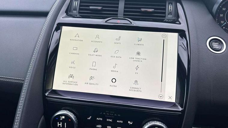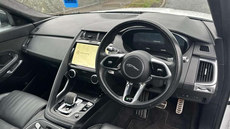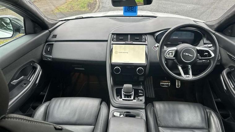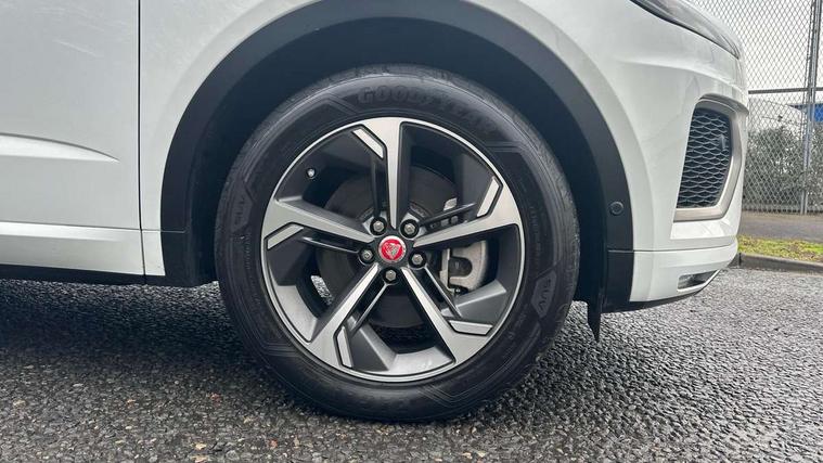 11.4" touchscreen with central ICP, 12.3" full digital instrument panel, 3D 360 degree surround camera with rear camera wash, Android Auto, Apple car play, Blind spot assist, Driver condition monitor, Electric power assisted steering, Front and rear parking aid, InControl remote, Interactive driver display, Jaguar drive control with adaptive surface response, Jaguar Toggle sport shift selector, Lane keep assist, Outside temperature gauge, Pivi pro connected infotainment system with smart settings and navigation pro, Rear traffic monitor, Traffic sign recognition with adaptive speed limiter, Trip computer, Voice control system, 7 kW onboard charger, Large fuel tank, Passive suspension, Public charging cable Mode 3, AM/FM DVD MP3 radio, Bluetooth connectivity including audio streaming, DAB digital audio broadcast, Body coloured side sills, Chrome side window surrounds, Dark satin grille tips, Electric front/rear windows with one touch/auto up/down, Electric heated/power fold memory door mirrors with approach lights and auto dimming driver side, Embossed leaper for grained and windsor leather, Front fog lights, Heated washer jets, Heated windscreen, Metal load space scuff plates, R Dynamic badge, R Dynamic body colour bumpers, Rain sensor windscreen wipers, Twin tailpipes with finishers, 3 rear head restraints, Bright metal pedals, Carpet mats, Enhanced ambient lighting, ISOFIX on outer rear seats, Multifunction steering wheel, R-Dynamic branded leather steering wheel, Satin chrome gearshift paddles, 3x3 point rear seatbelts, ABS, All surface progress control (ASPC), DSC - Dynamic Stability Control, Electronic brake force distribution, Electronic parking brake, Emergency brake assist, Emergency braking, Front airbags with passenger seat occupant detector, Front and rear curtain airbags, Front and rear seatbelt reminder, Front side airbags, Hill start assist, Low friction launch, Power child locks, Torque vectoring brake, Tyre pressure monitoring system, Intrusion sensor and alarm, Locking wheel nuts,