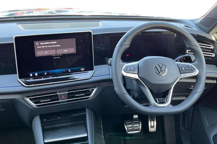 Adaptive cruise control (ACC), Advanced driver attention and drowsiness monitor, Bluetooth mobile phone interface, Car2X technology, Comfort drive travel assist, lane keeping system, lane assist and emergency assist, Digital Cockpit Pro - 10.25" high resolution dash display screen with customisable menus and information, Dynamic road sign display, E-Sim card for online connectivity, eCall emergency call service, Front Assist - Autonomous emergency braking with pedestrian and cyclist monitoring, Lane change system, Side assist, Rear traffic alert and Exit warning system, Oncoming vehicle braking when turning including swerve support, Park assistance plus with front and rear parking sensors, Power assisted steering with speed sensitive, Start/stop system with regenerative braking, Warning signal and warning light for front and rear seatbelts not fastened, Wireless App-Connect, All wheel drive - 4Motion, Digital radio reception (DAB), Diversity antenna for FM reception, Air intake with black trim, Ambient lighting with logo projection, Automatic headlight control system, Body coloured door handles, Chrome moldings on the side windows, Coming/leaving home lighting function, Exterior mirror surround light, Heat insulating glass in side and rear windows, Heated rear window, Heated windscreen washer jets, High level 3rd brake light, Illuminated door handle recesses, Illuminated lightline between headlamps, Laminated safety glass windshield, LED Day time running light, Rain sensor windscreen wipers, Rear fog light on one side, reversing light on both sides, Rear side wing doors, Rear wiper, 12V outlet in center console rear and in luggage compartment, 12V socket in centre console, 3 bench rear seats in 2nd row, Air care climatronic 3 zone air conditioning system with rear air conditioning control panel, Black roof lining, Brushed stainless steel pedals, Carpet mats, front and rear, Centre console with illuminated storage compartment with sliding cover and two drinks holders, Chrome elements on the mirror switch and power window switches and door pulls, Door and side trim panel with leatherette insert, Door sill protectors, Entry and exit light, Front centre armrest, Interior ambient lighting with 30 colour options, ISOFIX anchors for child seats on outer rear seats and front passenger seat compatible with i-Size, Mechanical rear seat release, Power adjustable lumbar support in front, Rear bench seat, split folding, longitudinally movable and folding with load-through hatch and centre armrest, Single front passenger seat, Soul headlining, Sports comfort seats in front, Sun visors with illuminated vanity mirrors, Three rear head restraints, Variable luggage compartment floor, Black style package - Tiguan R-Line/Black edition, Driver assistance package - Tiguan, Driving dynamics pack with adaptive chassis control - Tiguan, IQ.LIGHT - HD matrix headlights pack - Tiguan Elegance/Black Edition, 3 point seat belt for centre rear seats, 3 Point seat belts in front with pretensioners, 3 point seatbelts in outer rear with ECE label, Driver and front passenger airbag with front passenger airbag deactivation, Electronic parking brake with auto hold, Front and rear curtain airbags, Front and rear side airbags, Front centre airbag, Front disc brakes, Manual child proof rear door locks, Rear disc brakes, Two tone horn, Warning triangle, Decorative inserts, Interior door handle in matte chrome, Soul instrument panel,