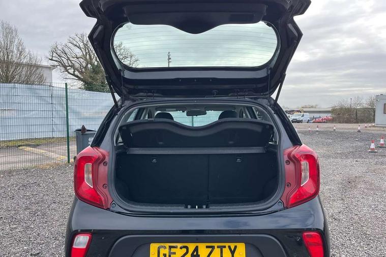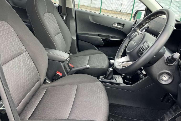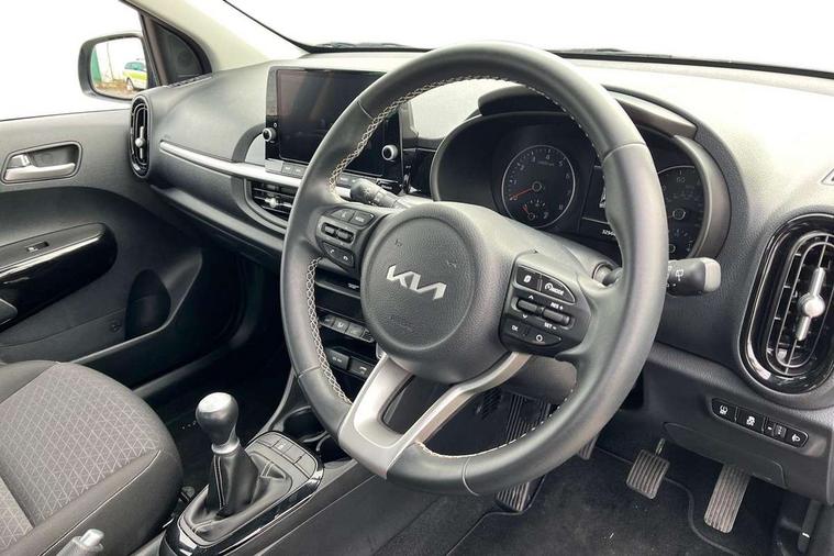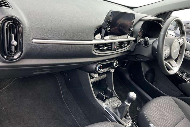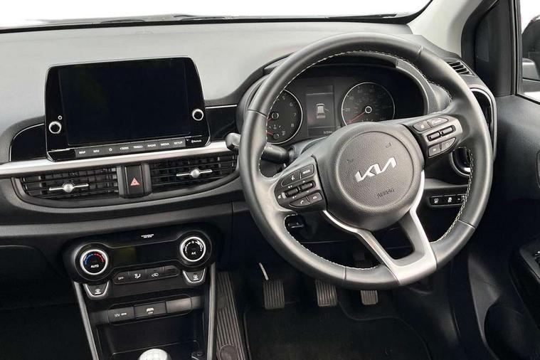 4.2" supervision monochrome cluster display, 8" touch screen satellite naviagtion with RDS and DAB with telematics, Apple car play/Android Auto with voice control, Cruise control + speed limiter, Emergency call service, Emergency stop signalling system, External temperature gauge, Forward Collision-Avoidance Assist (FCA) - City, Kia Connect (UVO), Motor driven power steering, Rear parking sensors, Reversing camera system with dynamic guidelines (Integrated into centre fascia screen), Tachometer, Tailgate, Trip computer, 6 speaker audio system, Bluetooth with music streaming, Steering wheel mounted controls, USB ports for connection of a media device, Automatic headlight control system, Black radiator grille with chrome surround, Body colour bumpers, Body coloured mirrors and chrome exterior handles, Day/night rear view mirror, Daytime running lights, Electric adjustable/heated/folding door mirrors with LED indicators lights, Front and rear electric windows with drivers's auto up/down function, Front fog lights, Headlamp levelling, Heated rear window, High mount brake light, MFR - Multi Focus Reflector halogen headlights with black bezel, Rain sensor, Rear fog lights, Rear side wing doors, Rear wash/wipe, Speed variable front wipers, Tinted glass, Visible VIN plate, Welcome and follow-me home light functionality, 1 x rear coat hook, 12V power point front, 2 seat bench in 2nd row, 3 x passenger assist grips, 60/40 split/folding 2nd row of seats, All round height adjustable headrests, Automatic air conditioning, Centre Console with Storage Box and Sliding Armrest, Cupholders in centre console, Driver and front passenger sunvisor with vanity mirror, Driver seat height adjust, Front cabin lights, Glovebox, High gloss lower centre fascia trim, door armrest and air vents, ISOFIX Child seat top tethers and anchor fixings, Leather trimmed steering wheel and gearshift, Luggage area light, Luggage area parcel shelf, Passenger front seatback pockets, Premium cloth upholstery, Silver paint finished interior door handles, Single front passenger seat, Slide/reclining front seats, Tilt adjustable steering wheel, Advanced Driver Assistance Pack - Picanto, 2 x 3-point rear seatbelts, ABS/EBD, Automatic unlocking of doors in case of impact, ESC + BAS + VSM + HAC, Front passenger airbag cut-off switch, Front seatbelt height adjusters, Front seatbelt pretensioners, Hill hold control, Hill start assist control (HAC), Knee airbags, Rear child proof door locks, Seatbelt warning, Side impact protection, Torque vectoring brake based and straight line stability (SLS), Traction control, Twin curtain airbags, Twin front airbags, Twin front side airbags, Tyre pressure monitoring system, Anti theft alarm, Engine immobiliser, Folding key, Locking wheel nuts, Remote central door locking, 15" Alloy wheels, Tyre mobility kit,