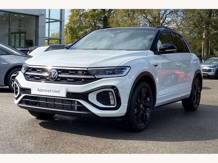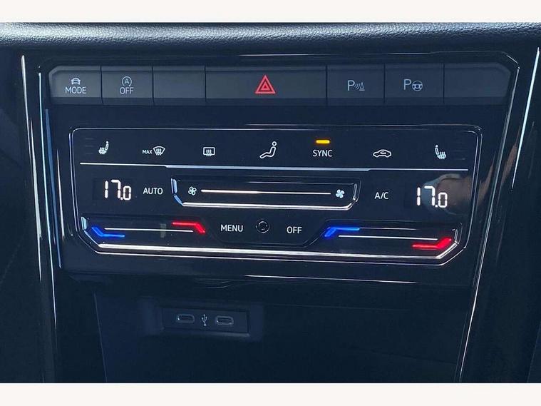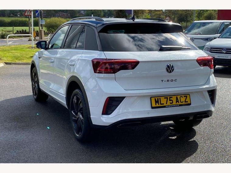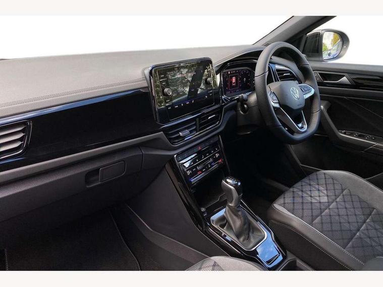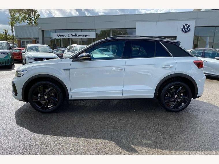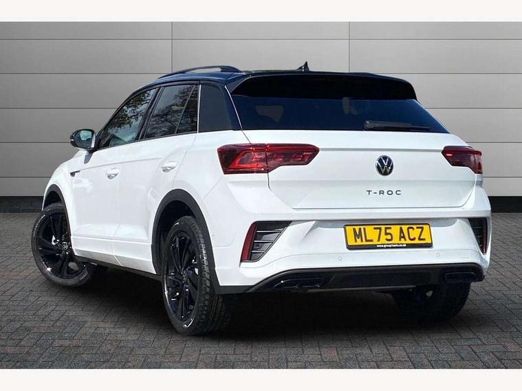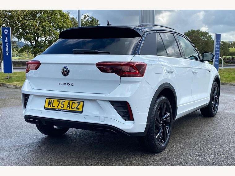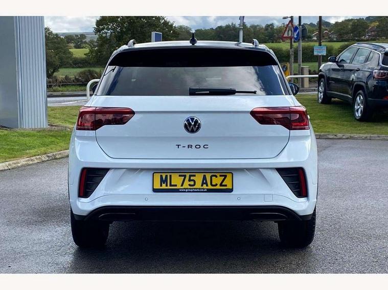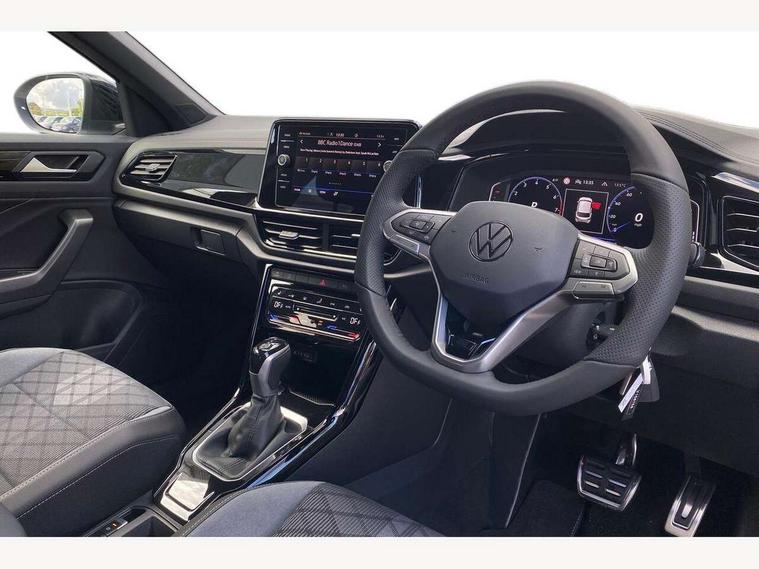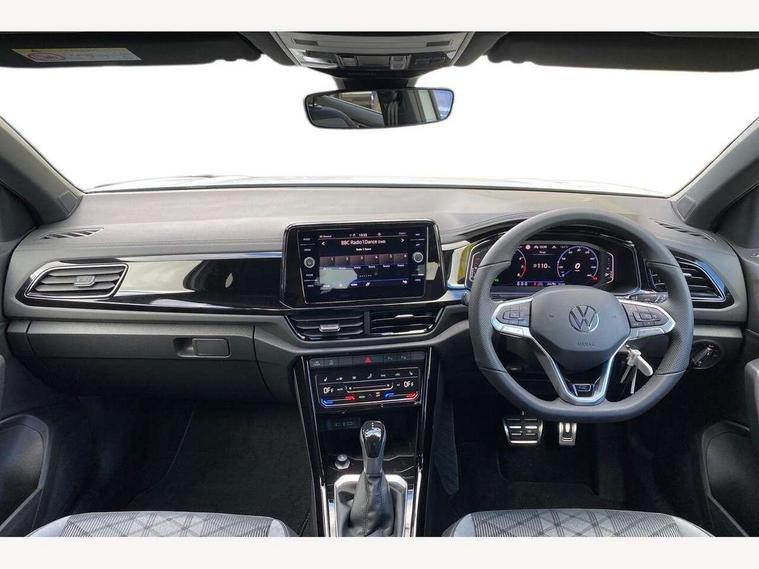 10.25" Digital cockpit pro, Advanced driver attention and drowsiness monitor, Emergency call service, Lane keeping system Lane Assist, Mobile phone interface, Modified key software - reduce switch off time for key status change to Long no motion, Online services, Park assist including front and rear parking sensors, Power assisted speed sensitive steering, Service interval indicator, Tailgate/trunk lid release from outside, Think blue trainer driver tips and journey analysis, Warning sound and light for front seatbelts unfastened, Wireless app connect, Battery regeneration during braking, Rear shock absorption chassis with increased ride height, Start/stop function with battery regeneration, DAB Digital radio, Diversity antenna for FM reception, Front and rear 6 speakers, Music playback - MP3, WMA and AAC files, Premium USB cable in choice of either Apple or Android smartphone compatibility, SD card slot, Simultaneous pairing of 2 compatible mobile devices, Title and cover art display, We Connect and We Connect Plus functionality, Auto dimming interior rear view mirror, Automatic hazard lights activation under emergency braking, Automatic headlight control with LED separate daytime running lights with coming/leaving home function, Dynamic cornering light, Electrically adjustable and heated door mirrors, Extended roof spoiler, Exterior mirrors aspherical on driver side, convex on front passenger side, External USB type C socket and charging sockets, Front windscreen wiper with intermittent wipe and 4 position delay, Heated rear window, Illuminated front grille, IQ LED matrix headlights, LED 3rd brake light, LED rear number plate lights, LED rear tail lights with dynamic turn signal, Light mode for poor weather, rain, fog or snow, Power windows with comfort operation and circuit breaker, R-Line design body coloured bumpers, Rain sensor, Rear exhaust tailpipe, Rear fog light on one side and reversing lights on both sides, Rear side wing doors, Rear wash/wipe with intermittent wipe setting, Remote electrically foldable door mirrors, puddle lights and reverse activated passenger's door mirror, 12V power socket in centre console, 3 rear head restraints, 3 seat bench in 2nd row, 4 load lashing points in luggage compartment, Air care climatronic air conditoning system with active combination filter and 2-zone temperature control, Artvelours cloth upholstery, Black roof lining, Chrome plated radiator grille inserts, air vent surrounds and light switch surrounds, Door and side trim panel with leatherette insert, Drawer under drivers seat, Driver seat height adjust, Driver's seat lumbar support, Front + rear carpet mats, Front centre armrest, Front comfort sports seats, Front cupholders x 2, Front footwell illumination, Front reading light, Front scuff plates with R Line logo, Front seat back storage pockets, Glove compartment door with light, Instrument lighting, white adjustable panel illumination, Interior ambient lighting and surround lighting, Interior light delay, Isofix child seat preparation, Leather gearshift handle, Leather wrapped multifunction steering wheel with paddle shift, Load-through provision with cup holder when folded down ('Unsplit rear seat bench, split folding backrest, with centre armrest), Luggage compartment lighting, Non-folding front passenger seat backrest, Passenger seat height adjuster, Passenger seat lumbar support, Single front passenger seat, Stainless steel pedals, Storage compartment in left and right luggage area, Storage compartment in rear doors, Storage compartments in driver and front passenger doors, Sunvisors with illuminated vanity mirrors, Variable boot floor, height adjustable and removable, Winter pack without heated windscreen washer jets - T-Roc, 3 point height adj front seatbelts + pretensioners, 3 point seatbelts in outer rear with ECE label, ABS, Child locks on rear doors, City emergency braking and pedestrian monitoring, Driver and front passenger airbag with front passenger airbag deactivation, Driver and front passenger safety-optimised head restraints, Drivers seatbelt reminder, Electronic parking brake, Electronic Stability Control (ESC) inc EDL (Electronic Differential Lock) and ASR (Traction Control), Front and rear passengers curtain airbag system including front side airbags, Front disc brakes, Hill start assist, Predictive pedestrian protection, Rear disc brakes, Two tone horn, Tyre pressure loss indicator, Volkswagen roadside assistance, Tool kit, Trims for alloy wheels, Tyre mobility kit including compressor and sealing foam,