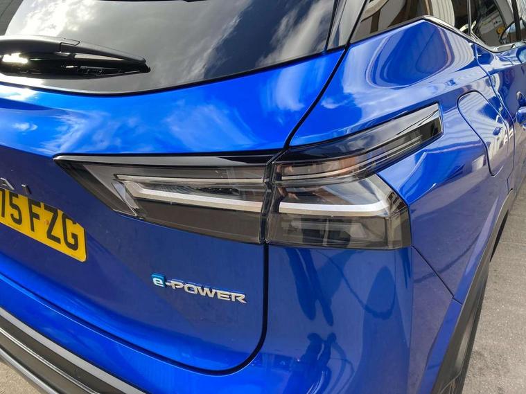 2 front USB-C ports, 2 rear USB-C ports, 360 degree Intelligent around view monitor with moving object detection, Blind spot warning, Drive assist custom mode, Drive modes (sport, normal, eco), Driver drowsiness and attention warning, e-Pedal step, Electric speed sensitive power steering, Emergency and breakdown call, Emergency lane keep assist, Emergency Stop Signal (ESS), Engine start/stop button, EV mode switch, Event data recorder, Front and rear parking sensors, Full Digital 12.3" TFT Digital Combimeter, Google virtual personal assistance, Idle stop/start system, In-car WIFI hotspot, Intelligent Cruise control (ICC), Intelligent driver alert system, Intelligent forward collision warning, Intelligent lane intervention, Intelligent speed assist, Lane departure warning system, Maximum speed limiter, Nissan connect 12.3 inch touchscreen infotainment system, Nissan connect navigation with google maps, Nissan connect services 2.0 (Google Automotive System), Outside temperature sensor, Propilot assist with Navi-Link, ProPilot park, Rear cross traffic alert, Remote control services - door locks, lights, horn and car locator, Reversing detection, Traffic jam pilot, Traffic sign recognition with legal speed adjustment, Trip computer, Wireless Apple CarPlay/Android Auto, Wireless charging pad, Limited slip differential, 6 speakers, AM/FM audio system with DAB, Bluetooth audio streaming, Auto dimming frameless rear view mirror, Auto rear wiper when reversing, Body colour mirror caps, Body coloured door handles, Bodyside mouldings, Chrome side window finisher, e-POWER badging, Electric auto folding door mirrors, Electrically adjustable and heated door mirrors with LED turn indicator, Follow me home headlights, High beam assist, Intelligent auto headlights, LED 3rd brake light, LED daytime running lights, LED Headlights, LED rear lights, One touch front and rear electric windows with remote opening and closing, One touch passenger window, Partially body coloured bumpers, Rain sensing wipers, Rear privacy glass, Rear roof spoiler, Rear side wing doors, Rear styling plate, Shark fin antenna, Silver roof rails, Splash free rain sensing wipers, Super UV and infrared cut glass, Three blink turn signal, 12v power socket in dashboard and luggage, 3 bench rear seats in 2nd row, 3 rear headrests, 60/40 split folding rear seat bench, Chrome interior door handles, Cloth upholstery, Driver and passenger sunvisors with illuminated vanity mirrors, Driver seat back pocket, Dual zone automatic climate control with pollen filter, e-POWER shifter, Electrically adjustable lumbar support for driver, Front centre console and armrest, Front cupholders, Front door with bottle holders, Height adjustable driver seat, Height adjustable front headrests, Height adjustable passenger seat, Luggage board system, Luggage space lighting, Multifunction steering wheel, Passenger seat back pocket, Rear door bottle holders, Rear seat armrest with 2 cupholders, RGB ambient light (Full area coverage), Single front passenger seat, Smooth leather steering wheel, Tilt/telescopic adjustable steering wheel, Two rear isofix child seat anchorage points with top tether, 3x3 point rear seatbelt pretensioners + load limiters, ABS with EBD and brake assist, Autonomous emergency braking, Child locks on rear doors, Curtain and front side, far side airbags, Driver and passenger airbags, Driver, passenger and 2nd row rear seat belt reminder, Electric handbrake with auto hold function, Front seatbelt pretensioners + load limiters, Height adjustable front seatbelts, Hill start assist, Intelligent blind spot intervention, intelligent front emergency braking, Intelligent rear automatic braking, Tyre pressure monitoring system, Vehicle dynamic control, Engine immobiliser, Intelligent key with walk away lock and approach unlock functions, Remote central door locking with deadlocking, Thatcham alarm, 18" Diamond cut alloy wheels, Tyre puncture repair kit,