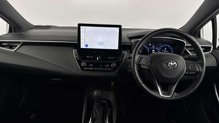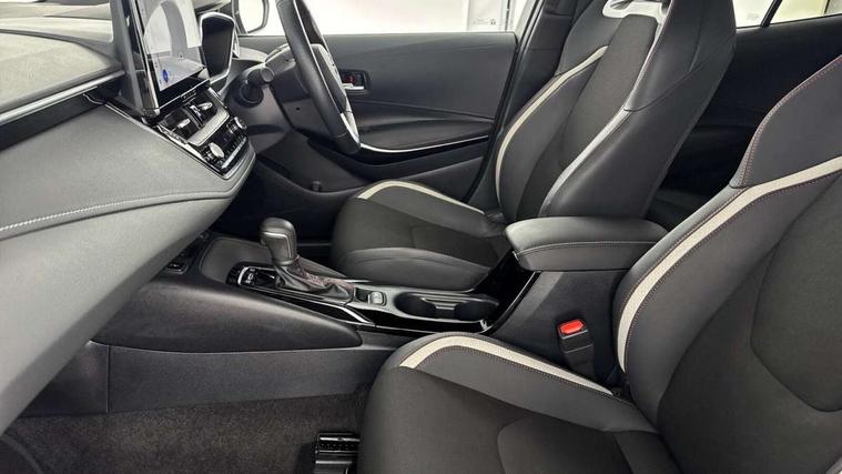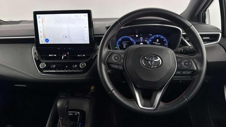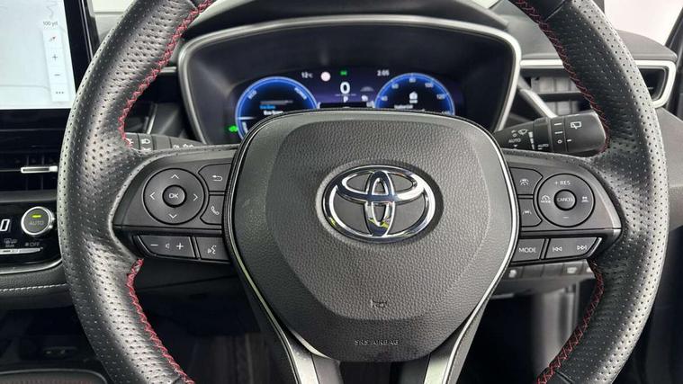 10.5" Multimedia display screen, Bluetooth telephone connectivity, Connected car functionality upgrade, tracker, remote status and e-care, Drive mode select (Eco, Normal), E-call, Electrically assisted power steering, EV drive indicator, Front and rear parking sensors with auto brake, Full Digital 12.3" TFT Digital Combimeter, Key reminder warning, Lane Departure Alert (LDA) switch on steering wheel, Memory on adjustable speed limiter, MyT connected services, Proactive driving assist (PDA), Reversing camera, Smart entry and push button start with GR Logo, Smartphone integration with Apple CarPlay and wired android auto, Tailgate, Toyota remote services, Toyota smart connect navigation, Wireless charger, Gasoline particulate filter, Vehicle Stability Control (VSC), 6 speakers, AM/FM radio, DAB Digital radio, Front USB-C in centre console, Front USB-C in dashboard, Smart voice assist/ Voice recognition, USB and Aux in connectors + 12V front outlet, Anti-jam protection on power windows, Auto up and down function on all power windows, Automatic folding mirrors, Automatic headlights with high beam assist, Black centre and side air vents, Black toyota logo in front, Body coloured bumpers, Body coloured door mirrors, Body coloured outside door handles, Dark chrome lower grille, Electrochromatic mirror, Follow me home headlights, GR Sport dark chrome front mesh grille and black rear grille, GR Sport exclusive under guard, GR sport scuff plates, LED daytime running lights, LED dual beam projector headlights, LED front fog lights, LED High mounted stop light, LED rear combi lights with LED lightguide, Manual headlight levelling system, New grille pattern, Noise reduction layer on windscreen, Piano black diffuser, Power adjustable heated door mirrors, Power front windows, Power rear windows, Privacy glass with UV filter, Rain sensing wipers, Rear side wing doors, Rear window defogger, Rear window wiper, Reverse tilting door mirrors, Rocker and door lower moulding, Roof spoiler, Satin chrome insert on front air vents, Satin chrome insert on front door assist grips, Satin silver front spoiler, Shark fin antenna, Tailgate release with push button, Time adjustment on intermittent wiper, Turning signal integrated indicators in door mirrors, Unique lower skirt, Unique side rocker with black insert, UV-filter on driver and passenger windows, 2 Shopping bag hooks in luggage compartment, 3 rear headrests, 3 seat bench in 2nd row, 3 spoke leather steering wheel with satin insert/red stitching + gear knob, 4 tie down hooks in luggage compartment, 60/40 split folding rear seat, Adaptive cruise control (ACC) switch on steering wheel, Adjustable speed limiter switch on steering wheel, Audio, multimedia and telephone switches on steering wheel, Black armrest on centre console box, Black gear shift console, Boot light, Centre room light, Driver and front passenger personal light, Driver and passenger assist grip, Driver and passenger seatback pockets, Driver and passenger sun visor with mirror and light, Dual zone automatic air conditioning with ECO mode switch, Fabric/synthetic leather upholstery, Front and rear cup and bottle holders, Front door pockets, Front head restraints, Front passenger seat, Front sliding synthetic leather armrest, GR Sports seats with partial leather bolsters, Heated seats, Illuminated entry system in room lamp, ISOFIX seat fixing (2 fixings on rear outer seats), Manual height adjustable for driver and front passenger seat, Manually tilt with sliding driver and front passenger seat, Nanoe-X air purifier, Parcel shelf, Pollen filter, Power window switches with satin chrome inserts, Rear armrest with 2 cupholders, Rear passenger coat hooks (2), Red stitching on gear shift, Remote air conditioning, Satin chrome inside door handles, Satin chrome surround on speedometer, Sliding armrest on centre console box, Slow opening glovebox with lights, Textile floor mats, Tilt/telescopic steering column, Voice recognition switch on steering wheel, Whiplash Injury Lessening (WIL) feature (active headrest) for seats, White ambient lighting on open tray and front cup holder, Toyota safety sense 3 pack - Corolla, 3x3 point rear seatbelts, Adjustable driver and front passenger seat belt extender to top anchor point, Anti lock braking system + Electronic brake force distribution, Brake assist function, Child locks on rear doors, Downhill Assist Control (DAC), Electronic parking brake, Emergency brake light signal (EBS), Front passenger airbag on/off switch, Front seatbelt reminder, HAC - Hill start assist control, Rear seat belt reminder, Seatbelt pretensioners and force limiters, Supplemental restraint system (SRS) 7 airbags - dual driver, dual side curtain, side impact and driver knee airbags, Traction control, Tyre pressure warning system, Acoustic vehicle alert system (AVAS), Alarm with motion sensor and immobilizer, Power passenger window lock, Remote central locking + deadlocks, GR Sport interior styling with accents and exterior styling, Satin chrome dash trim, Soft touch texture on upper dashboard, Stitching on lower dashboard, 18" Black machined face 10 spoke alloy wheels, Tyre repair kit, Unique wheel finish with red wheel cap,