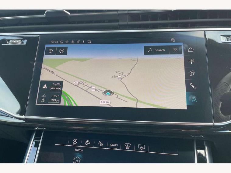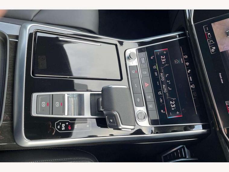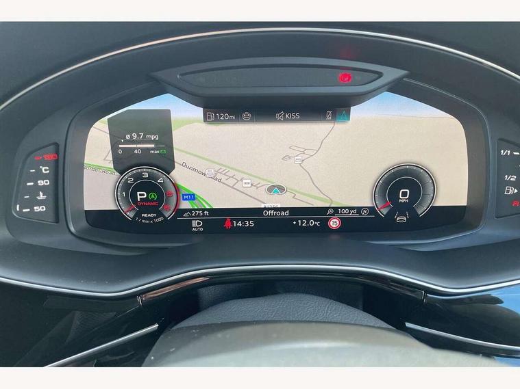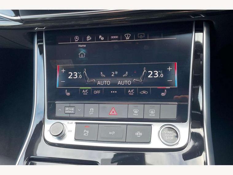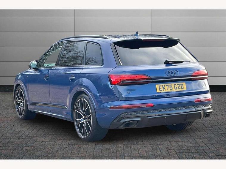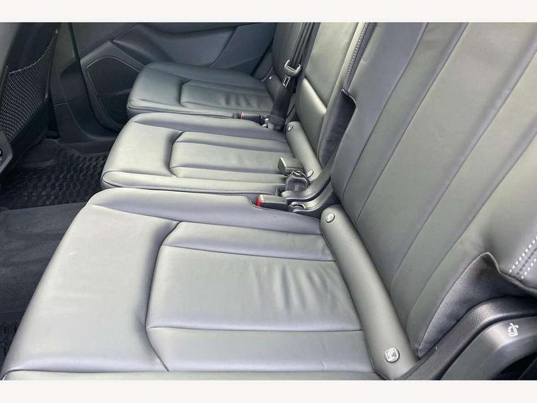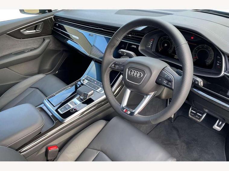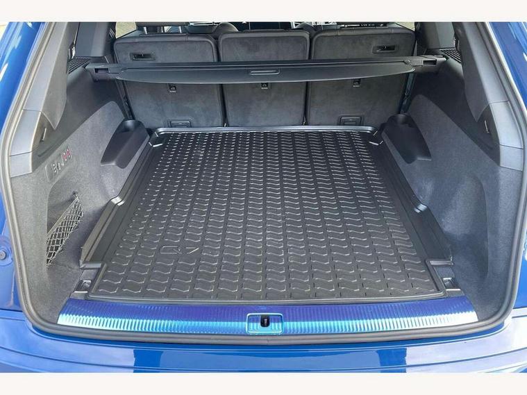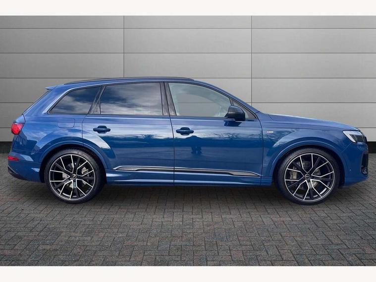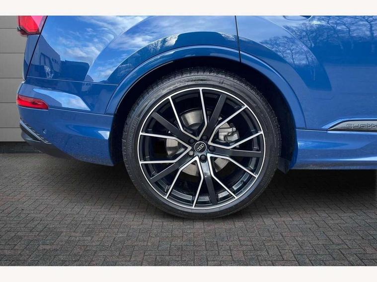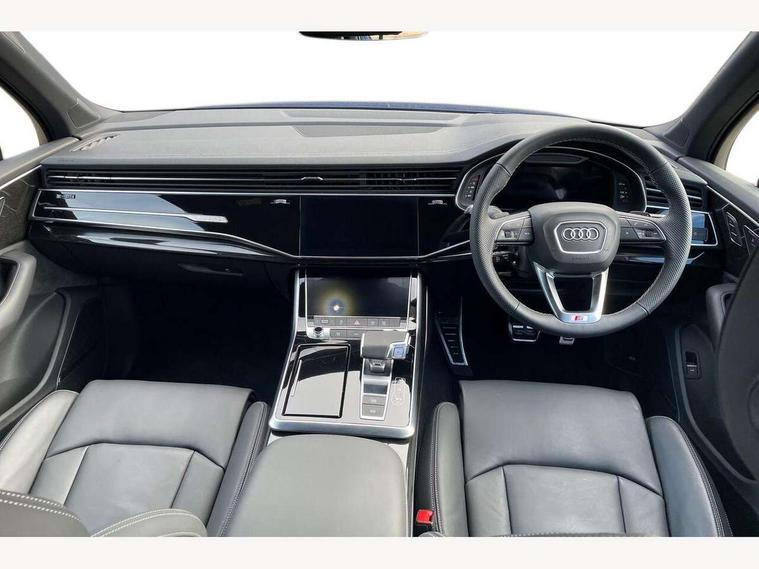 Audi connect safety and service (e-call), Audi connect with Amazon Alexa Integration, Audi drive select (Auto, Comfort, Dynamic, Efficiency, Individual, Off-road and All road), Audi phone box light with wireless charging, Audi virtual cockpit - 12.3" high-resolution LCD display with fully customisable instrument cluster, Bluetooth interface, Camera based traffic sign recognition, Electromechanical power steering, MMI navigation plus with MMI touch screens includes 10.1" and 8.6" screens with haptic feedback, Natural voice recognition, Operating buttons in Matte black, Parking system plus with 360 degree display (front, rear and side sensors) - acoustic and visual park assist system, Power operated tailgate, Rear view camera, Smartphone interface includes wireless Apple carplay/Android Auto, Start/stop system, 48V Mild hybrid technology, Adaptive air sports suspension, Quattro all wheel drive with self locking centre differential, Audi music interface - front 2 USB-C ports with charger and data functions, Audi sound system with 6 channel amplifier, 180 watt amplifying capacity and 10 loudspeakers including subwoofer, DAB digital radio module, Aluminium window trim, Audi Beam uses LEDs to project S emblem with red rhombus onto the ground when opening the side doors (front/rear), Auto dimming frameless rear view mirror, Black exhausts, Black roof rails, Electrically adj heated/folding + automatically dimming exterior mirrors with memory + automatic kerb side function for passenger side exterior mirror, Heat insulating glass in windshield, Integrated LED indications in door mirrors, LED 3rd brake light, LED daytime running lights, LED rear tail lights, Loading edge protection in stainless steel, Matrix LED headlights with dynamic front and rear indicators, Privacy glass - dark tinted rear and rear side windows from B-pillar backwards, Rear side wing doors, Rear wiper, 2 seat bench in 3rd row, 2 zone automatic climate control, 3 seat bench in 2nd row, 7 seat layout with ISOFIX points for the front passenger seat and rear passenger seat, Black carpets, Black cloth headlining, Comfort front centre armrest, Electric adjustable front seat with 4 way lumbar support, driver memory functionality, Folding rear seats, Front head restraints, Front/rear floor mats, Heated front seats, Illuminated door sill trims with S logo, ISOFIX child seat mounting for front passenger seat and 2 outer rear seats with top tether child seat mounting for all 3 rear seats, LED interior ambient lighting, Luggage compartment cover, Luggage compartment sill protection in stainless steel, Rear head restraints, Rear seat bench plus for the second row, with forwards/backwards sliding adjustment and backrest angle adjustment, Single front passenger seat, Stainless steel pedals, Sunvisors with illuminated vanity mirrors, Black styling pack plus - Q7, 3 point seatbelts on all rear seats, Audi pre sense basic, Audi pre sense front, Child locks on rear doors, Convenience key with safelock and gesture tailgate, Driver and front passenger, front side and curtain airbags, Electromechanical parking brake, Electronic Stabilisation Control (ESC) including ABS, ASR and EDL, Extended pedestrian protection measures, Hill hold assist, Seatbelt reminder, Tyre pressure loss indicator, Warning triangle and first aid kit, Anti theft alarm with tow away protection, Anti-theft wheel bolts and wheel loosening detection, Keyless Go, Remote central locking, Black dashboard, Polished oak trim with grey finish inlay, Tool kit, Tyre repair kit,