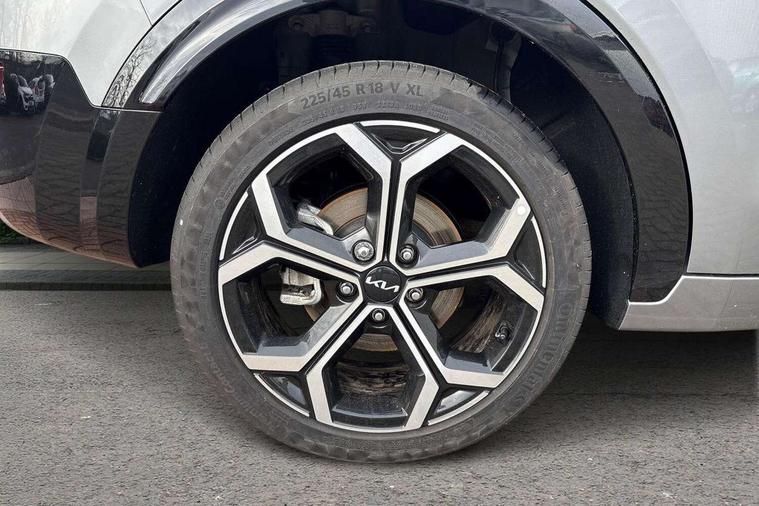 10.25" touchscreen satellite navigation, 4.2" driver display screen, Apple car play/Android Auto with voice control, Blind spot collision avoidance assist, Drive mode select (Eco, normal, sport, snow), E-call, Emergency stop signalling system, Forward Collision-Avoidance Assist (FCA) 1.5 - City/Pedestrian/Cyclist/Junction turning, Front parking sensors, Highway Driving Assist (HDA), Intelligent speed limit assist, Kia Connect (UVO), Lane Following Assist (LFA), Lane keep assist, Motor driven power steering, Rear cross traffic collision avoidance assist (RCCA), Rear parking sensors, Reversing camera system, Safe exit warning (SEW), Smart cruise control with stop and go functionality, Tailgate, Trip computer with distance/fuel consumption/average speed, Wireless Smartphone charger, 220v AC Inverter, 'Shark fin' mobile antenna, 6 speakers, Bluetooth with music streaming, DAB Digital radio, Steering wheel mounted controls, USB port for connection of a media device, Acoustic windshield, All round electric windows with drivers and front passenger auto up/down and safety function, Auto dimming rear view mirror, Automatic defog system, Automatic headlight control system, Black grille with chrome surround, Black window surrounds, Body colour bumpers, Body colour door mirrors, Body colour exterior door handles, Electrically adjustable and heated door mirrors with LED turn indicator, Electrically folding door mirrors, Front and rear chrome skid plates, Front fog lights, Gloss black wheel arches, Heated rear window, LED daytime running lights, LED Headlights, LED High mounted brake light, LED rear combination lights, Privacy glass - Rear windows and tailgate, Rain sensing front wipers, Rear fog lights, Rear roof spoiler, Rear side wing doors, Rear wiper, Roof rails, Solar glass windscreen, Welcome and follow-me home light functionality, Windscreen Washer Level Warning, 12V socket in front, 12V socket in luggage compartment, 3 seat bench in 2nd row, 60:40 split remote folding rear seats, All-round height adjustable headrests, Artificial leather centre console storage box, Artificial leather steering wheel, Automatic air conditioning, Centre console cupholder, Chrome coating interior door handles, Cloth / Artificial leather upholstery, Driver's power adjustable seat, Driver/passenger sunvisors with illuminated vanity mirrors, Drivers seat power lumbar support, Front and rear cabin lights, Front and rear door storage, Front passenger 1 x USB-C charging port, Front passenger seat manual adjustments, Glove box, Heated front seats, Heated steering wheel, ISOFIX Child seat top tethers and anchor fixings, Luggage area load cover, Luggage board, Luggage compartment light, Manually adjustable steering column, Paddle shifts, Rear centre armrest with cupholder, Rear passenger 2 x USB-C charging ports, Seatback pocket - driver, Seatback pocket - front passenger, Shift by wire SBW, Single front passenger seat, Ventiliation ducts to rear compartment, 3 point seatbelts on all seats, ABS, Automatic unlocking of doors in case of impact, Curtain and side airbags, Dual shell horn, Electric parking brake with auto hold function, Electronic stability control, Front airbags, Front passenger airbag cut-off switch, Height adjustable front seatbelts, Hill start assist control (HAC), Knee airbags, Seatbelt reminder warning, Traction control, Tyre pressure monitoring system, Customisable automatic door locking, Customisable automatic door unlocking, Deadlocks, Engine Start/Stop Button with Smart Entry System, Locking wheel nuts, Manual child locks, Rear occupant alert, Smart key with motion sensor, Thatcham category 2 security alarm and immobiliser, Visible vehicle identification number, Warranty - 7 Years/ 100, 000 miles, Centre fascia chopped carbon, 18" Alloy wheels, Tyre mobility kit,