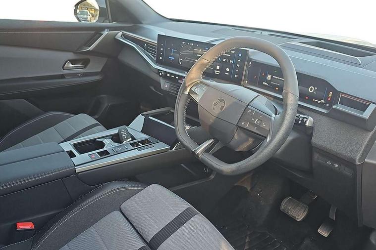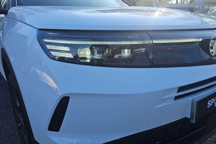 10" digital instrument cluster, 16" multimedia navigation with wireless Apple Carplay/Android auto, 360 degree surround camera, Anticipated intelligent speed adaptation, Central facia display with digital clock, outside air temperature and audio information, Curve speed adaptation, Digital fuel gauge with low fuel level warning light, Digital rev counter, Digital speedometer, Digital water temperature gauge with warning light, Drive mode selector (Eco, Normal, Sport), Driver information - Total mileage, service indicator, oil life, Electric power steering, Front and rear parking sensors, In-crash braking, Intelli-HUD (Extended heads up display), IntelliDrive 2.0 - Semi autonomous lane change assist with lane positioning assist, rear cross traffic alert and side long range blind spot detection, Lights on audible warning, Multi function trip computer - Trip odometer, vehicle range, average speed and fuel economy, instantaneous fuel economy and driving time, Power tailgate, Speed sign recognition, Start/stop system, Vauxhall connect including Emergency call (SOS e-call) and Breakdown call (b-call), Wireless charger for mobile devices, Anti-roll bars, Compound crank rear suspension with coil springs and gas pressure dampers, Independent decoupled MacPherson strut front suspension with gas pressure dampers and coil springs, anti-roll bar, Stability control, 2 rear USB-C sockets, AM/FM and DAB radio, Premium focal Hifi sound system includes 10 speakers and subwoofer, Radio controls on steering wheel, Acoustic windscreen, Auto headlights, Automatic headlight beam levelling, Black door mirrors, Black grained wheel arch claddings, Body colour door handles, Dark tinted rear windows, Electrically defrosting driver and passenger door mirrors, Electrochromic frameless rear view mirror, Front illuminated griffin, Front wiper system spraying directly from wipers, Grained lower door claddings, Heated windscreen, High gloss black front and rear bumpers, High gloss black roof spoiler, Illuminated rear Vauxhall, IntelliLux LED headlights with 3D illuminated vizor, welcome and farewell animation, 11 driving modes and adaptive high beam assist, Intermittent rear window wash/wipe, LED 3rd brake light, LED daytime running lights, LED tail lights, Magic wash, Panoramic opening glass roof, Power folding door mirrors with memory function and reverse mode, Power front and rear windows, Rain sensor windscreen wipers, Rear side wing doors, Rear wipers with camera cleaning, Two speed windscreen wipers with variable intermittent wipe, Welcome lighting, 10 way manual adjustable heated front seats with AGR approved with pneumatic lumbar support, cushion nose extension and power tilt, 2 cupholders with slider, 3 12V plugs, 3 bench rear seats in 2nd row, 3 spoke leather effect steering wheel with dimpling, 7 colour ambient lighting, Automatic air conditioning, Centre console armrest, Chrome effect interior door handles, Clean cabin system, Cooled glove box and central console storage with LED light, Dashboard and door panels polychromatic ambient lighting, Dual zone electronic climate control, Front door storage with 1.5 litre capacity, Front seat back storage pockets, Fully carpeted luggage area, Heated steering wheel, Height adjustable headrests, Illuminated vanity mirrors, Intelli air, Paddle shifts, Pixel storage, Rear armrest, Rear centre seat head restraint, Rear clothes hooks on B pillar trims, Single passenger seat, Sunglasses Box, Touch sensitive front and rear reading lights, Anti-lock braking system (ABS), Automatic emergency braking system, Child proof locks on rear doors, Deactivation switch for front passenger front and side impact airbags, Deflation detection system, Driver airbag, Dual seatbelt pretensioners on front seats, EBD - Electronic brakeforce distribution, Electronic parking brake, Front and rear ventilated discs, Front passenger airbag, Front seat side impact airbags, Full-size curtain airbags for driver and front passenger, Hill assist control, Hydraulic Brake Assist (HBA), Inertia reel lap and diagonal seatbelts for all seats, Load limiters on outer rear seatbelt retractors, Pretensioners on outer rear seatbelt retractors, Rear 3 point ISOFIX, Smart seatbelt reminder for front and rear seats, Tyre pressure monitoring system, Central locking, Deadlocking system, Electronically protected audio equipment, Engine deadlock immobiliser, Keyless entry and start, Locking wheel nuts, Remote security alarm system, Mistral dark ambience, 19" Diamond cut alloy wheels, Tyre repair kit,