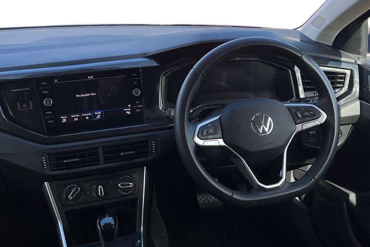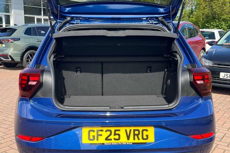 Advanced driver attention and drowsiness monitor, Bluetooth mobile phone interface, Dynamic road sign display, Emergency call service, Mobile phone preparation with inductive charging function, Multifunction front facing camera for distance control, Power assisted speed sensitive steering, Predictive adaptive cruise control without follow-to-stop and speed limiter, Preparation for navigation system with media and internet package, Preparation for We connect and We connect plus, Rear view camera, Speedo and rev counter, electronic odometer, trip, service interval display and exterior temperature gauge, Standard rear axle, Travel Assist - Lane keeping system and traffic jam assist, Travel assist including emergency assist, Trip computer, Warning signal and warning light for front and rear seatbelts not fastened, Washer fluid level indicator, Wireless app connect, Front wheel drive, Rear shock absorpion, Start-stop system with battery regeneration (recuperation - energy recovery during braking), DAB Digital radio, Diversity antenna for FM reception, Automatic dimming interior rear view mirror, Automatic headlight control with LED separate daytime running lights with coming/leaving home function, Body colour bumpers with chrome inserts, Body colour door handles, Body colour door mirrors, Electric front windows, Engine badge deletion, Headlight range adjustment, Heat insulating and laminated safety glass windshield, LED Headlights, LED rear combination lamps, Power folding adjustable/heated exterior mirrors and front passenger exterior mirror lowering function, Rain sensor, Rear electric windows, Rear fog light, Rear side wing doors, Rear tinted glass from B-pillar backwards approx 65% tinted, Rear windscreen washer and wiper with interval delay, Third brake light, 12V power socket in centre console, 2 front and 2 rear reading lights with switch off delay and dimmer, 2 USB-C ports in the front, 2 USB-C charging sockets on the center console in the rear, 3 rear head restraints, 60/40 split folding rear seat and rear seat bench not split, Ceramique roof lining, Chrome plated radiator grille inserts, air vent surrounds and light switch surrounds, Door and side trim panel, Driver and front passenger seat height adjustment, Driver/passenger sunvisors with illuminated vanity mirrors, Front centre armrest, Front seat backrest storage pockets, Front standard seats, Handbrake lever handle in leather, Hartley/Thomas cloth upholstery, Headliner in recycled material, Isofix child seat preparation easy-fit (for two outer rear seats, and front passenger seat) compatible with I-size, Leather trimmed gear knob, Luggage compartment cover, Luggage compartment lighting, Removable luggage compartment floor, Single front passenger seat, Standard climatic zones, Standard pedal cluster, Three spoke leather wrapped multifunction steering wheel with shifting paddles, Light and vision pack - Polo, 3 point height adj front seatbelts + pretensioners, 3 point seat belt for centre rear seat, 3 point seatbelts, outer rear with ECE lable, ABS, Driver and front passenger airbag with front passenger airbag deactivation, Drivers and front passengers safety optimised head restraints, ESC (Electronic stability control) + EDL (Electronic Differntial lock) and ASR (Traction control), Extended and predictive pedestrian/ cyclist protection, Front assist with autonomous emergency braking (for Adaptive Cruise Control ACC up to 130 mph), Front curtain and side airbags with center airbag, Front disc brakes, Hill hold control, Manual child lock in rear doors, Rear drum brakes, Single tone horn, Tyre pressure loss indicator, Alarm with interior protection, Anti-theft alarm system with interior monitoring, backup horn, and towing protection, Anti-theft wheel bolts, Electronic engine immobiliser, Lava stone black gloss/matt decorative inserts in dash and front door panels, 16" Torsby alloy wheels, Low rolling resistance tyres,